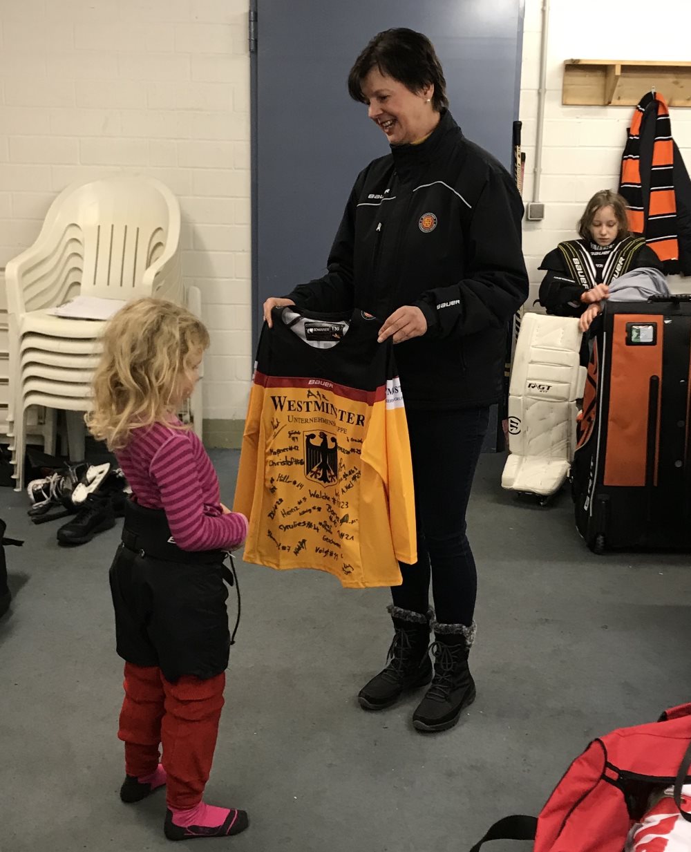 | Comments: About 20 girls participated in this game in Bad Sachsa in the central Harz mountains. “It was a lot of fun to only play with girls, even though my team lost. We had lots of fun on and off the ice and I also won a jersey with all names of all players from the last U18 World Championship on it. Next year I will be part of this again, I promise,” said Ronja, one of the Team White players. | |||