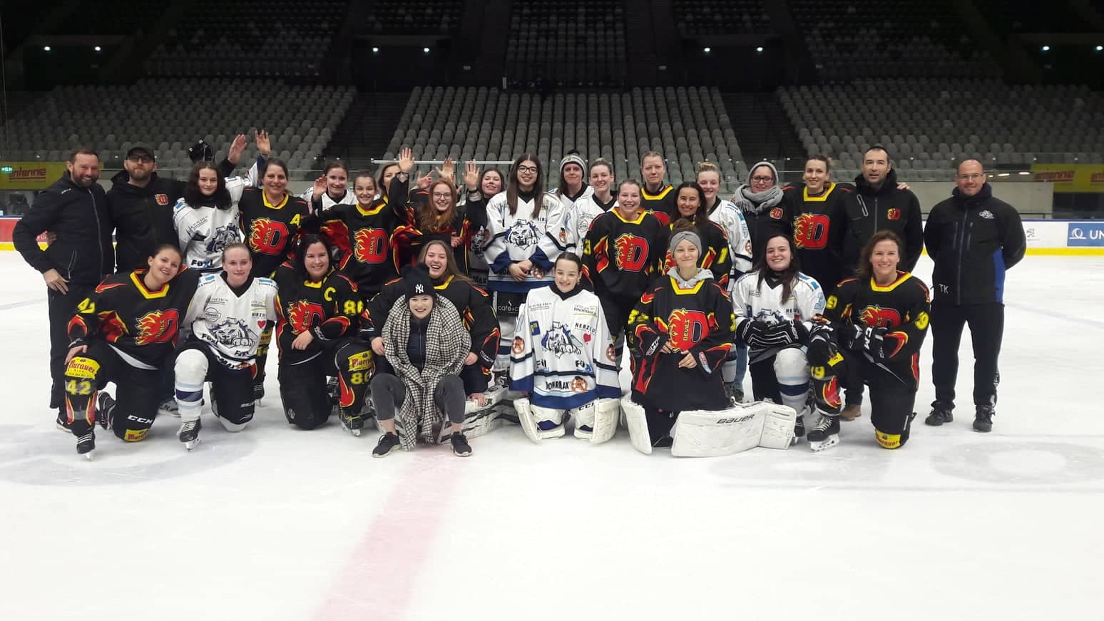 | Comments: Lot of fun for the two teams and 25 players, and the first goal for the youngest player – Julia Klamminger (Team Blue). It was an exhibition game between DEC Devils Graz (Team Blue) and Ice Cats Linz (Team White), who despite their long rivalry on the ice are friends as well. | |||