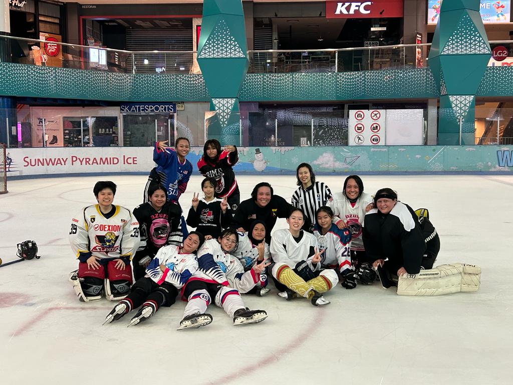 | Comments: 13 female players from various clubs took part in Malaysia’s Global Girls’ Game played at the Bandar Sunway ice rink in Selangor. Although they have different skill level, they enjoyed playing among girls. Two players from Team Blue, Zara Batrisyia and Carmen Lee, both had hat tricks. | |||