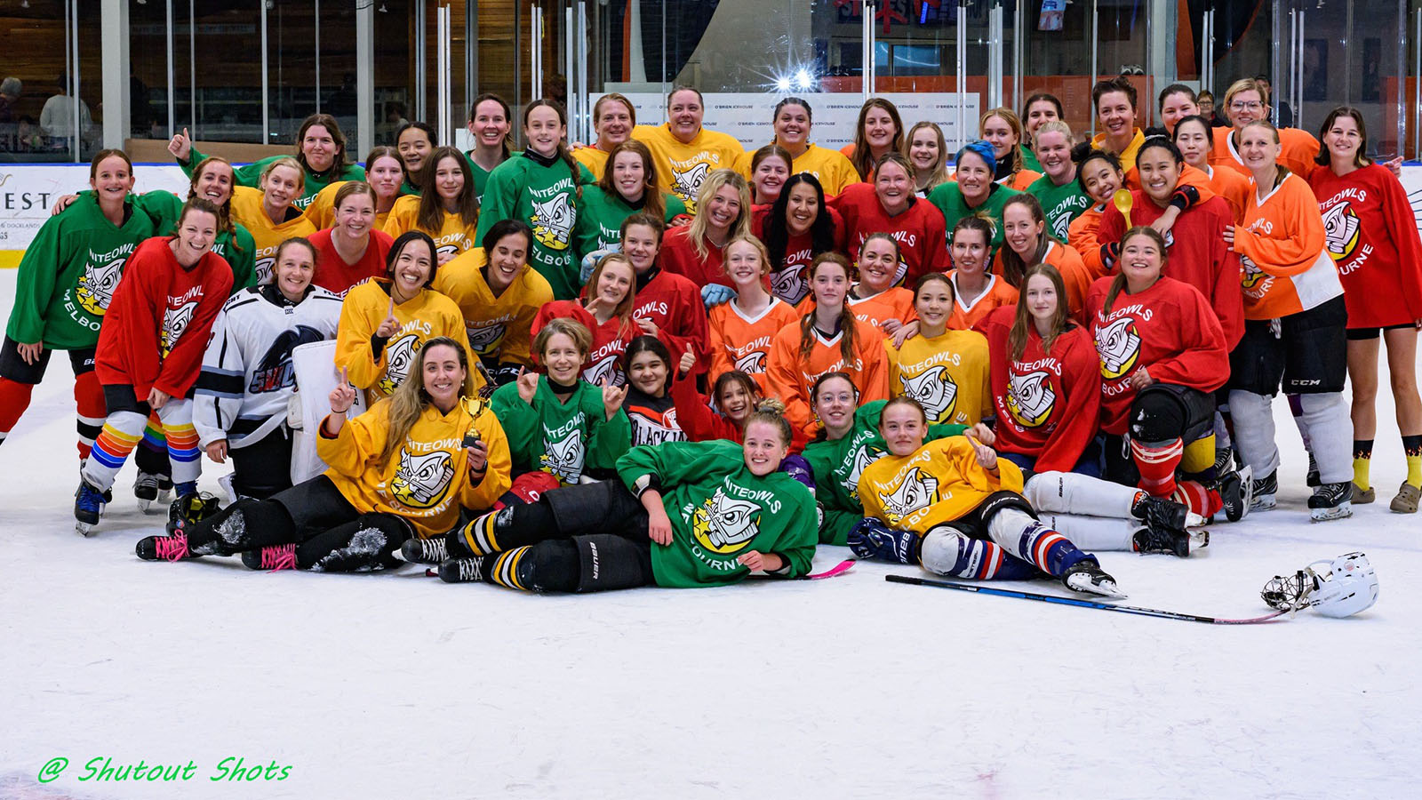| Comments: At Alpine Ice Sports Centre in Christchurch, New Zealand, players ranging from age 9 to 59 played in two games, geared to different experience levels. In the first game with 20 players, strong defence and solid goaltending by Paige Salay and Kelly Cox kept the score low. A Team Blue goal by Bronte Fitzhardinge wasn’t enough, as Team White got goals from Veronica Khorozova and Savanah Webb. The second game with 19 players featured strong offensive performances. Both Gabrielle Guerin (Blue) and Stephanie Koviessen (White) scored hat tricks, and Team White came out on top in another close game. While Team White bested Team Blue with a combined score of 9 to 6 on the day, everyone had a great time playing the sport they love and being part of the Global Girls’ Game! | |||