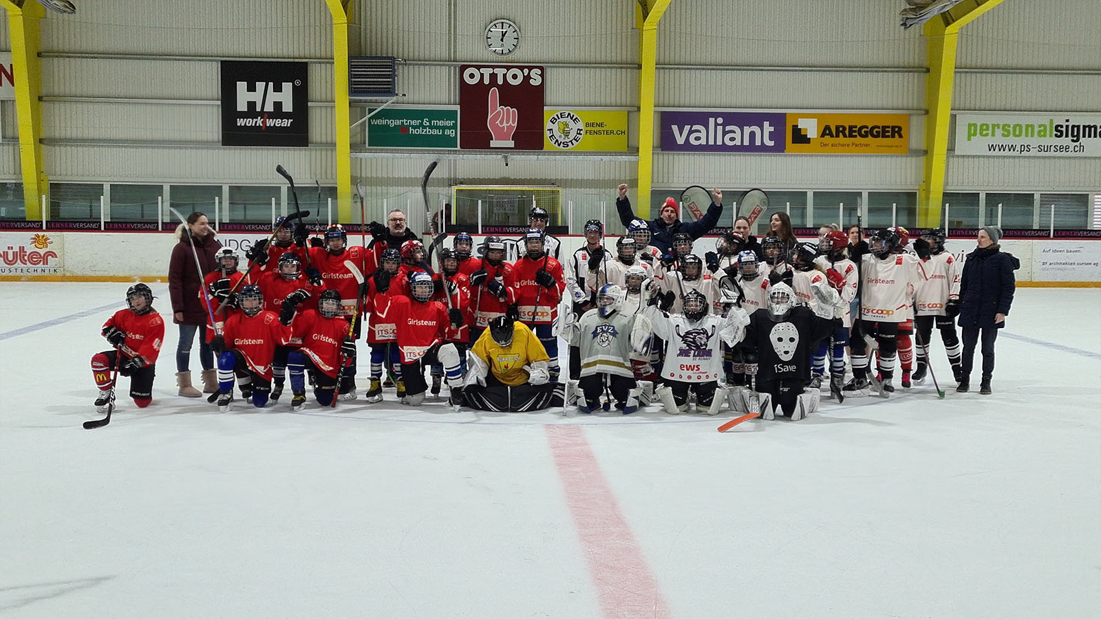 | Comments: Sursee in Central Switzerland welcomed 32 girls aged from 10-12 for the 2023 Global Girls’ Game. Team Blue (playing in red) opened the scoring when Emilia Weibel from HC Innerschwyz potted a rebound. That paved the way for her team to open a 4-0 lead in the first half of a fast-paced game. Fabienne Henggeler, from the youth section of Swiss Champion EV Zug, scored the fourth marker with a nice shot to the far side. In the second period, Team White got on the board thanks to Elin Tschannen from EHC Schwarzenburg. After several near misses, there was great excitement about finally finding the net. However, Team Blue replied immediately. Late in the game, Nora Bourigault from EHC Bern 96, a team with about 20 girls in their youth section, buried a rebound to give Team White a consolation goal. The party continued after the game as two of the players – Sophie Bucher and Claire Baxter – celebrated their birthdays. And it was all smiles on both teams after everyone – girls, staff, officials and parents – played their part in a committed and skillful game. |