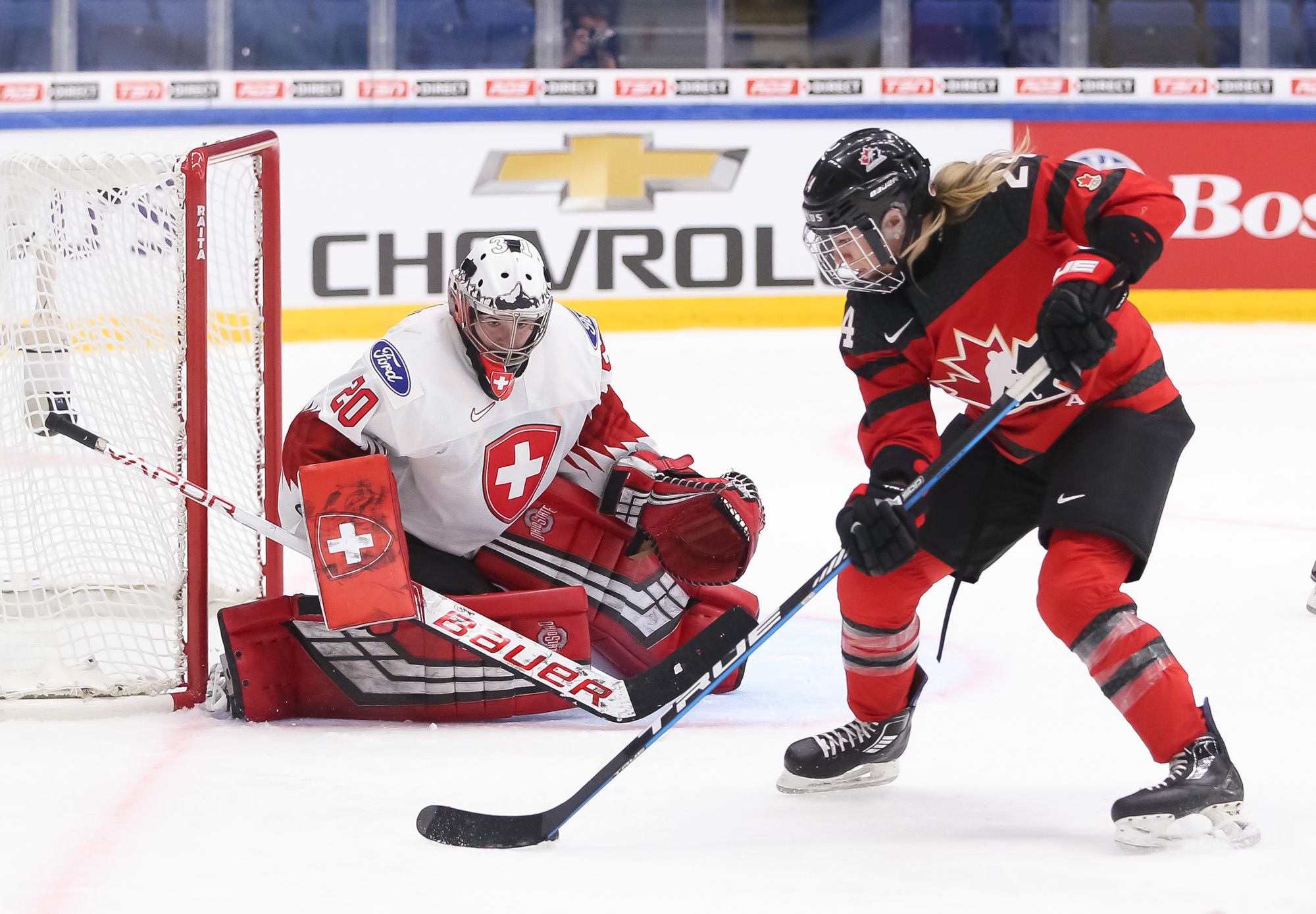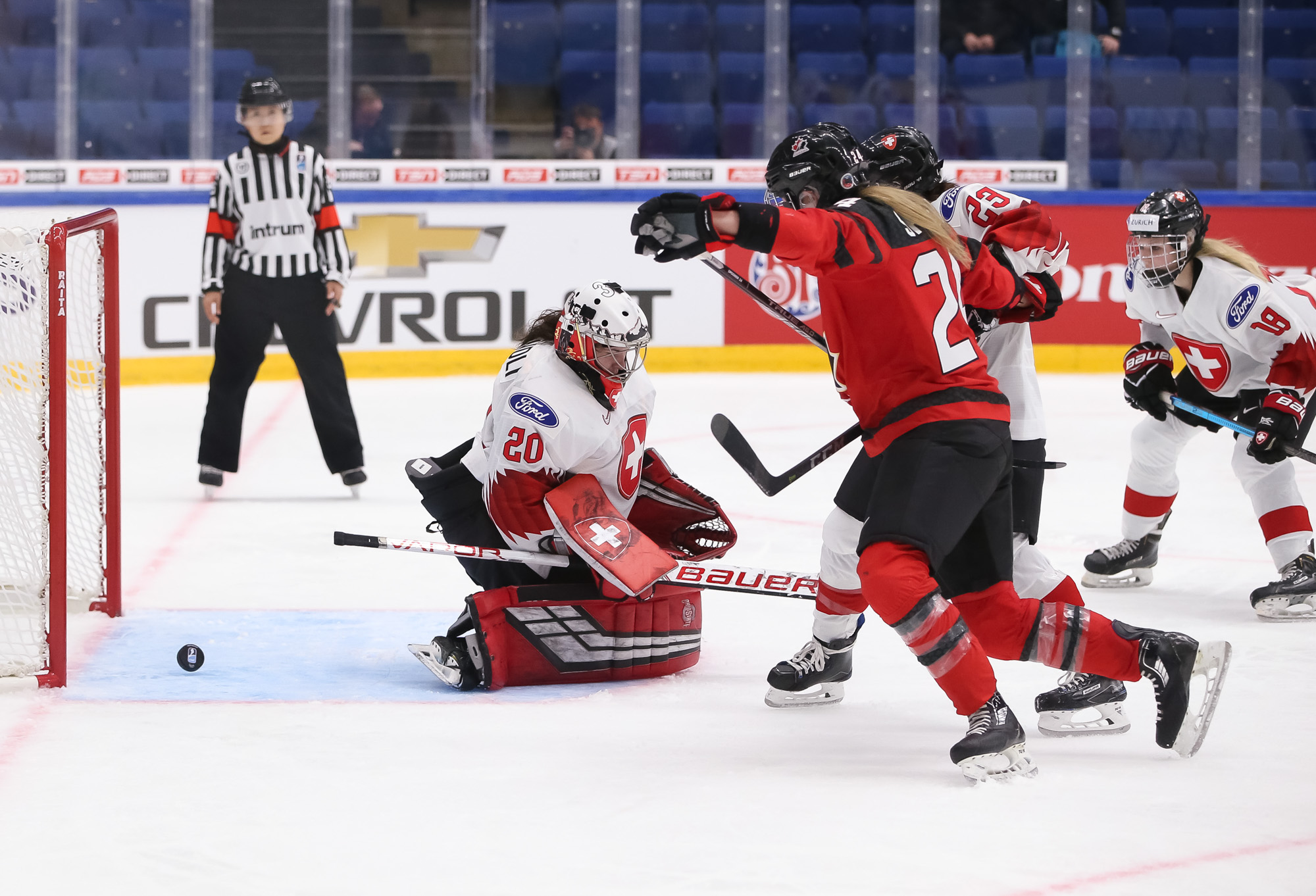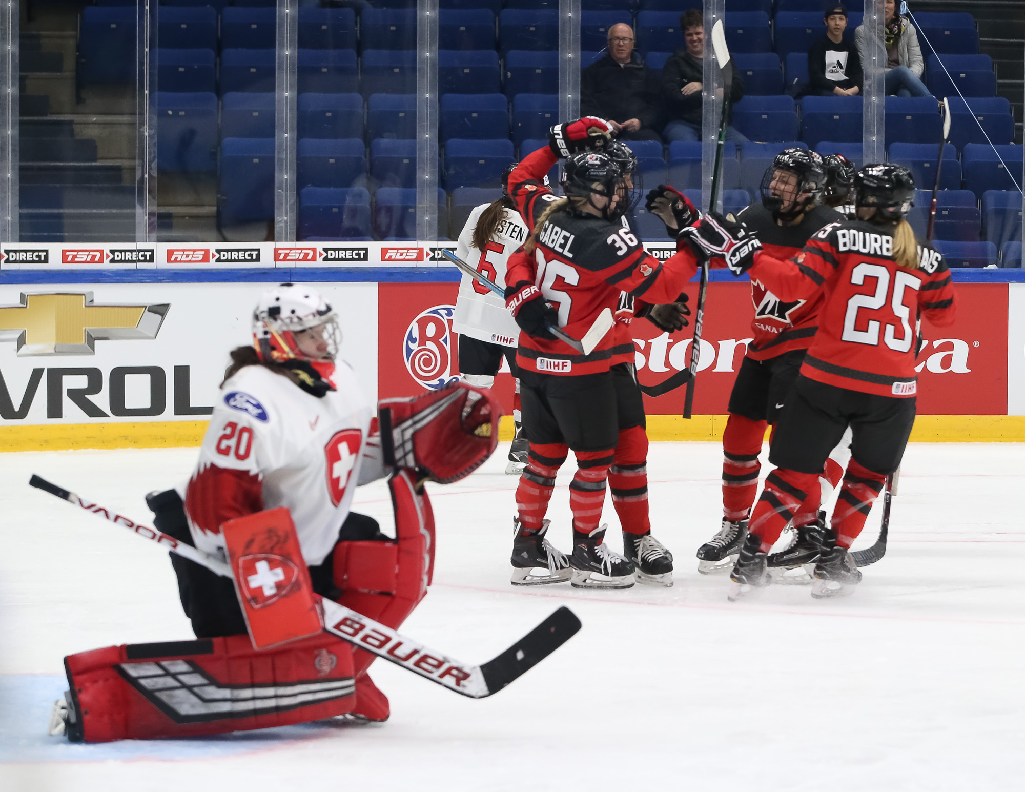 Kanada avasi turnauksen 6-0 voitolla Sveitsistä. Numerot eivät jättäneet mitään epäselväksi. Joukkue oli tavanomaisen tehokas nuorta Sveitsin joukkuetta vastaan, jonka kokoonpanosta oli poistunut monta kokenutta pelaajaa, mm. Christine Meier ja maalivahti Florence Schelling.