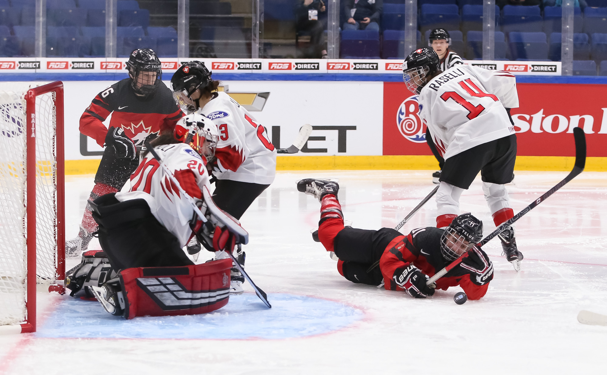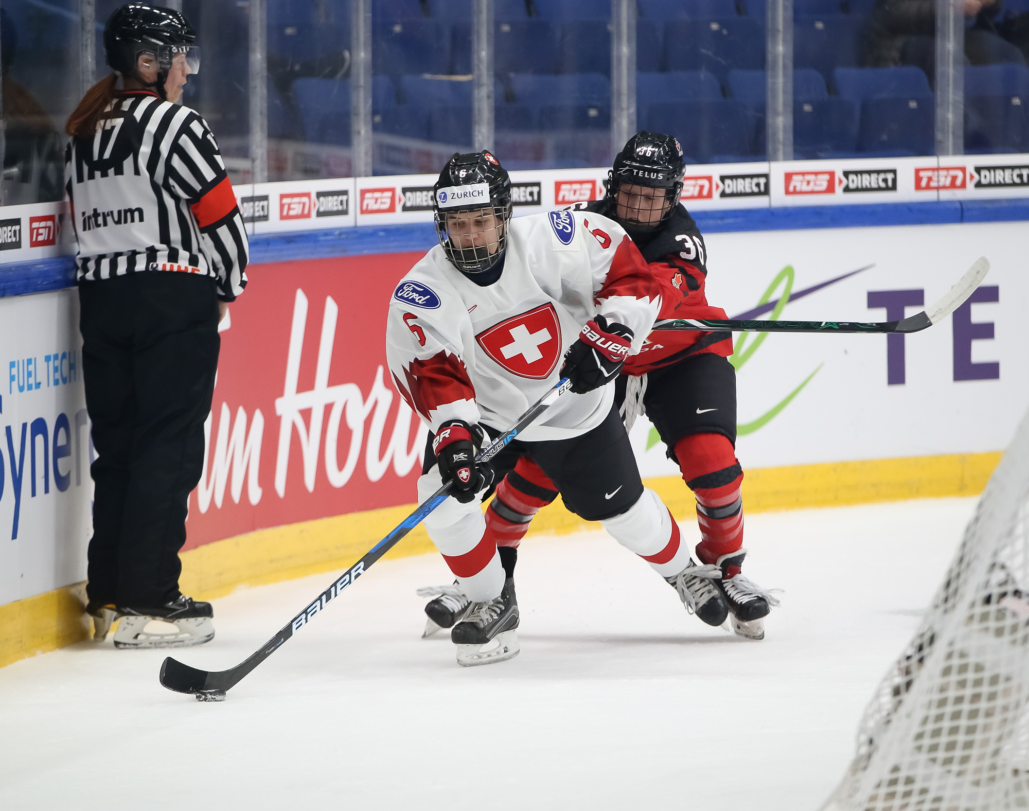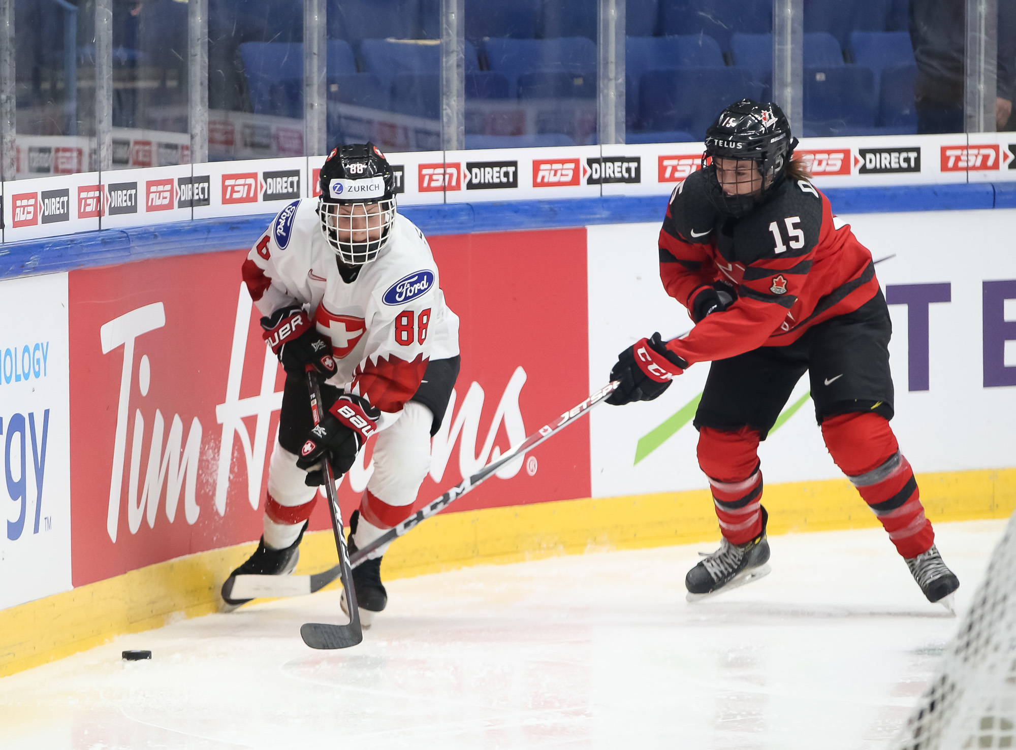 Kanada avasi turnauksen 6-0 voitolla Sveitsistä. Numerot eivät jättäneet mitään epäselväksi. Joukkue oli tavanomaisen tehokas nuorta Sveitsin joukkuetta vastaan, jonka kokoonpanosta oli poistunut monta kokenutta pelaajaa, mm. Christine Meier ja maalivahti Florence Schelling.