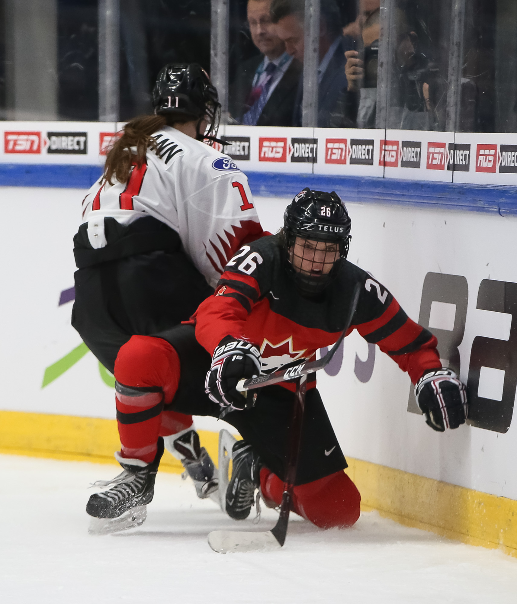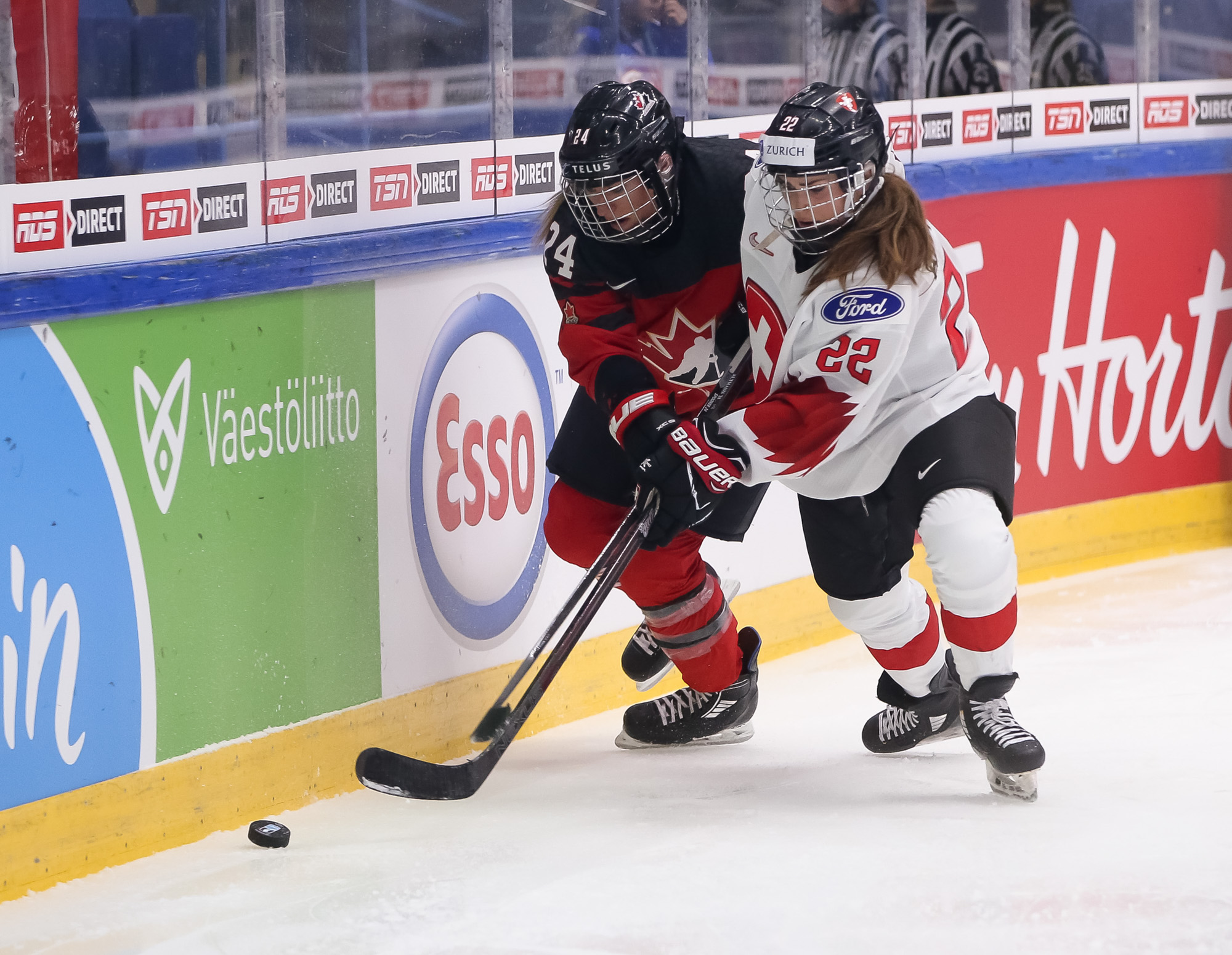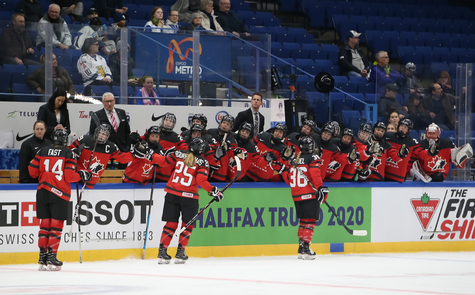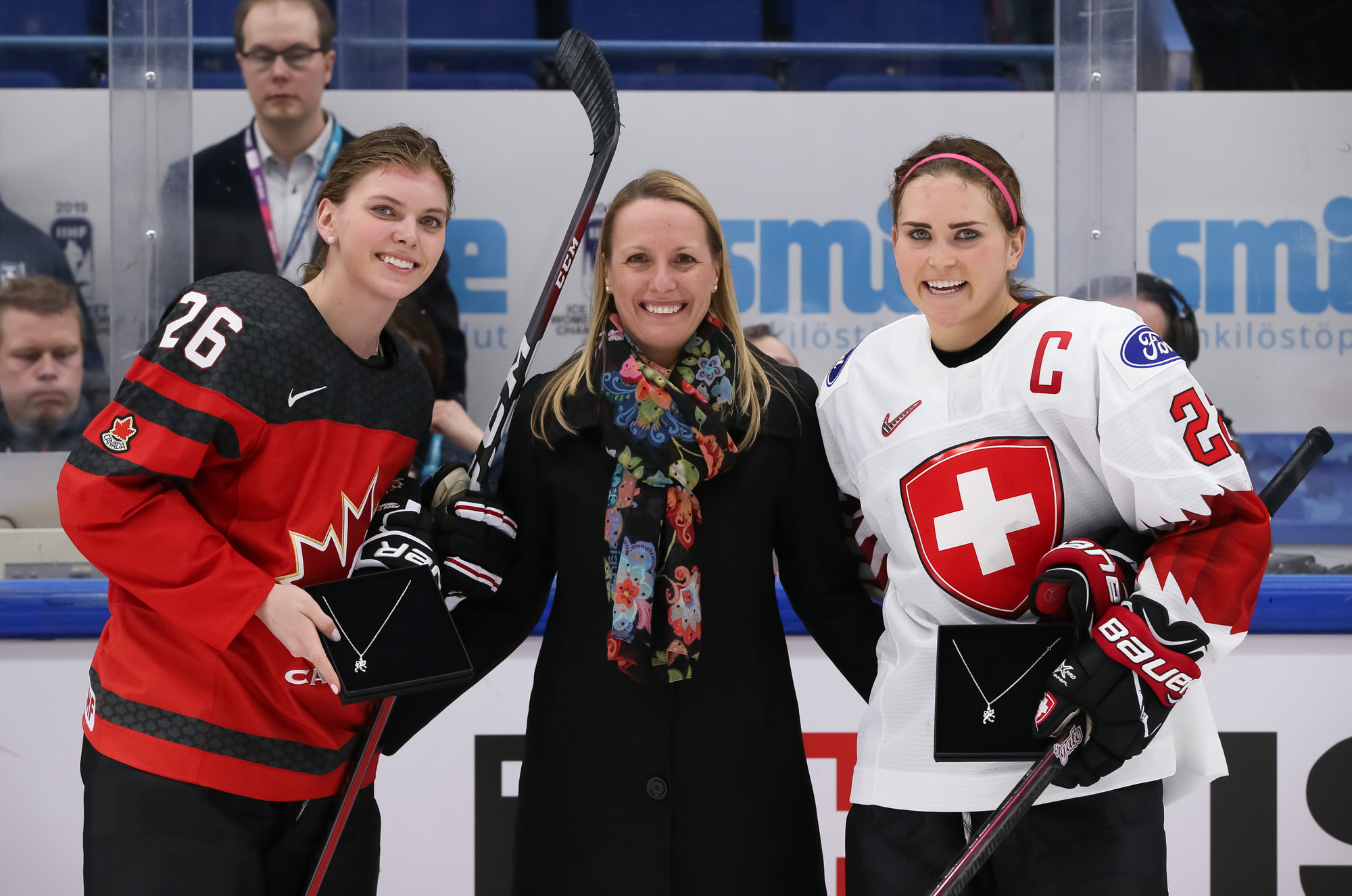 Kanadan kapteenin Marie-Philip Poulinin kisakunnosta on oltu epävarmoja. Hän kuitenkin puki otteluun, mutta tyytyi kannustamaan joukkuettaan vaihtopenkiltä. Sveitsin Lara Stalder ei ollut joukkueensa kokoonpanossa.