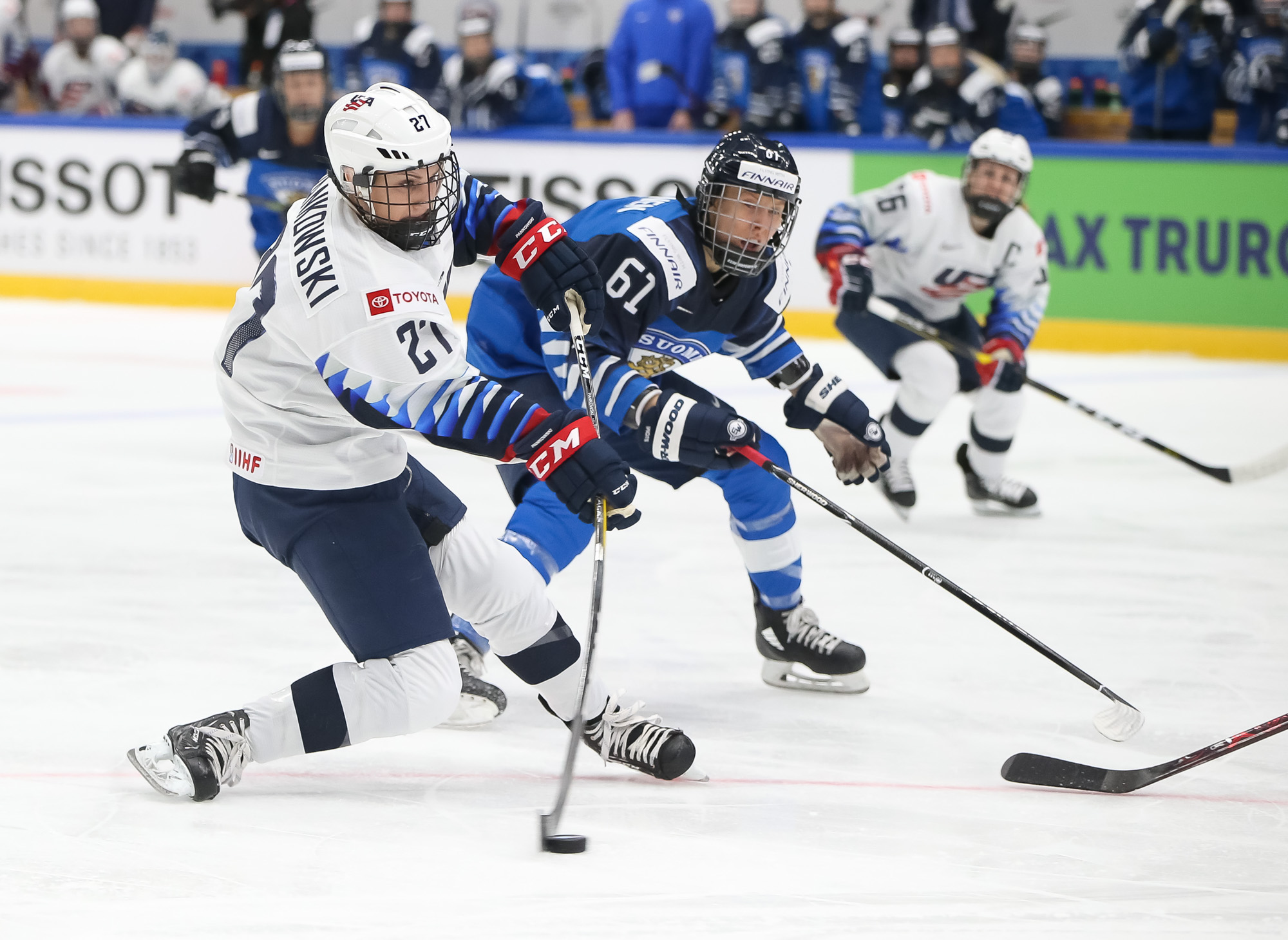 Yhdysvaltojen tasoitus tuli avauserän tarkalla yläkulmalaukauksella siirretyn rangaistuksen aikana. Osumasta vastasi Kendall Coyne Schofield.