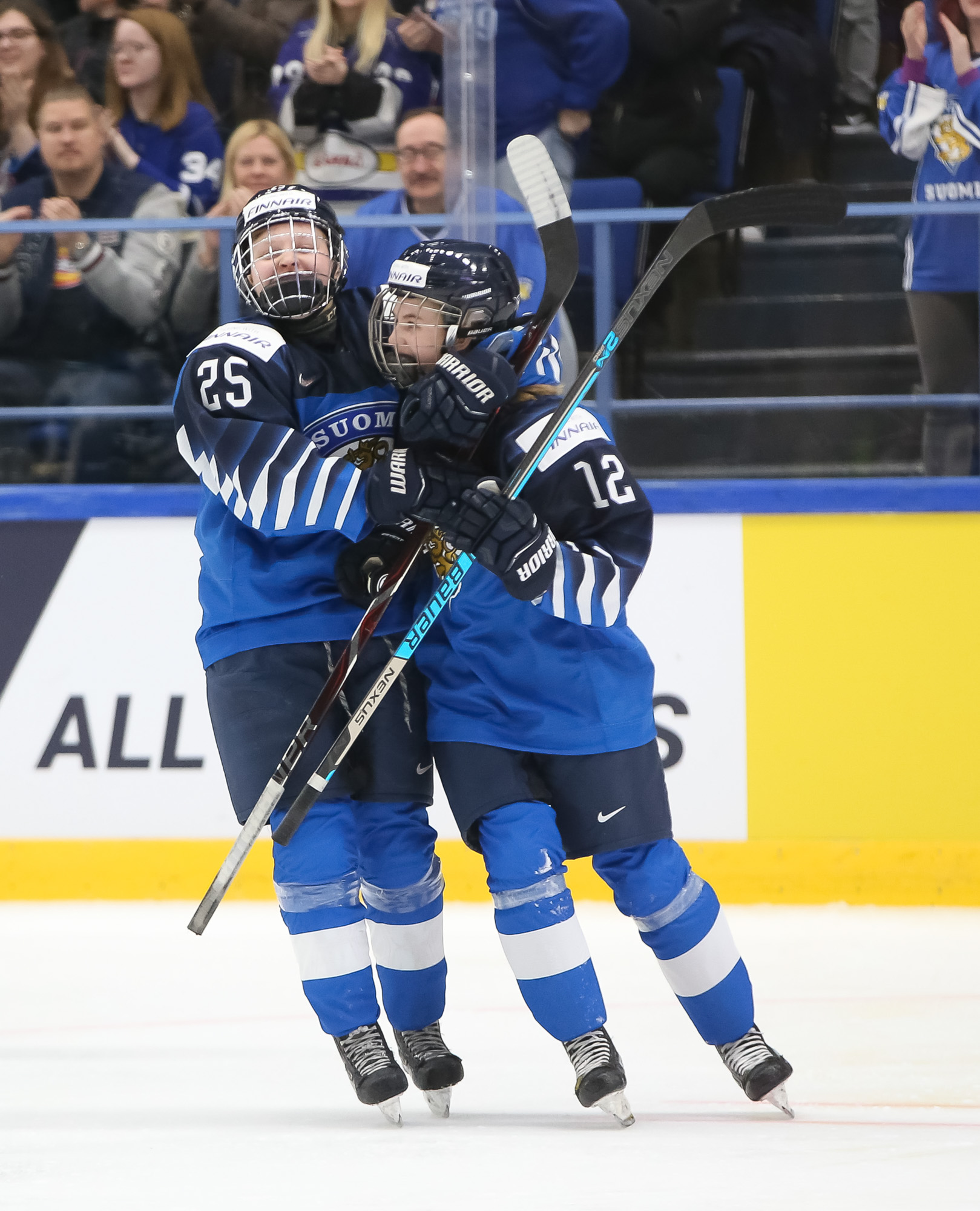 Suomi jatkoi hyvin ennakkoluulotonta peliään myös toisessa erässä ja pelin vauhti koveni entisestään. Naisleijonat huudatti nelituhatpäistä kotiyleisöä toistamiseen, kun Petra Nieminen vei Suomen 2-1-johtoon Hiirikosken sekä Riikka Sallisen syötöistä. Räty otti tärkeintä torjuntoja pitäen huolta kisaisäntien johtoasemasta, josta lähdettiinkin ottelun päätöserään.
