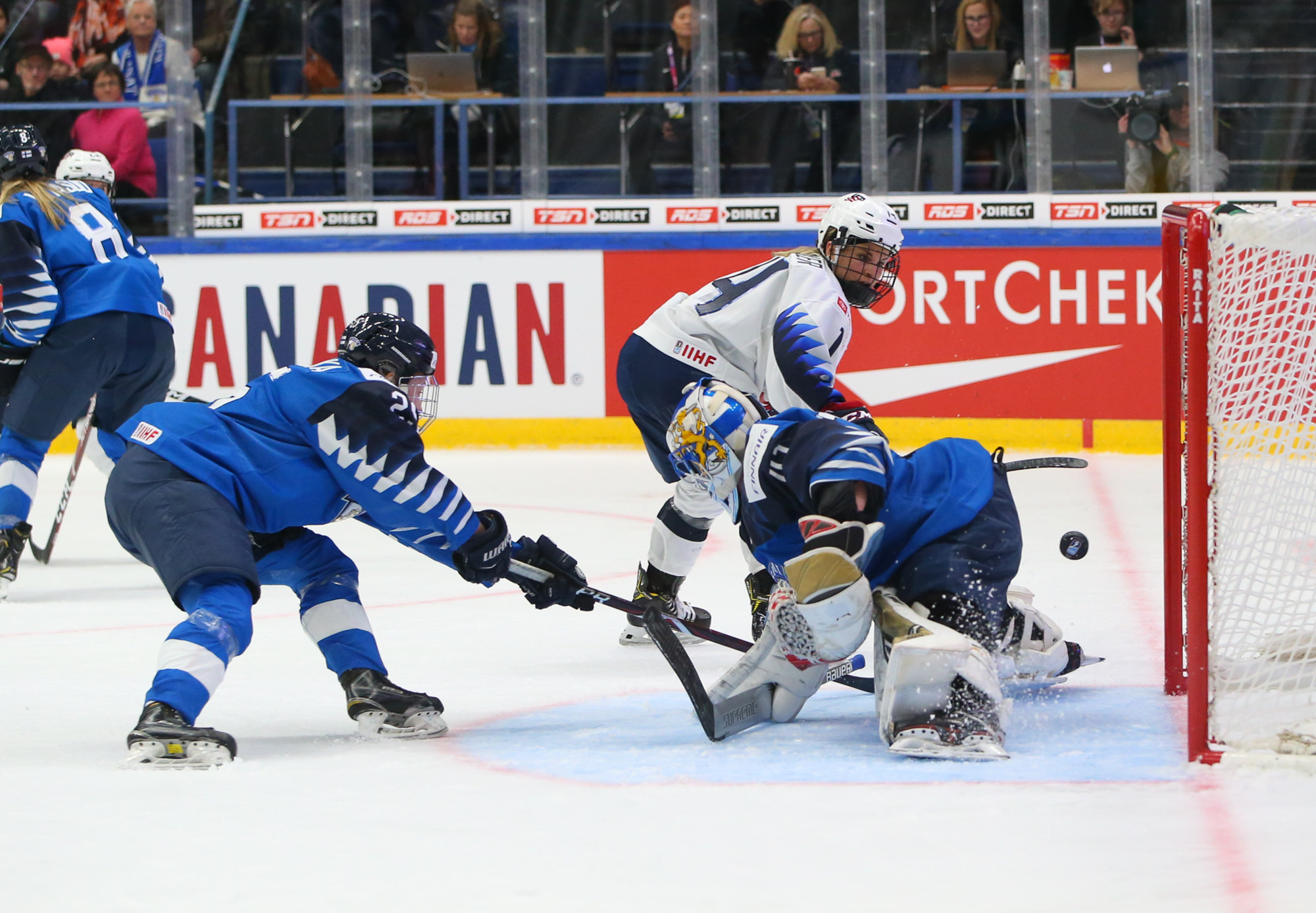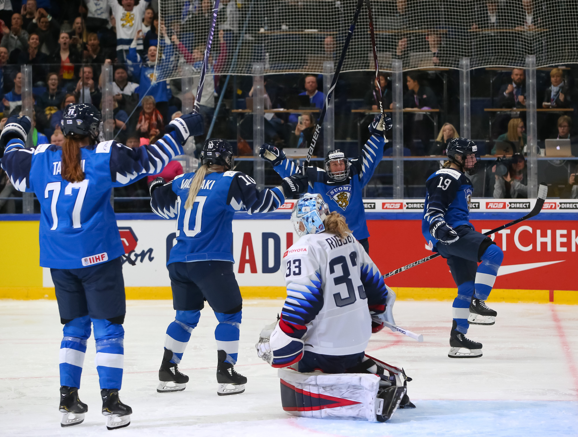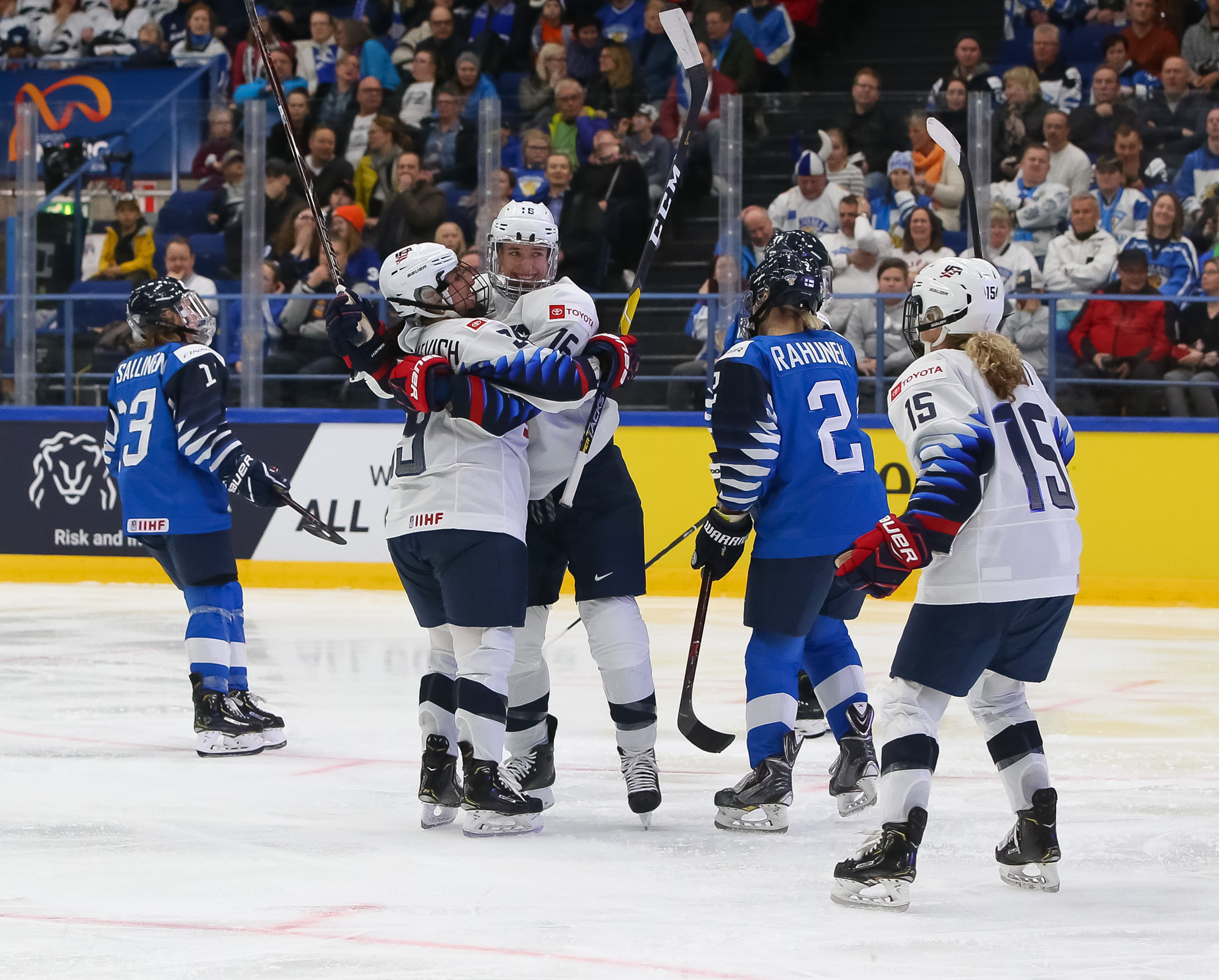 Naisleijonien ja kotiyleisön hurmoksesta huolimatta USA vaihtoi vaihdetta ja otti komennon itselleen, iskien kolmannessa erässä peräti viisi maalia. Suomi sai vielä viisi minuuttia ennen päätössumeria ylivoimamahdollisuuden, jota joukkue lähtikin pelaamaan rohkeasti kuudella neljää vastaan. Hallitseva mestari näytti kuitenkin kyntensä vieden A-lohkon avausottelun nimiinsä selvin 6-2-lukemin.
