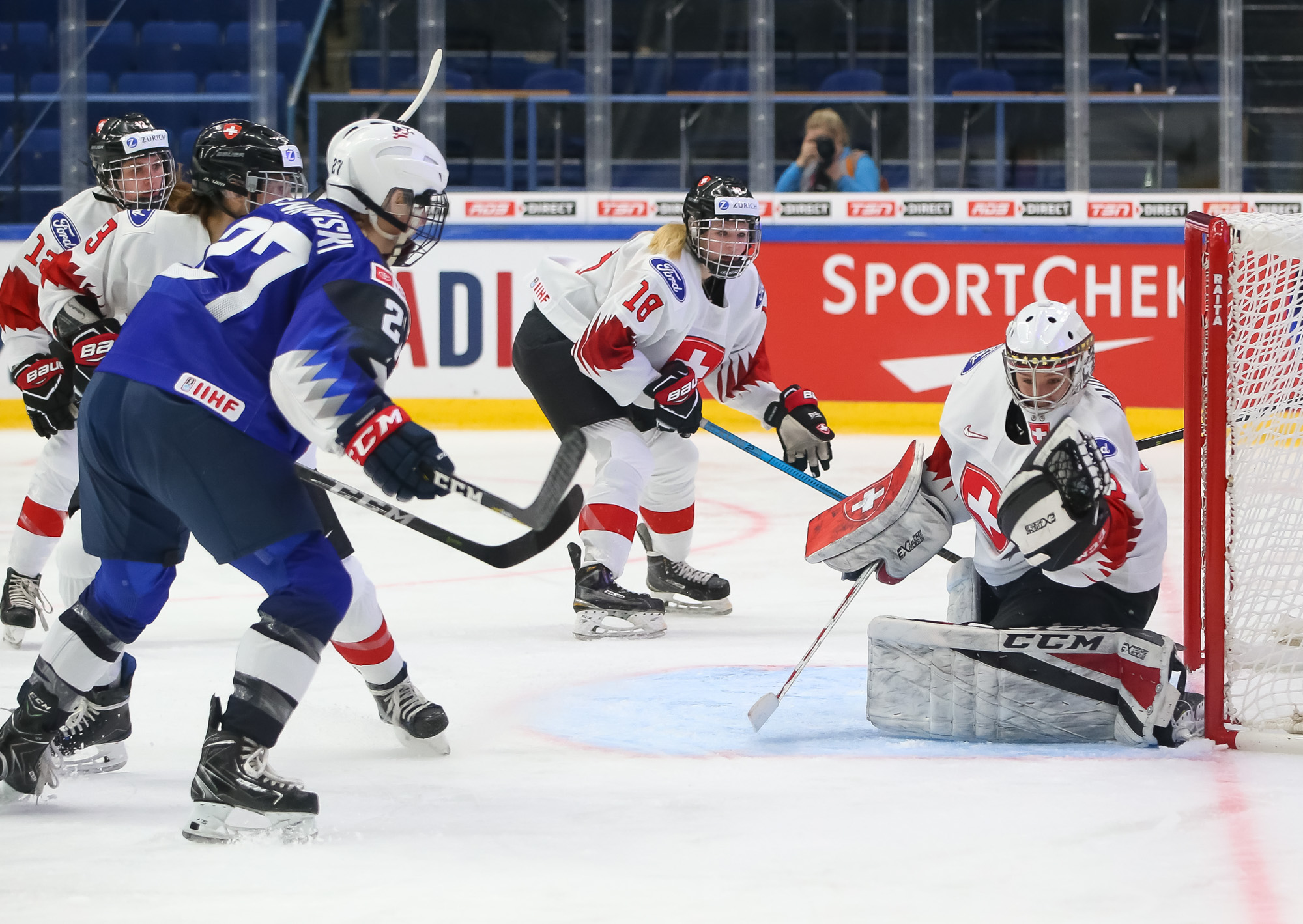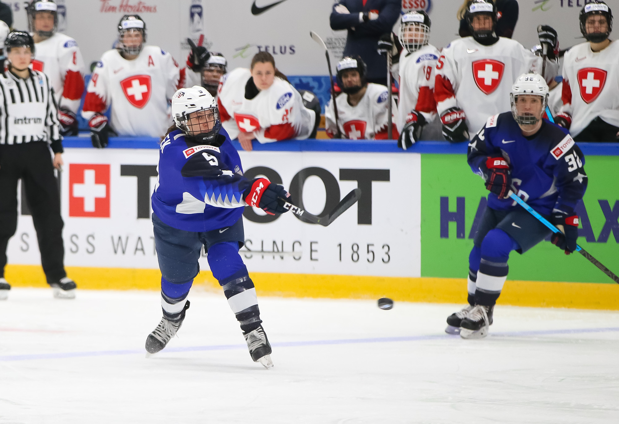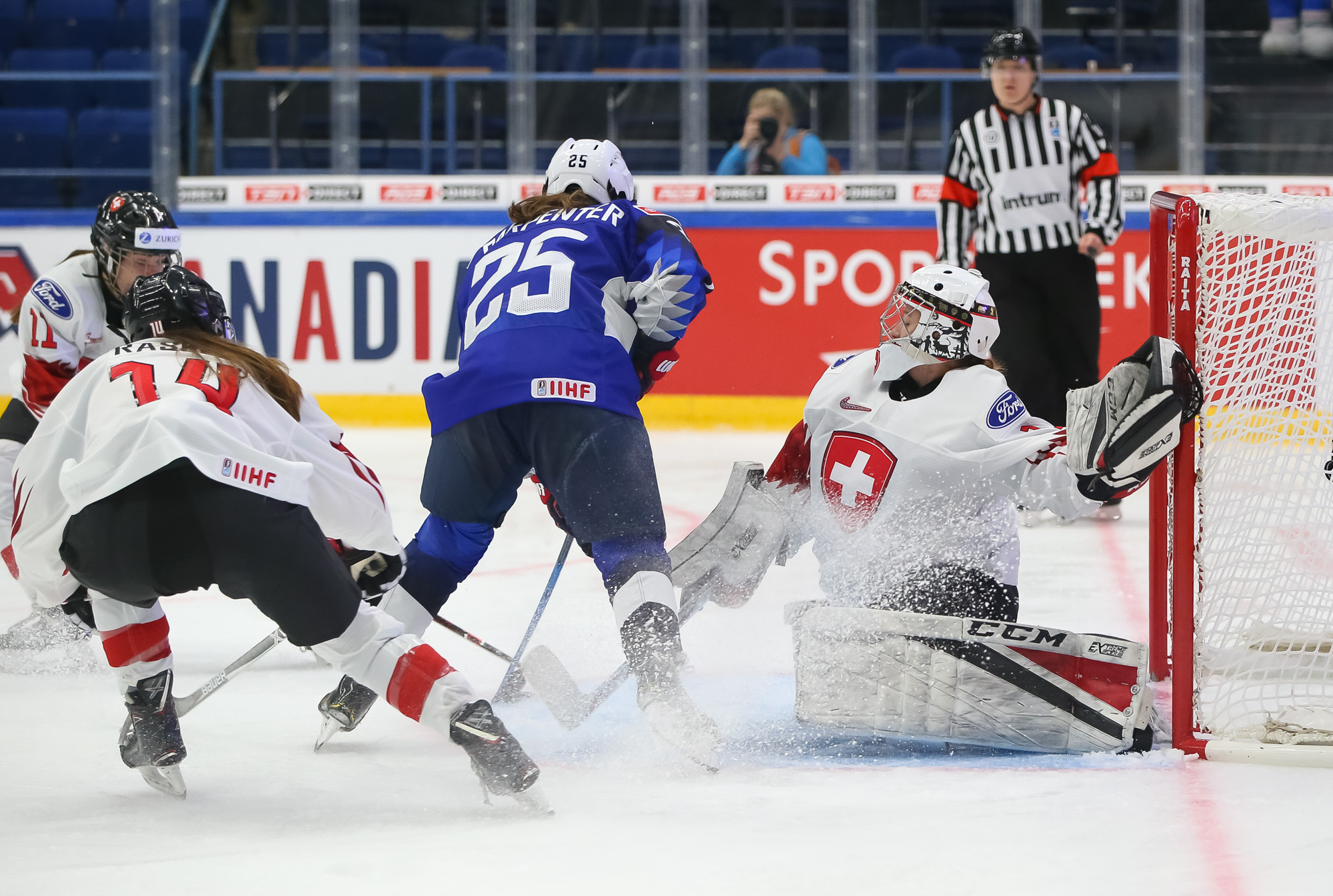 Yleisesti ottaen vuoden 2014 olympialaisissa pronssia saavuttanut Sveitsin uudelleenrakennettu joukkue on taistellut A-lohkossa. Ainoan maalin on tehnyt Evelina Raselli 2-1 tappiopelissä Venäjää vastaan. Alina Muller, joka nimettiin parhaaksi hyökkääjäksi PyeongChangissa 10 pisteellä, on saanut näissä kisoissa vain yhden syöttöpisteen.
