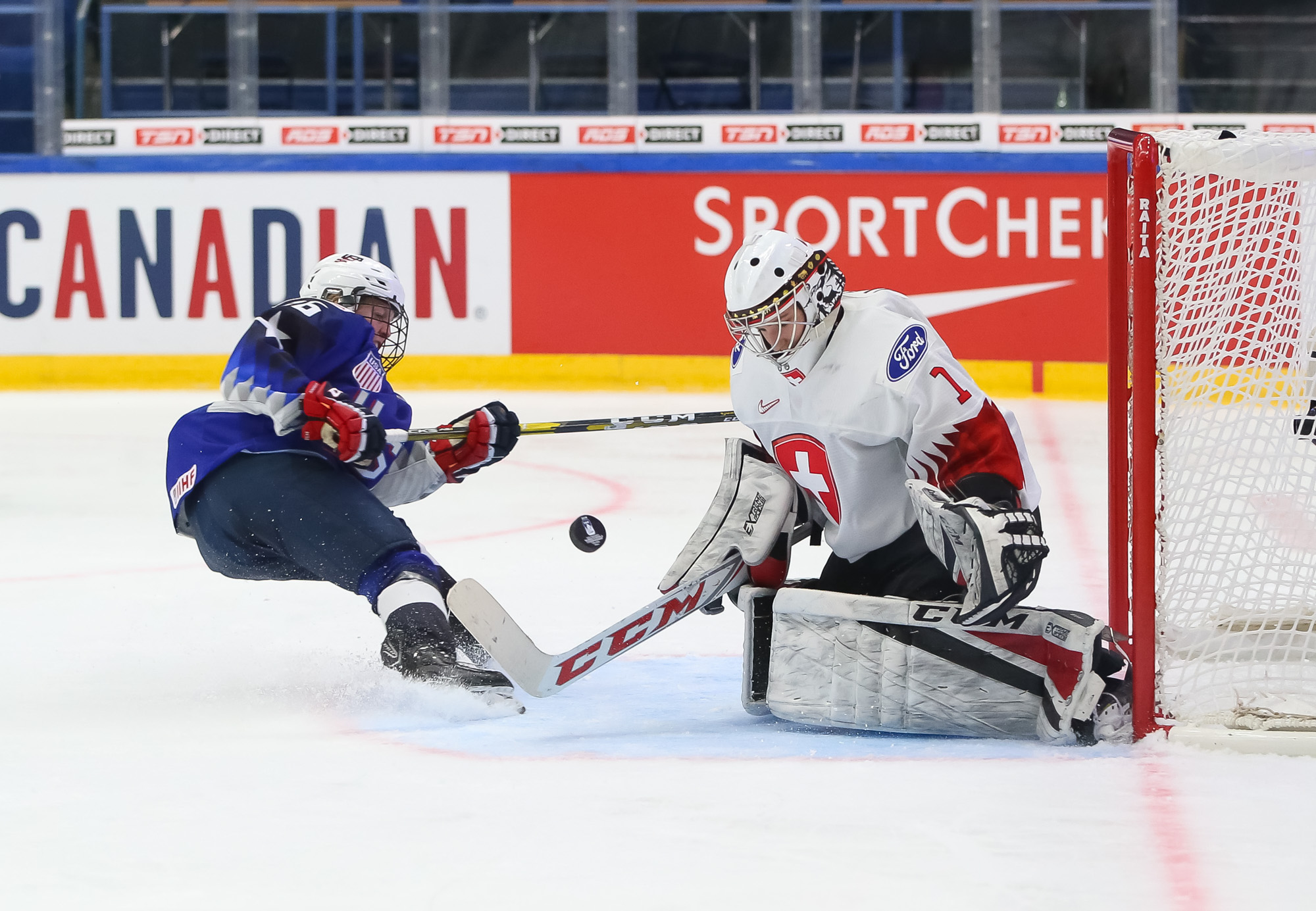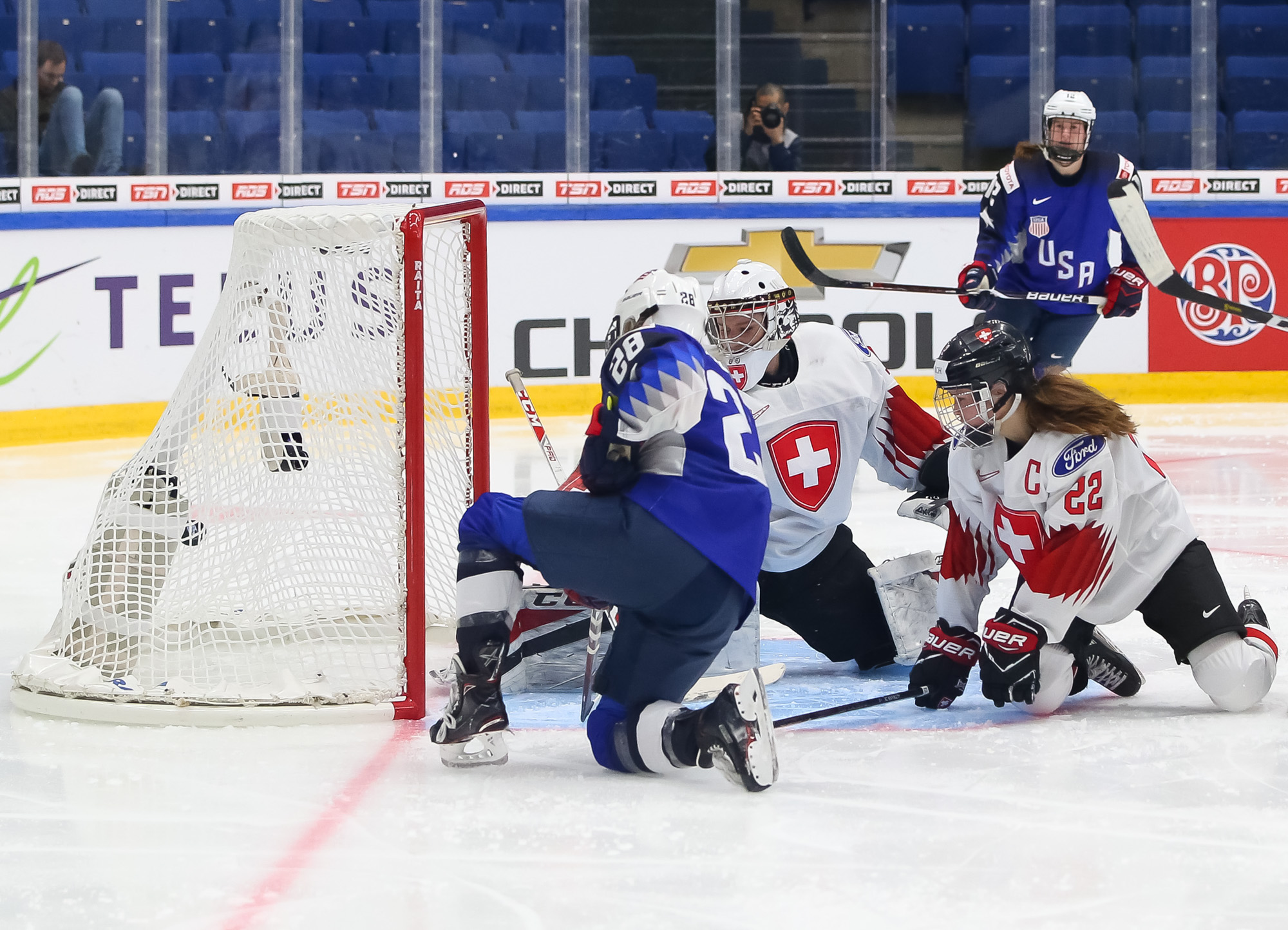 USA:n joukkue pääsi jo ensimmäisessä erässä kolmen maalin johtoon eikä pahemmin katsellut taakseen kun se moukaroi Sveitsin lopulta 8 – 0 sunnuntai-iltana.