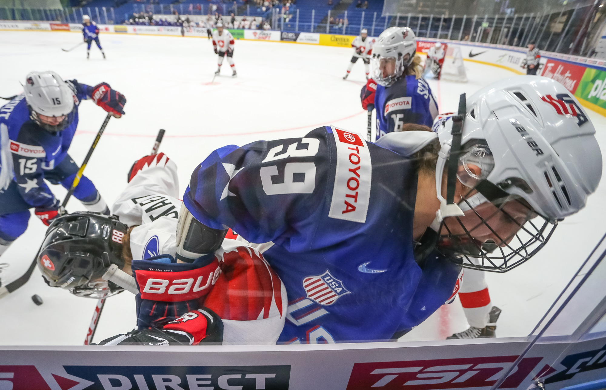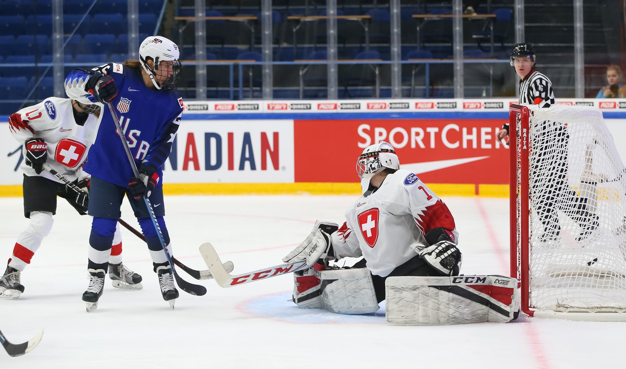 USA tuli peliin Sveitsiä vastaan 70-5 maalierolla, edellisen kerran joukkueet kohtasivat Sochin olympialaisissa vuonna 2014, jolloin USA voitti 9-0. Edellinen kohtaaminen Naisten MM-kisoissa oli vuonna 2013, jolloin Decker maalasi kahdesti pelin päättyessä USA:n 5-0 voittoon.
