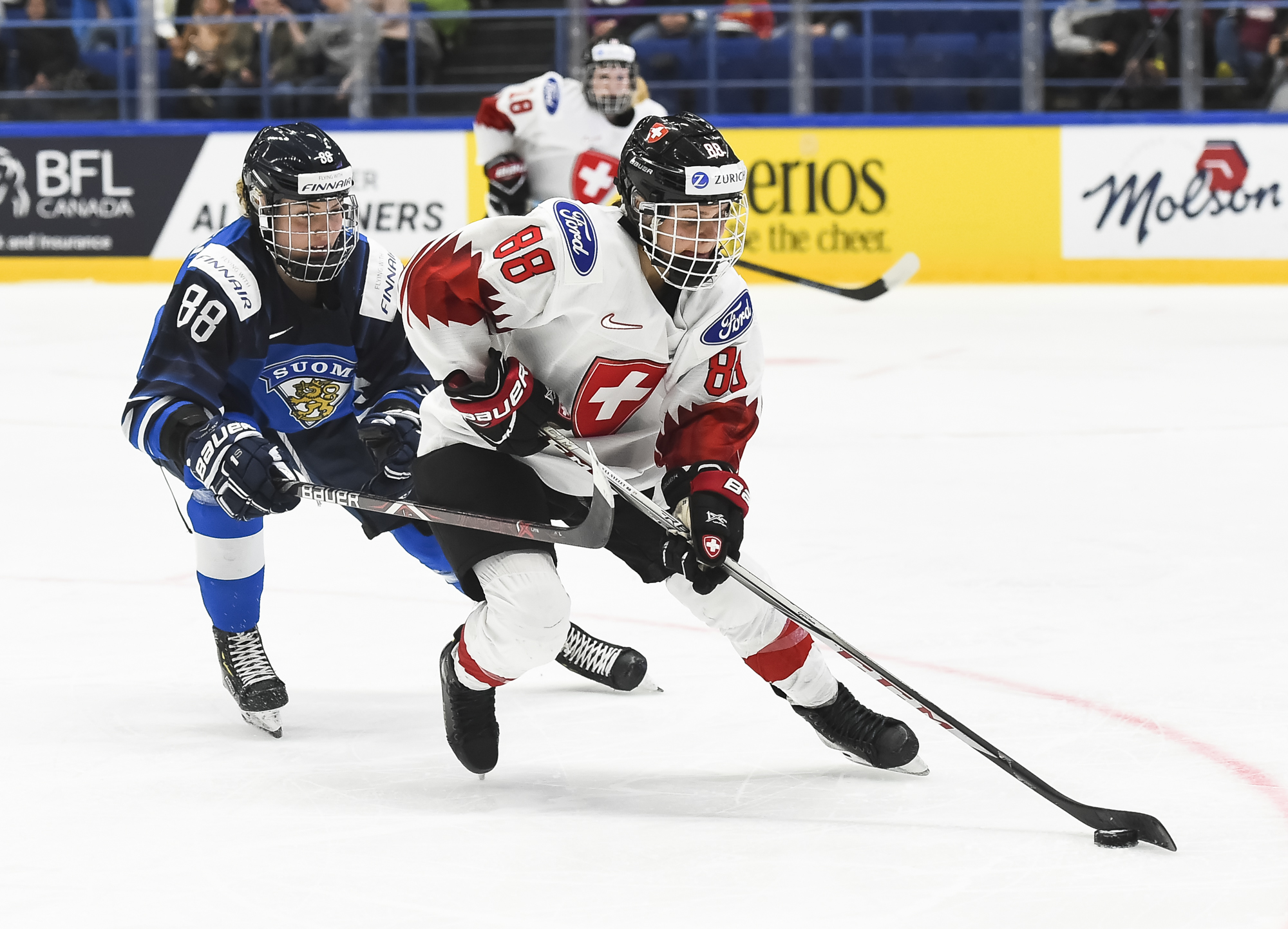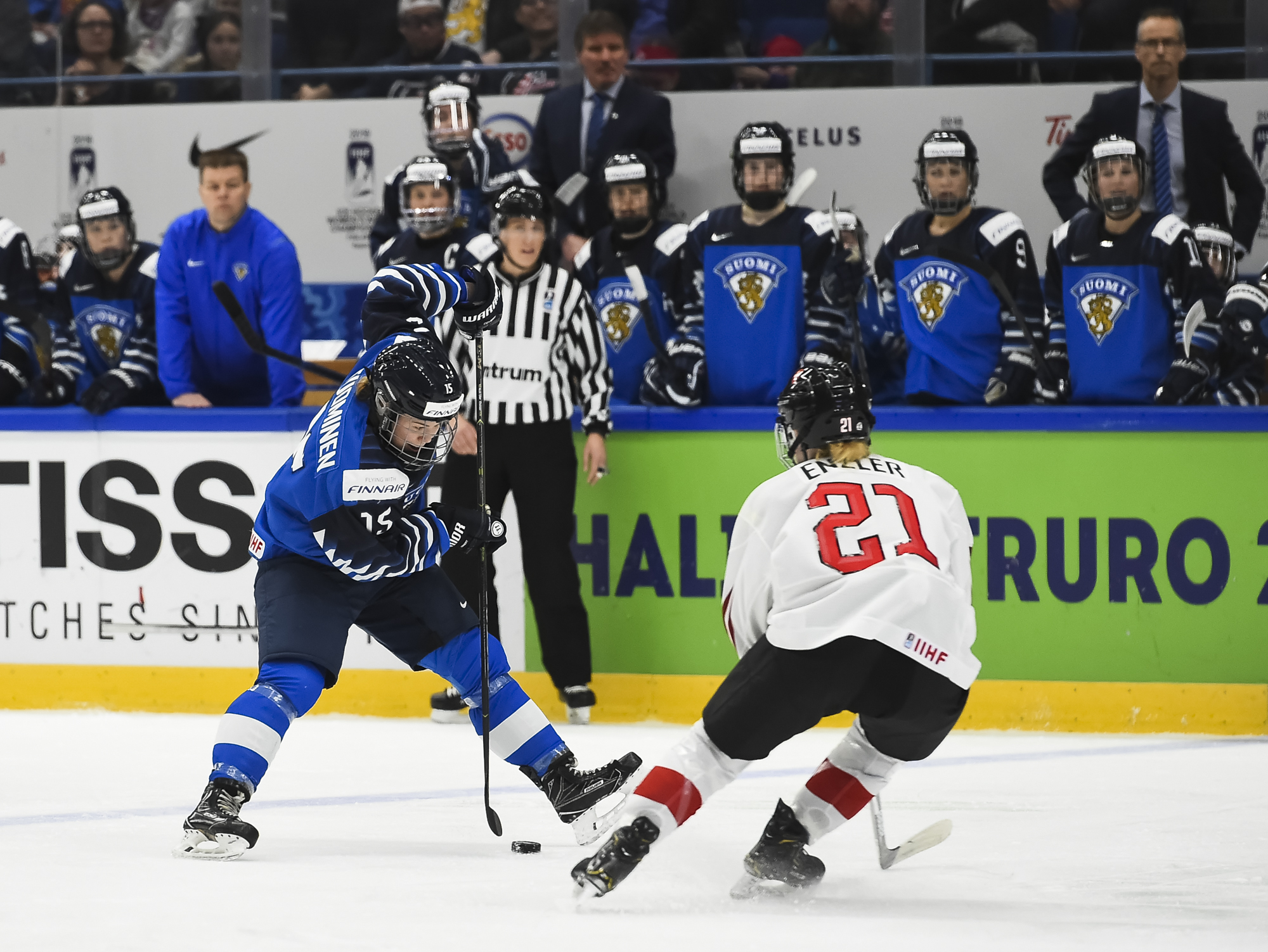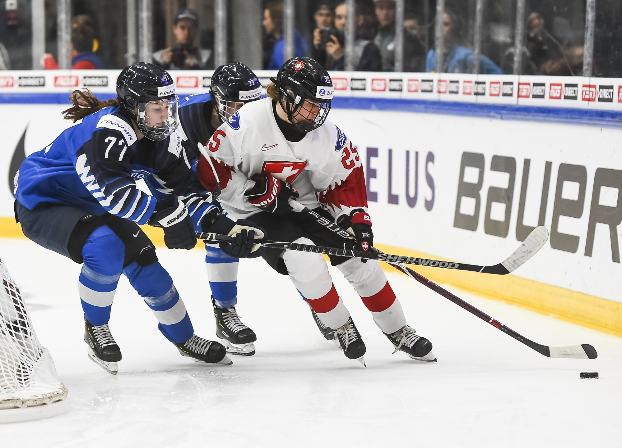 Toisen erän alkupuolella Suomi istui jäähyllä pariinkin kertaan. Jälkimmäisen alivoiman Sveitsi kykeni hyödyntämään - Alina Muller tasoitti pelin Bullon syötöstä ja peli oli tasan.