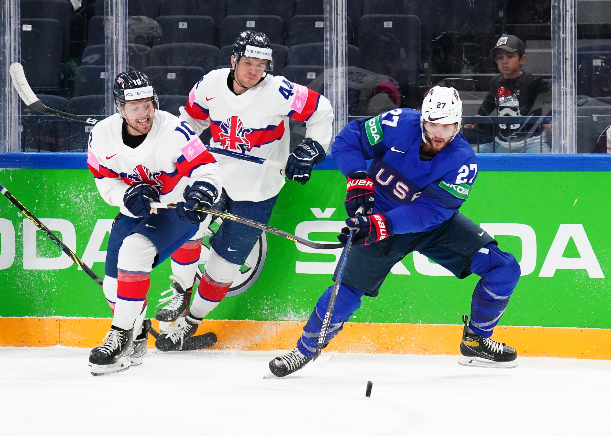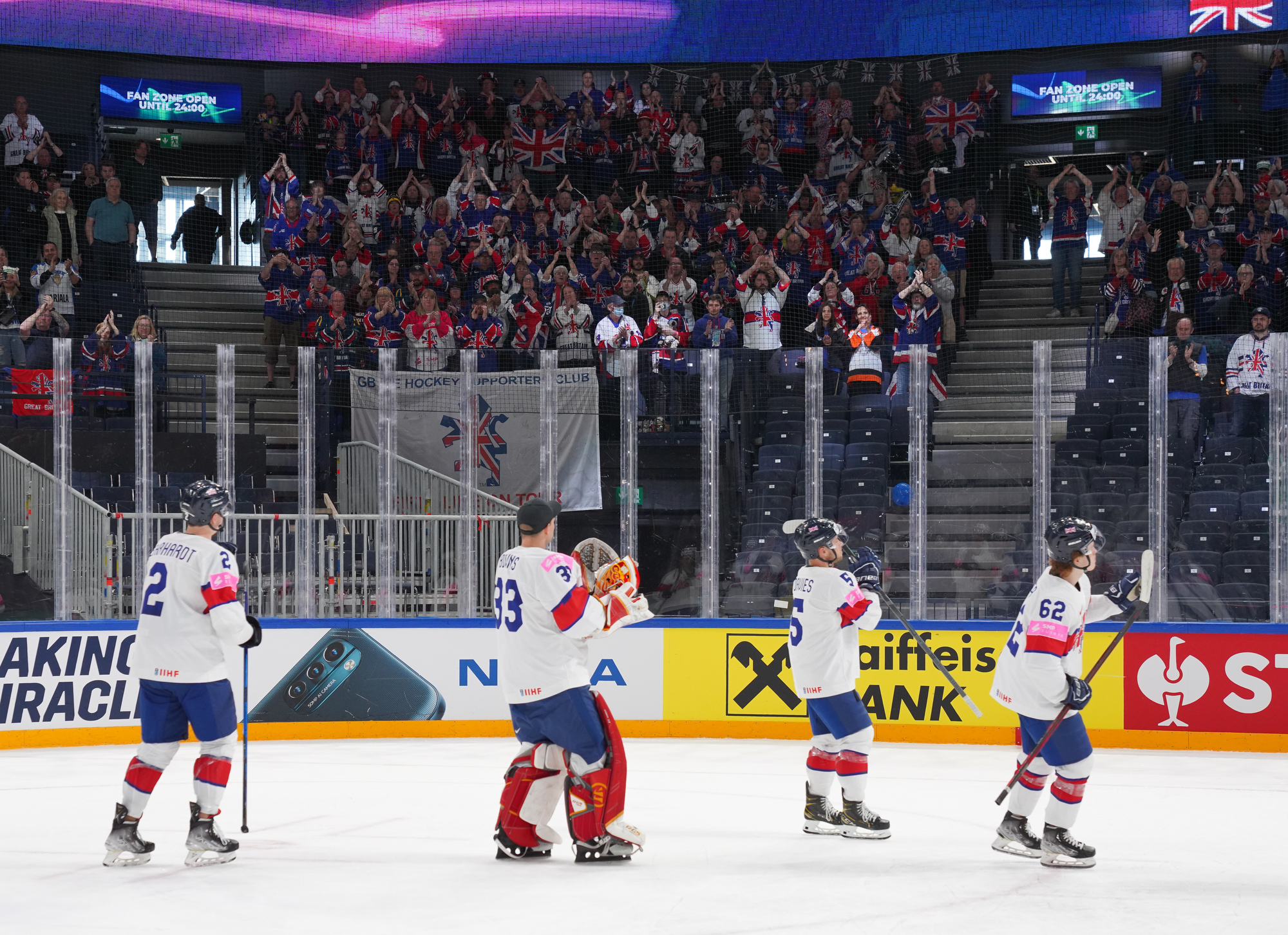Myös Iso-Britannian kokoonpanossa oli tehty muutoksia Ruotsia vastaan 0-6 hävityn tiistaisen ottelun jälkeen. Hyökkääjä Luke Ferrara ja puolustaja Sam Jones liittyivät mukaan nelosketjuun Jos Batchin ja Sam Dugganin tilkalle, ja Jackson Whistle oli ensimmäistä kertaa aloituksessa maalilla, korvattuaan Ben Bownsin Ruotsi-pelin ensimmäisen erän jälkeen.