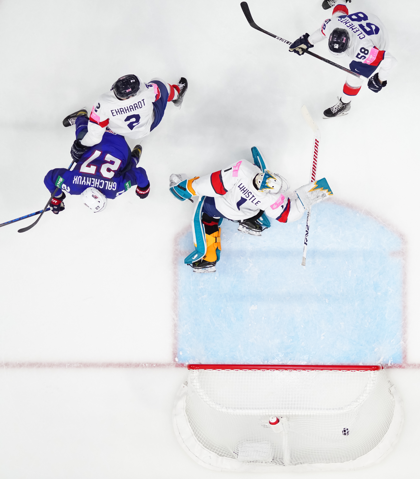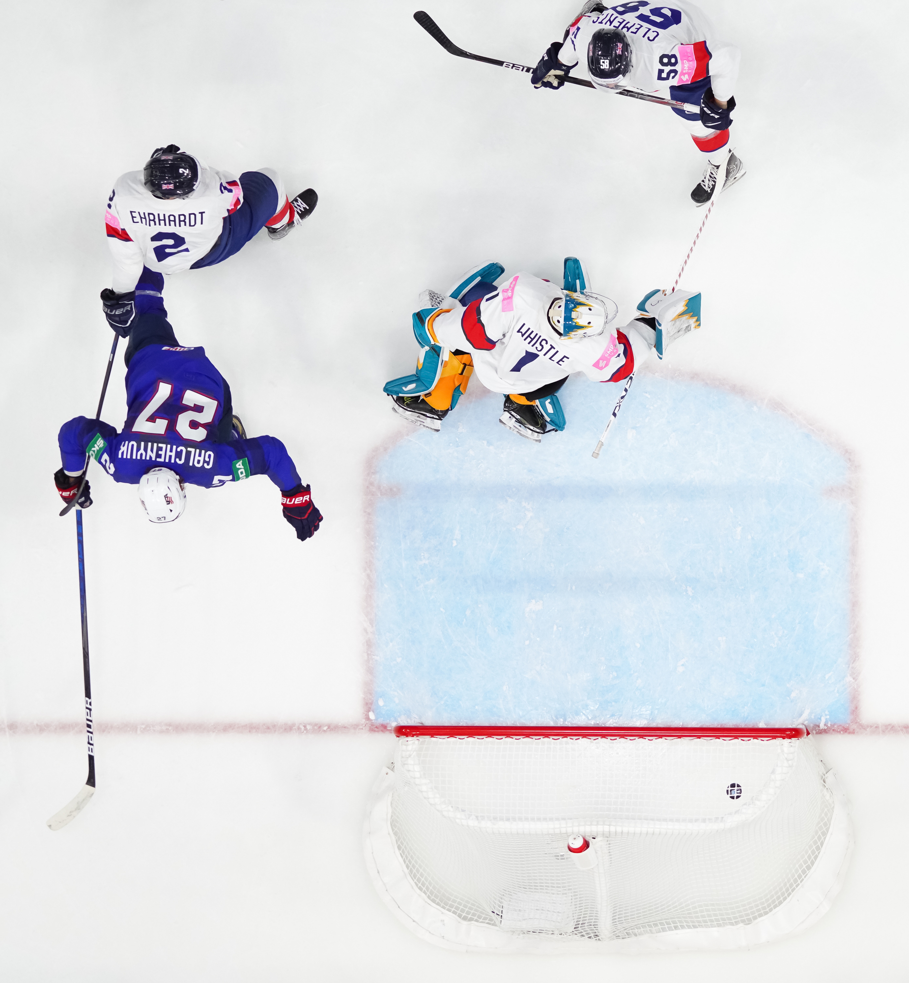 Toisen päädyn maalilla Whistle teki laatusuorituksen pitäessään lukemat nollissa ensimmäisen erän ajan. Yhdysvaltain Vinni Lettieri ja Thomas Bordeleau testasivat molemmat Whistlea, joka onnistui torjumaan heidän laukauksensa.