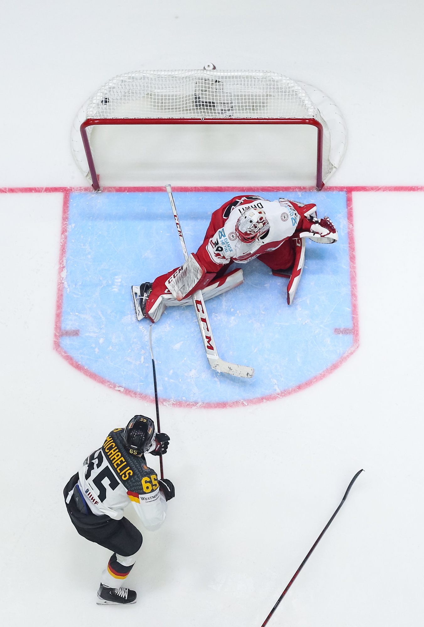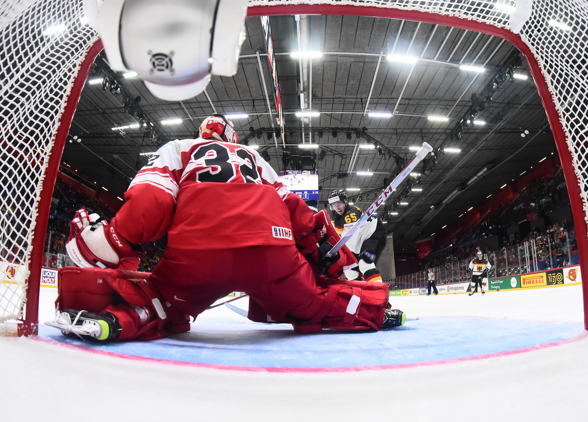 Kummankin joukkueen turnauksen ykkösmaalivahdit pääsivät irti mittelössä, jossa kohtasivat Saksan Philipp Grubauer ja Tanskan Sebastian Dahm. Laukaukset maalia kohti olivat harvassa, ne menivät Tanskan hyväksi 18-13. Grubauer torjui MM-uransa ensimmäisen nollapelin neljännessä turnauksessaan.