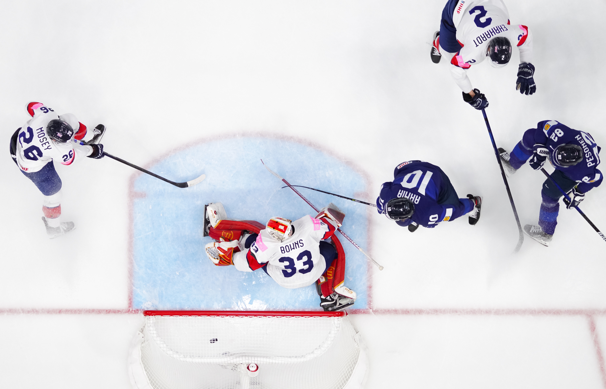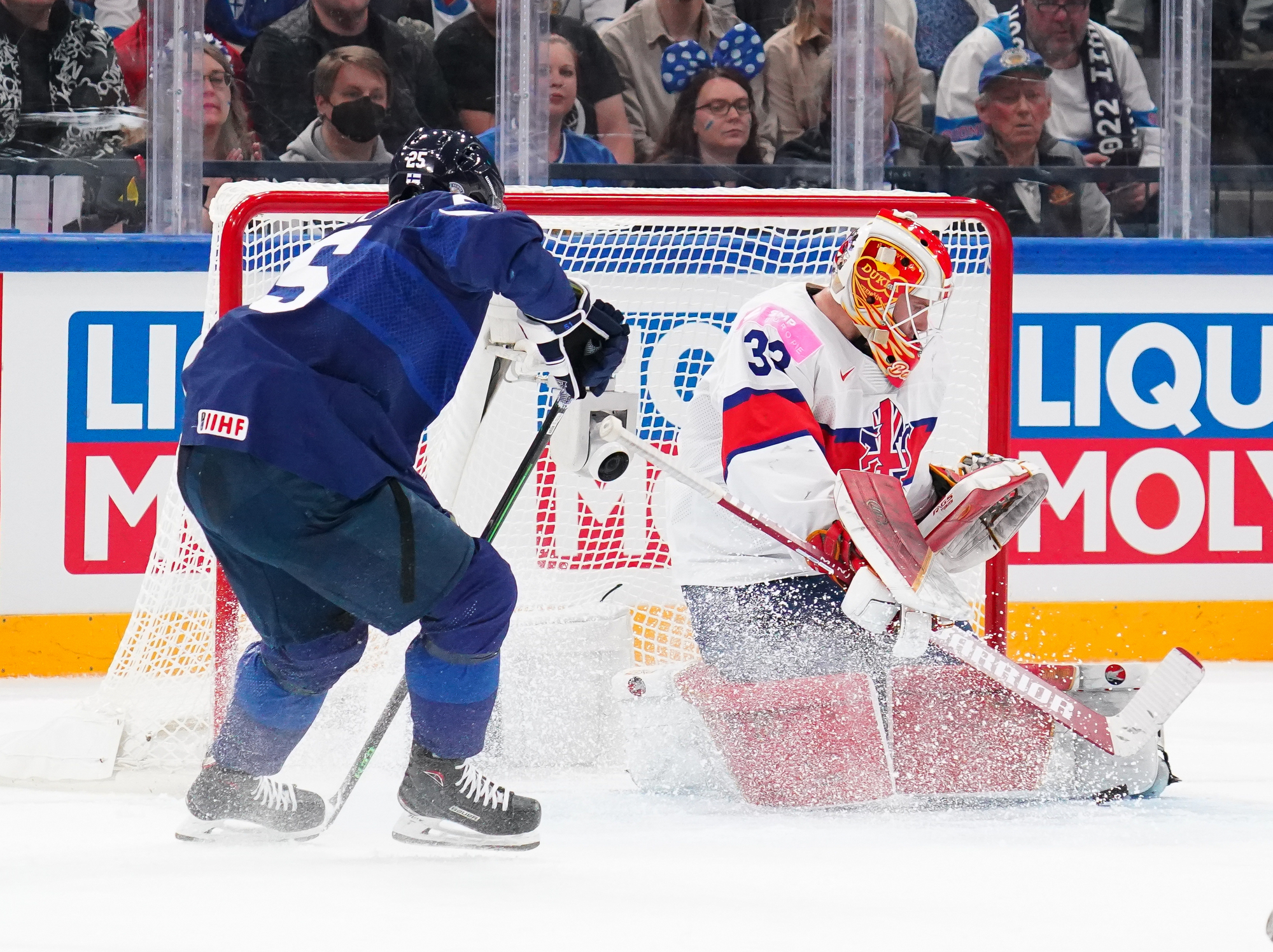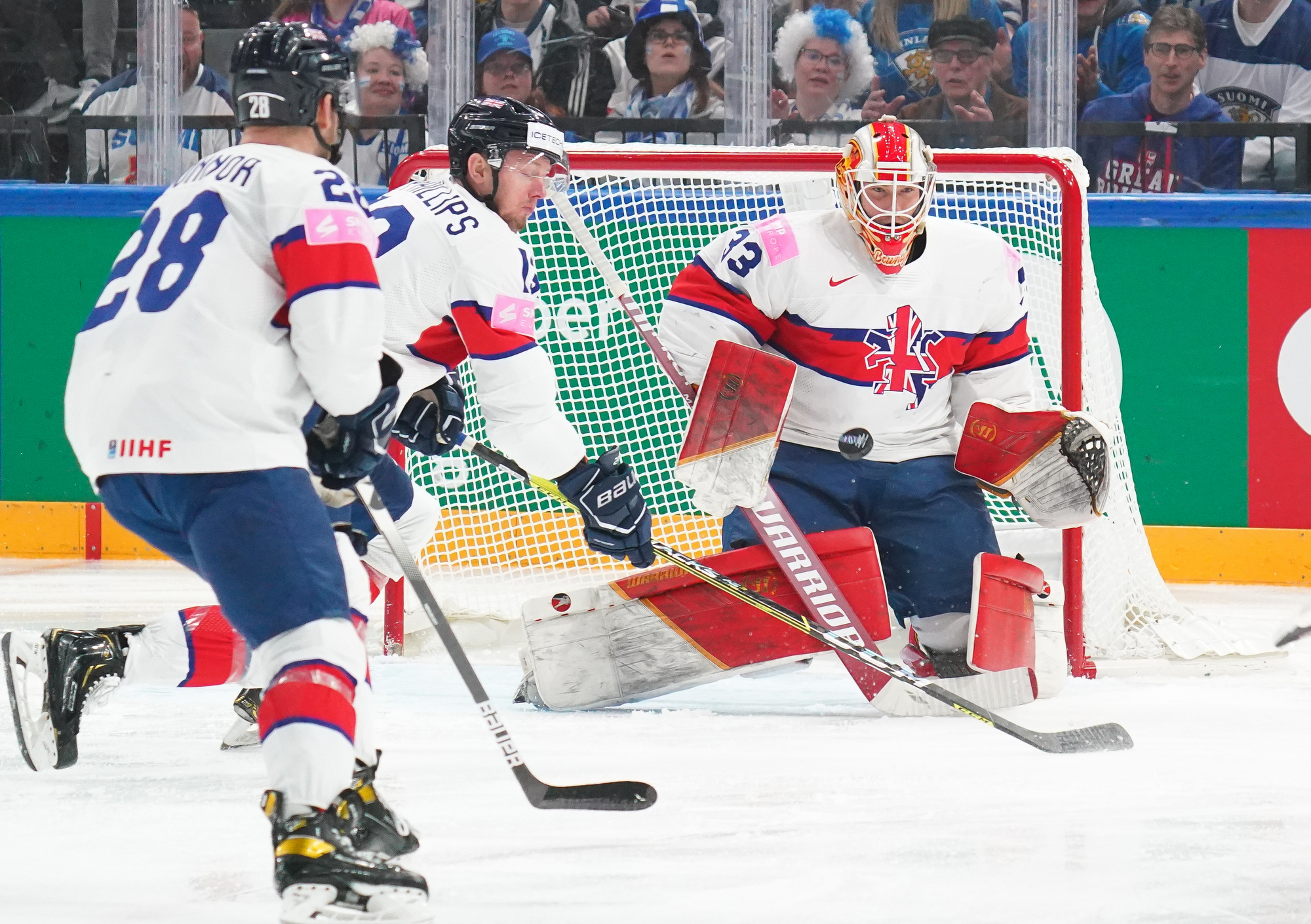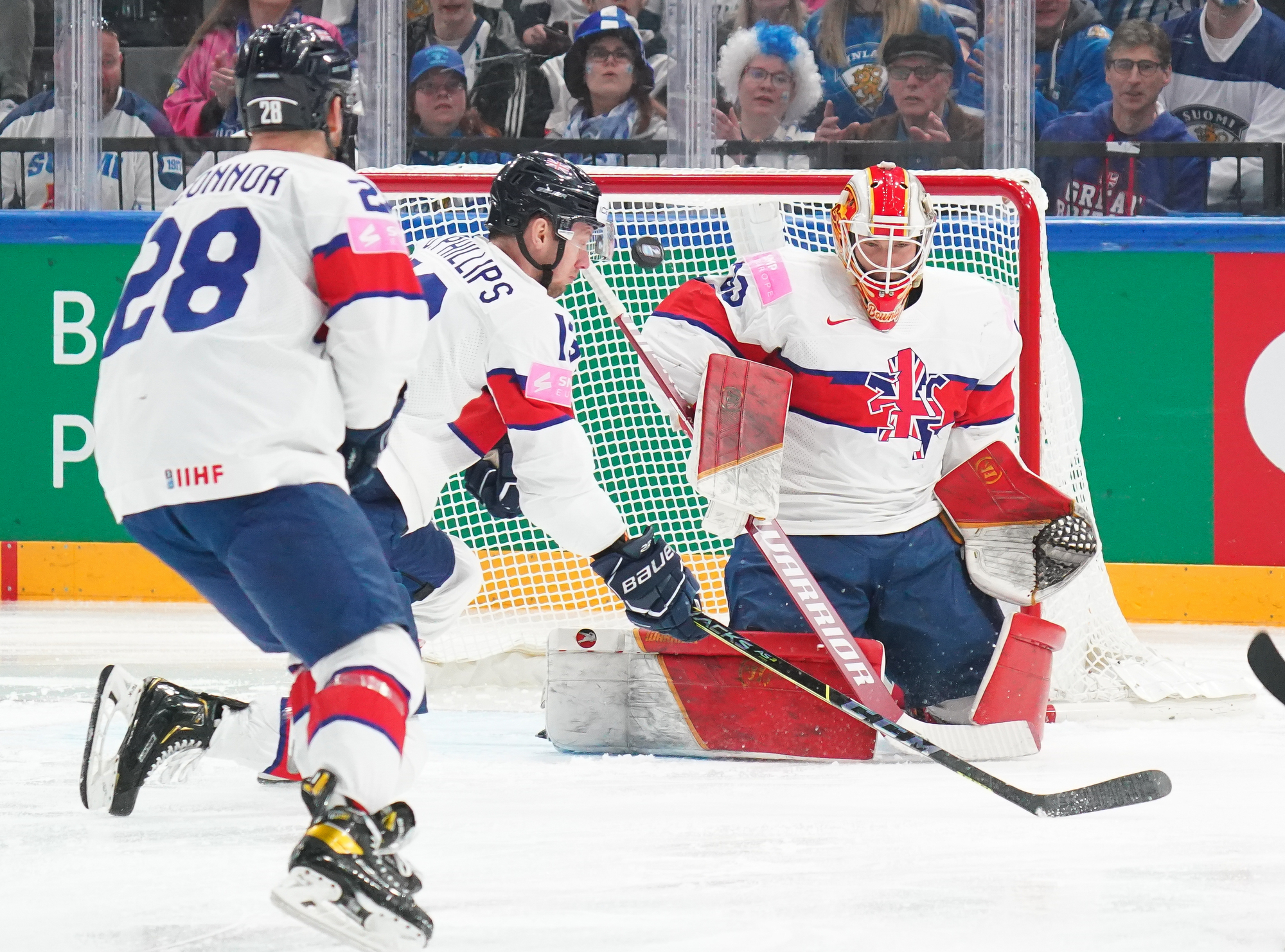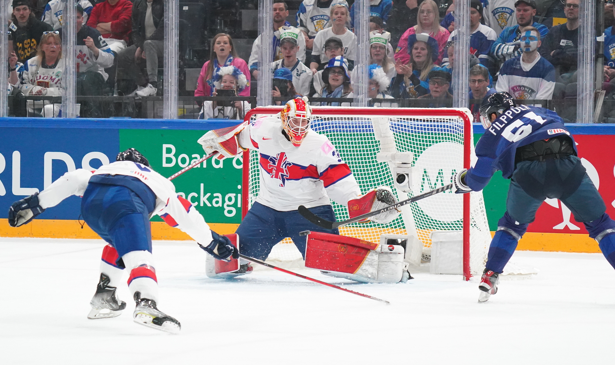 Bowns pääsi töihin aikaisessa vaiheessa ottelua, kun Filppula pääsi Britannian puolustuksen ohi. Hän onnistui torjumaan vielä tällöin, mutta pysyi kiireisenä suomalaisten vaihdellessa kiekkoa nopealla aikataululla.