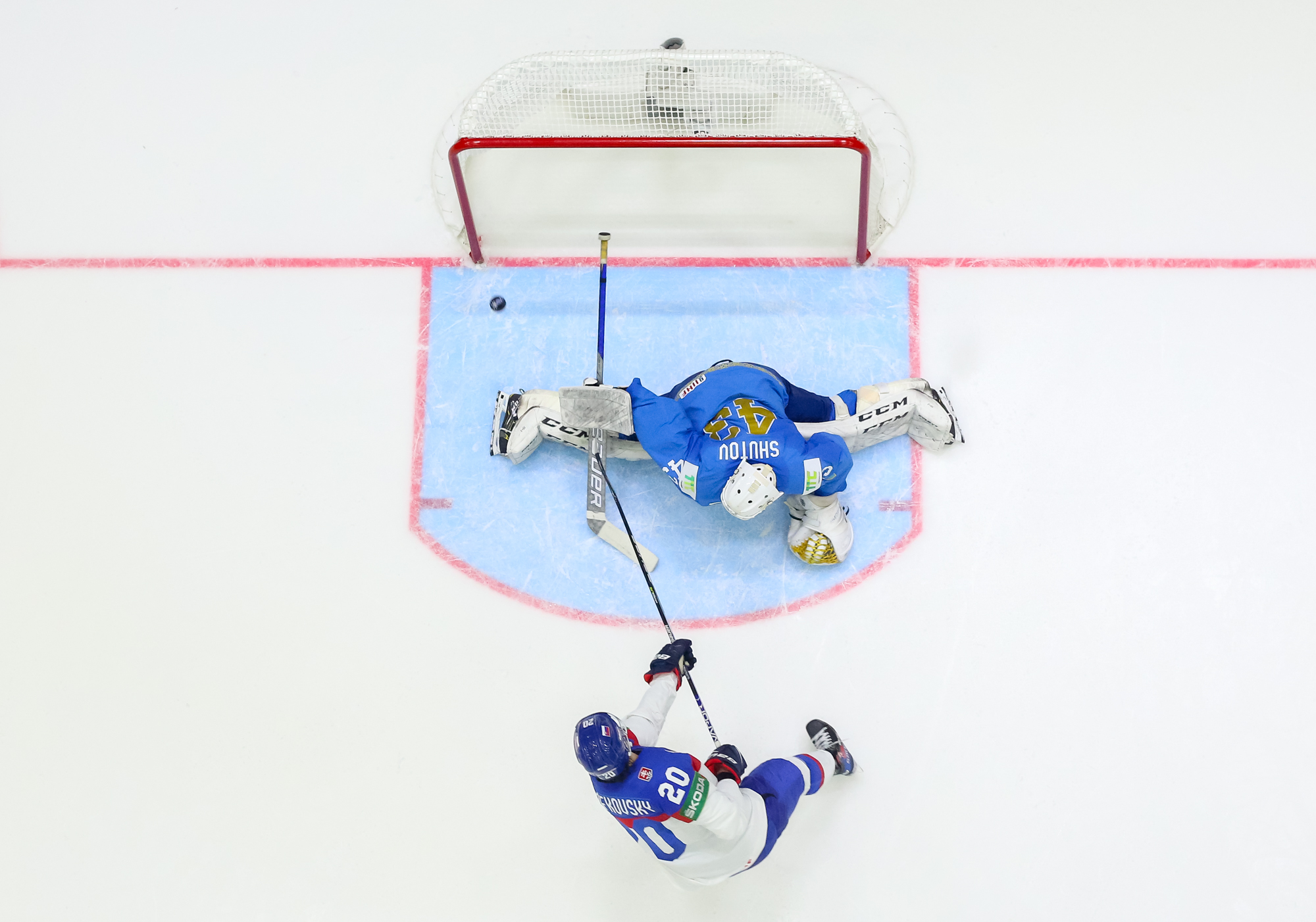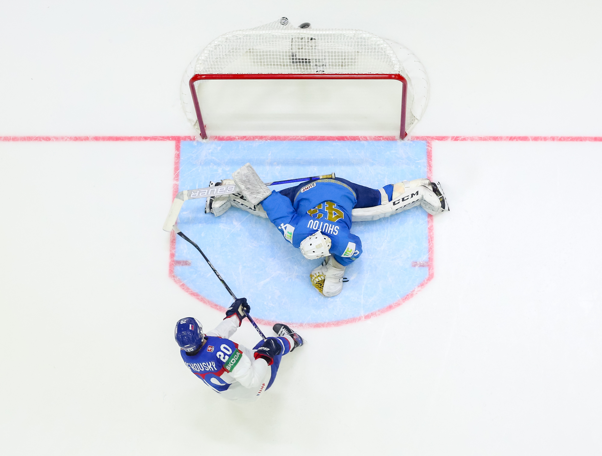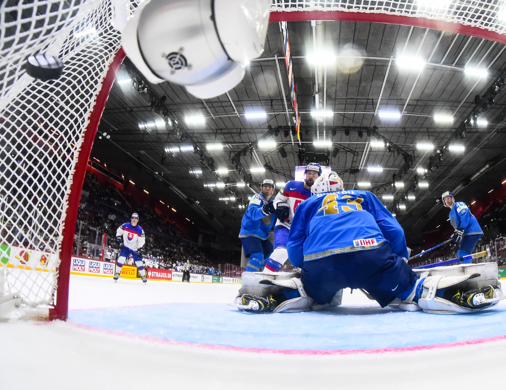 Kazakstanilaiset eivät luovuttaneet. Ajassa 43:32 Panyukovin ohjaus Orekhovin syötöstä pääsi yllättämään Adam Huskan. 4-3 -kavennusta lähemmäs Kazakstan ei enää edes kuudennen kenttäpelaajan turvin päässyt.