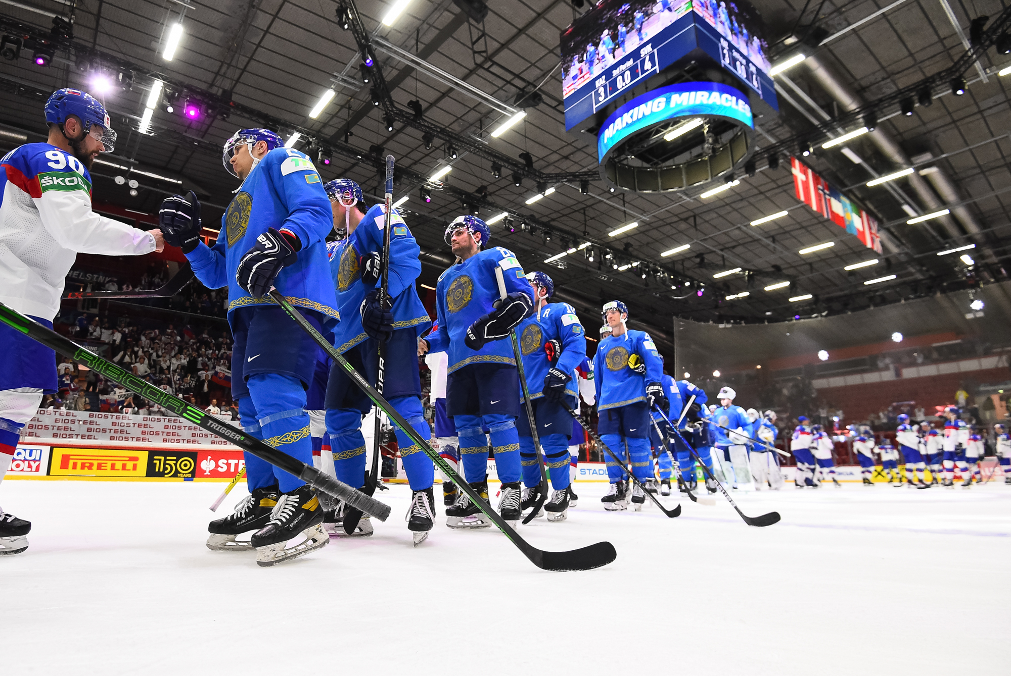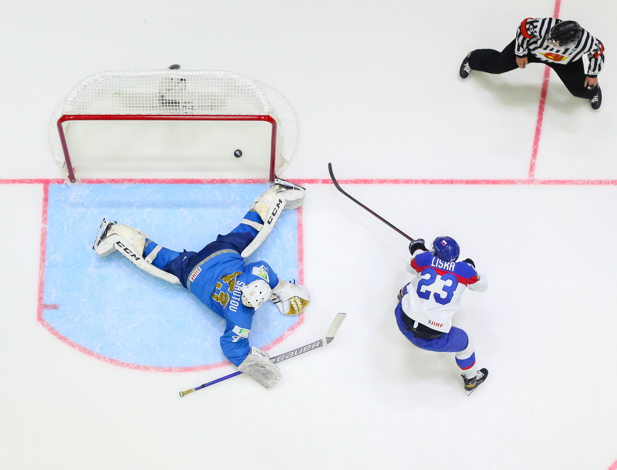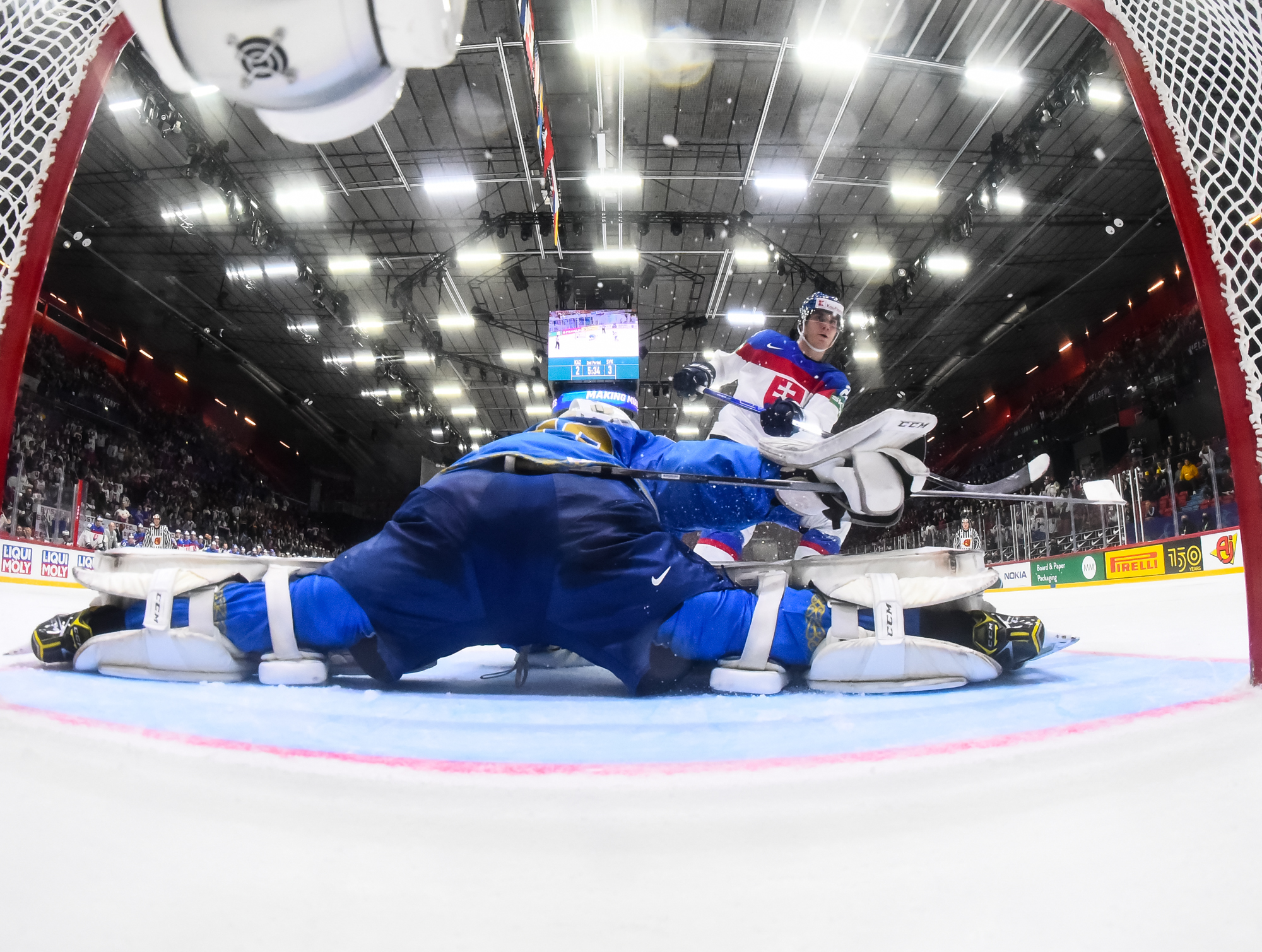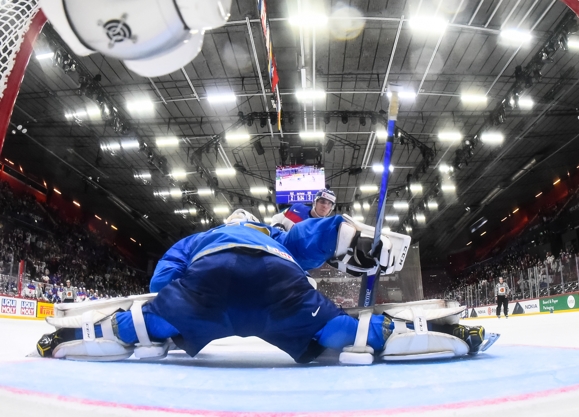 Kazakstanilaiset eivät luovuttaneet. Ajassa 43:32 Panyukovin ohjaus Orekhovin syötöstä pääsi yllättämään Adam Huskan. 4-3 -kavennusta lähemmäs Kazakstan ei enää edes kuudennen kenttäpelaajan turvin päässyt.