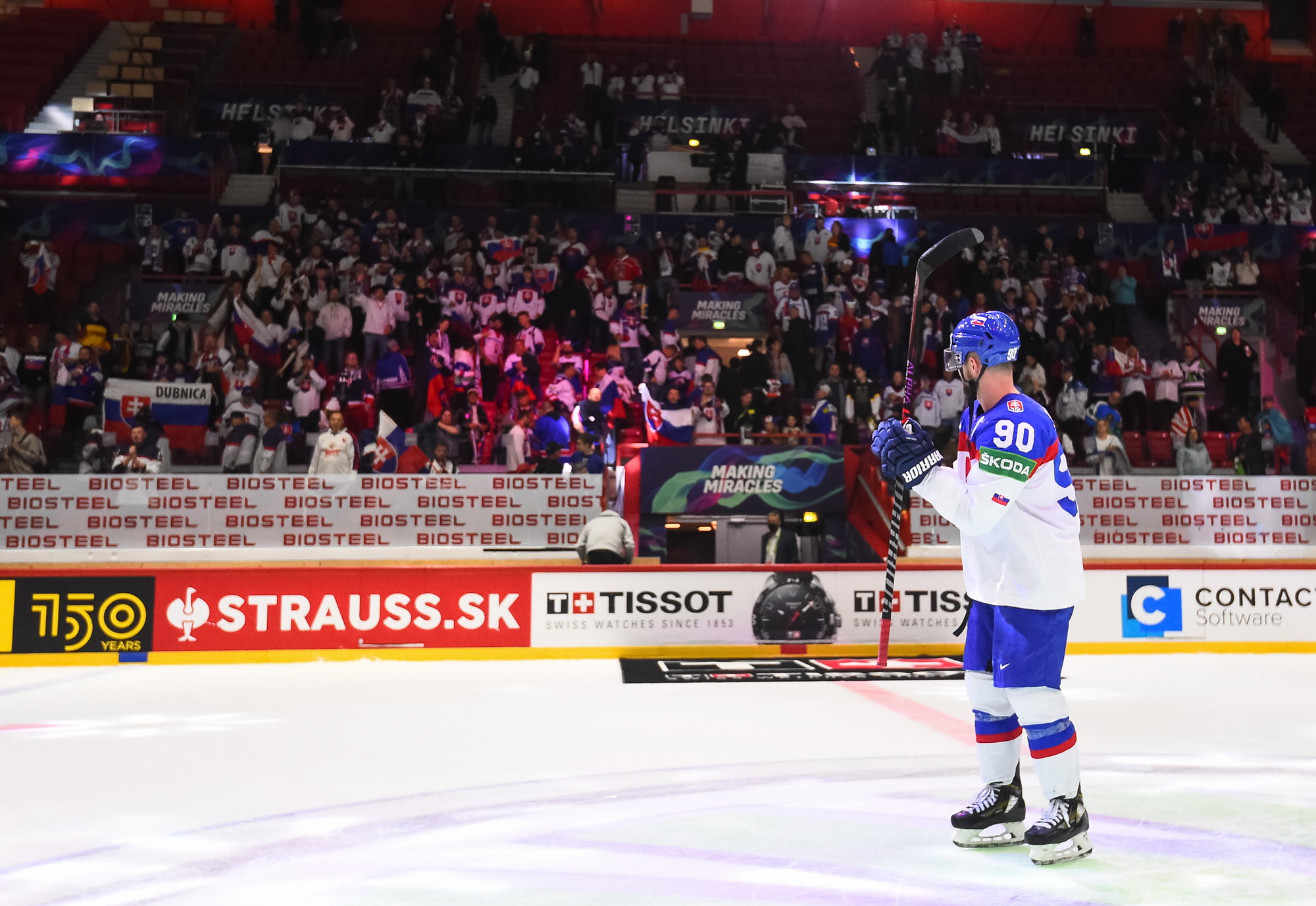 ”Se on ihan mahtavaa”, Slafkovsky sanoi slovakialaisfaneista. ”He sekoavat jo maalipaikasta. On kiva kuulla kannustusta ja kiva että hallissa on enemmän slovakialaisfaneja kuin toisen joukkueen faneja.”