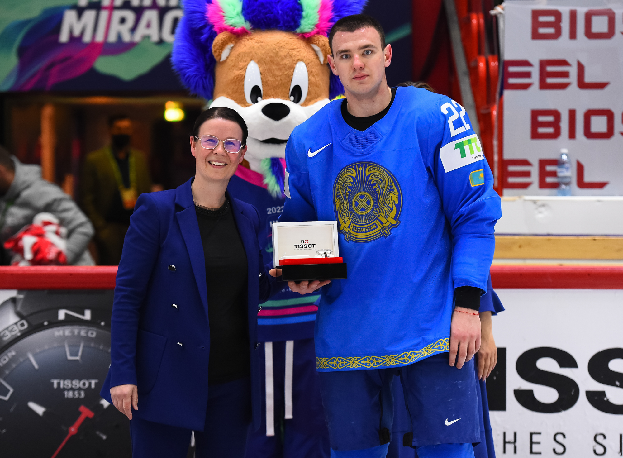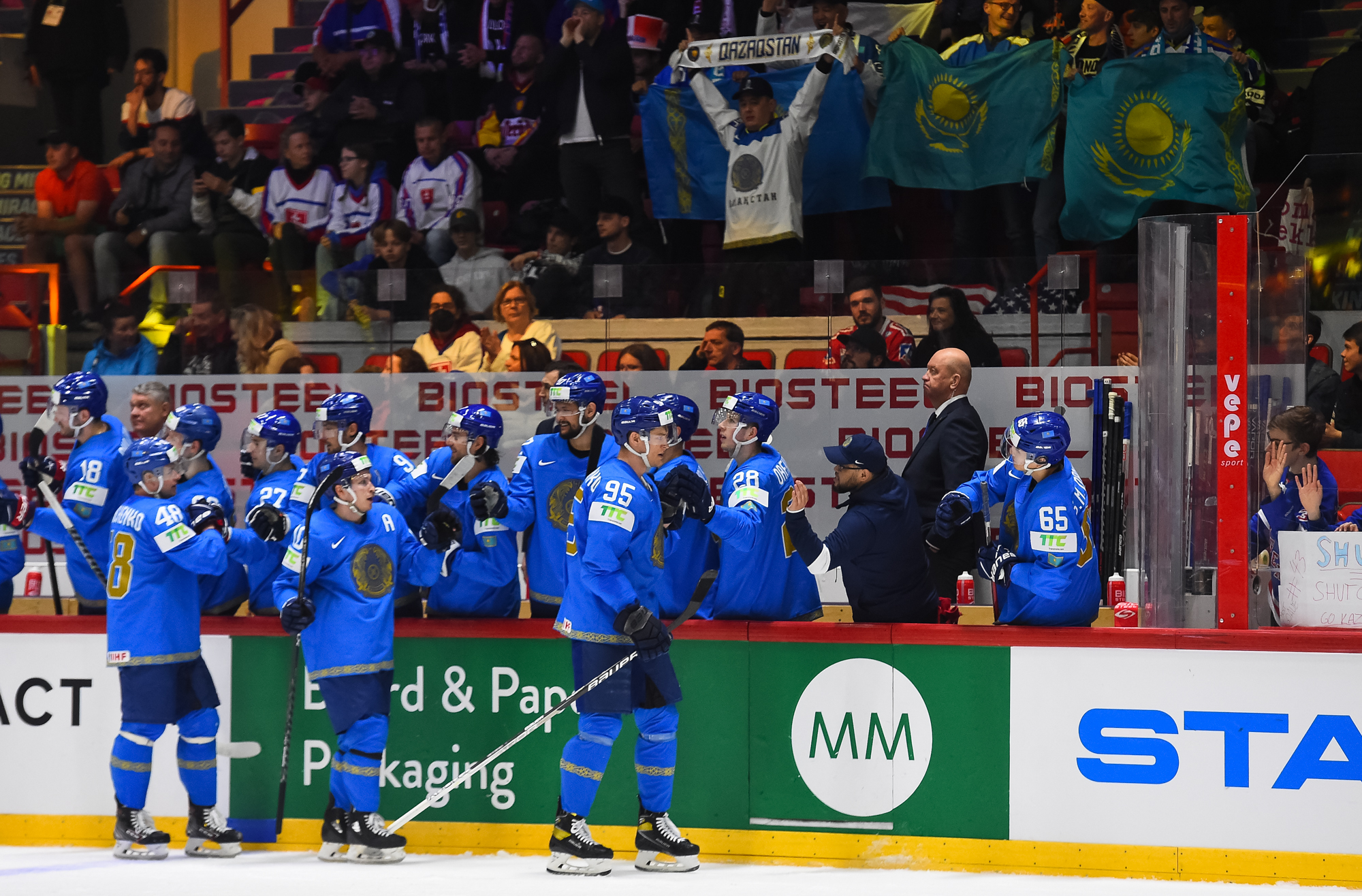 Kazakstanin kapteeni Roman Starchenko hankki tilanteesta turnauksen ensimmäisen tehopisteensä. 36-vuotias konkari pelaa seitsemänsiä arvokisojaan huipputasolla. Hänen arvokisauransa alkoi vuonna 2006 Latviassa.