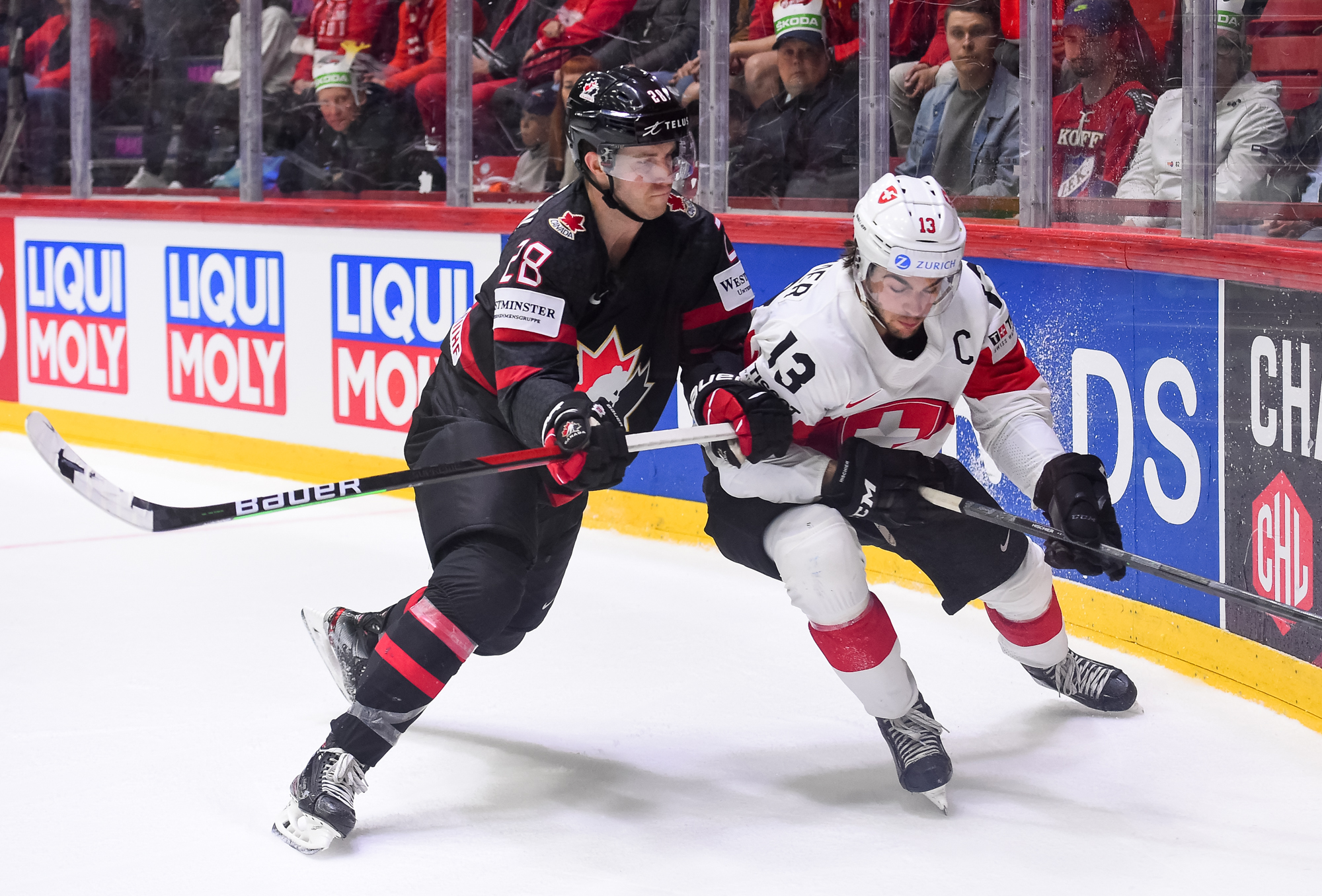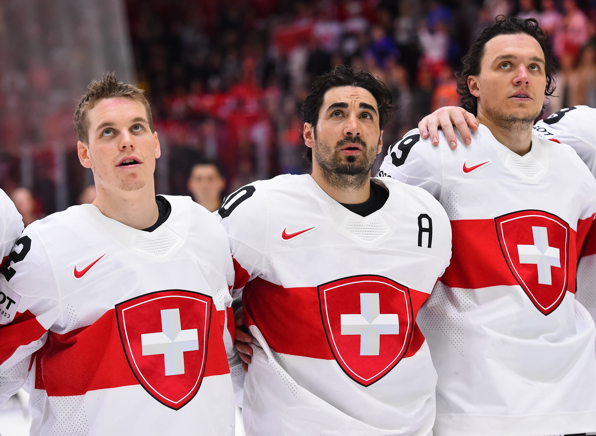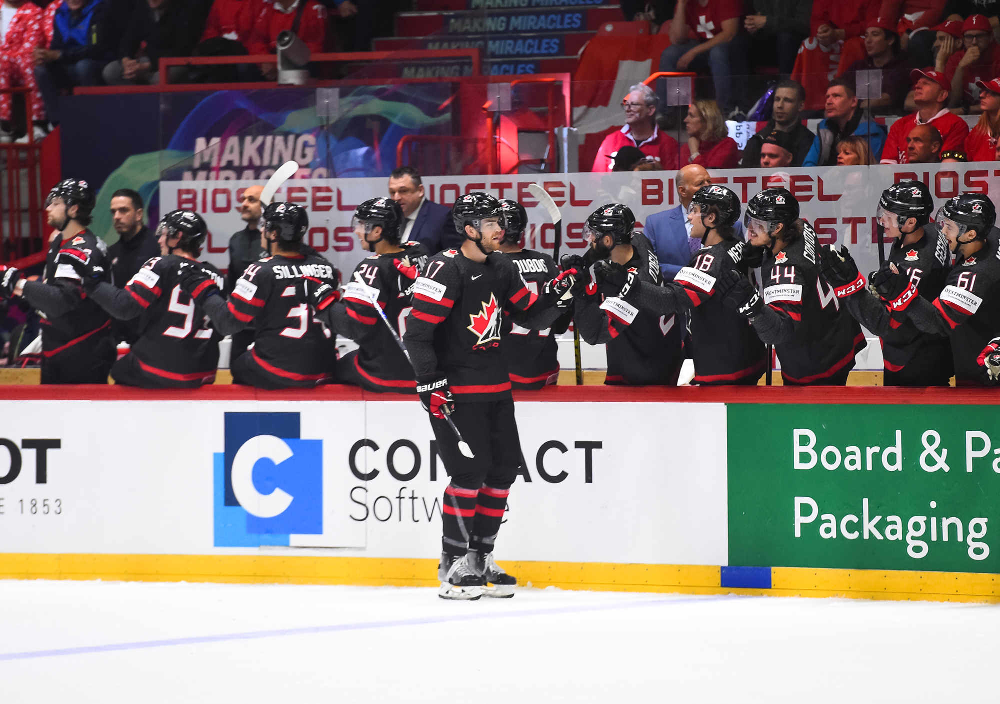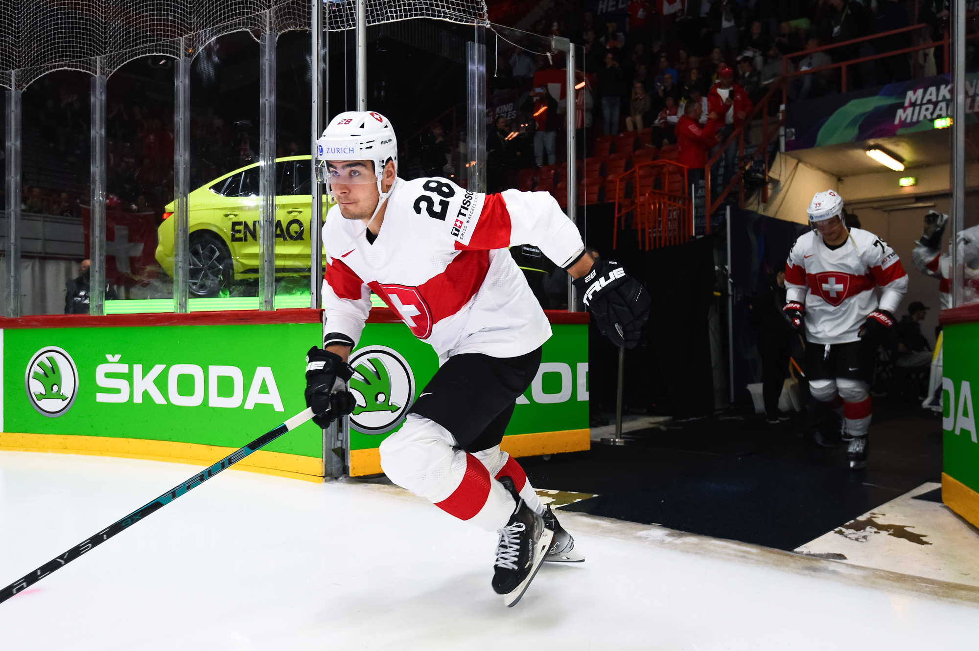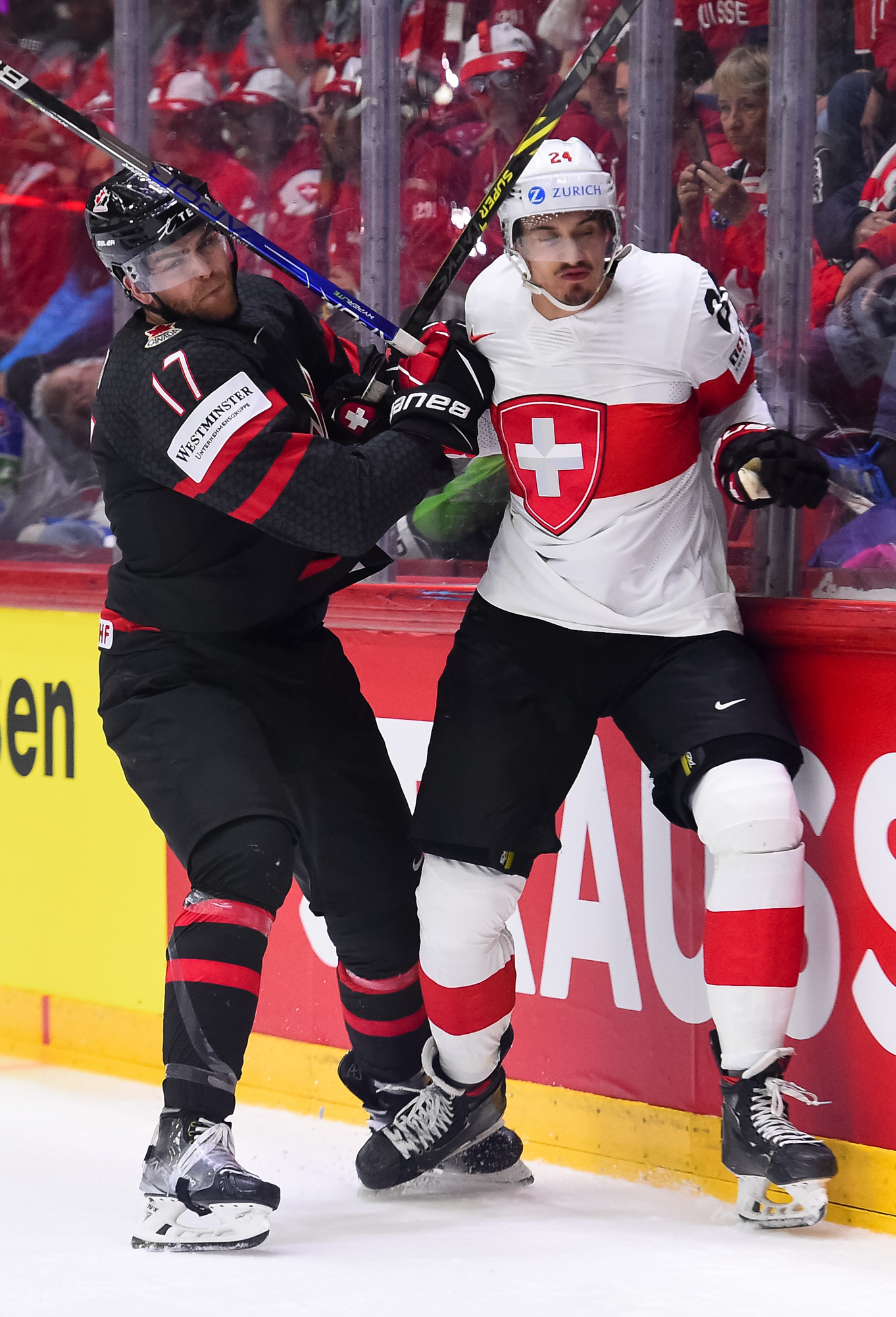 Sveitsiläiset luulivat jo avanneen maalitilinsä, mutta videotarkistuksen perusteella maali hylättiin Nico Hischierin estettyä Logan Thompsonia torjumasta.