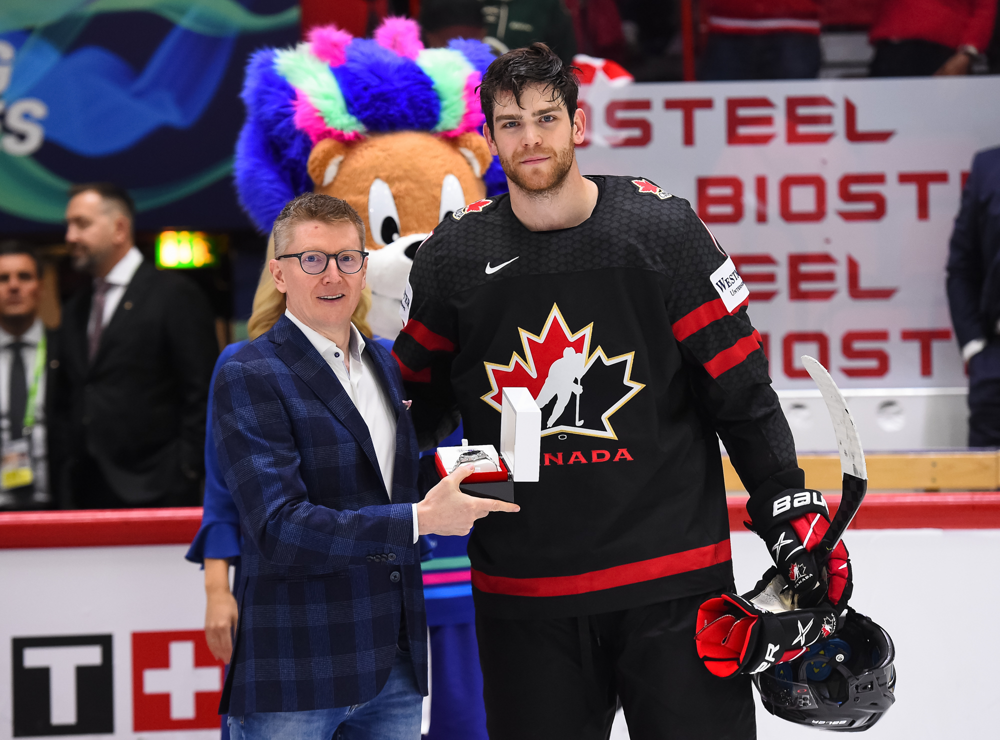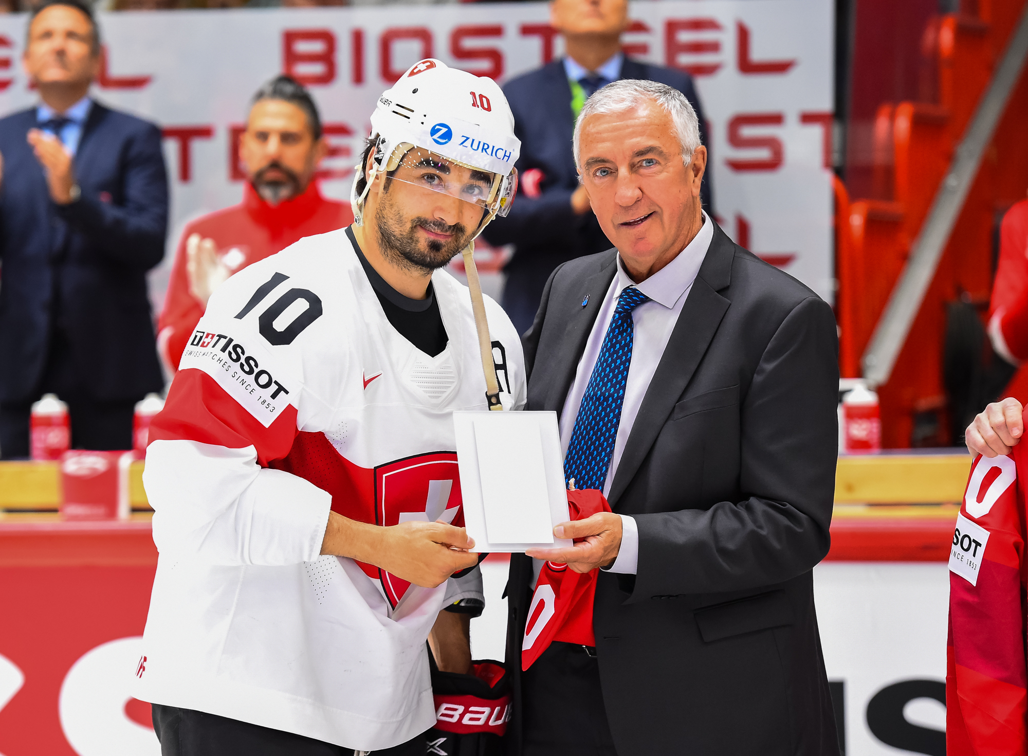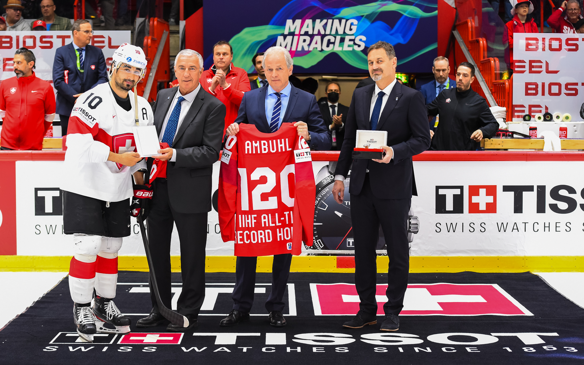 Tämän päivän ottelu oli Sveitsin pitkäaikaiselle varakapteeni Andres Ambülille järjestyksessään 120. A-maaottelu ja samalla kaikkien aikojen ennätys IIHF:n alaisissa sarjoissa. Ambühlin saavutus huomioitiin sekä videolla että juhlallisuuksilla ennen ottelun alkamista. Paikalla oli myös IIHF:n puheenjohtaja Luc Tardif.