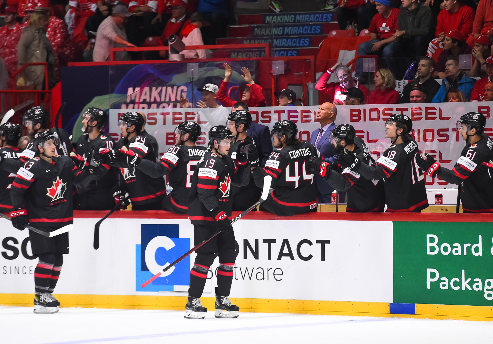 Kanada meni alivoimamaalilla 2-1 johtoon ajassa 14:11. Adam Lowry keräsi kiekonmenetyksestä pelivälineen mukaansa ja vei kiekon sveitsiläisvahti Leonardo Genonin selän taakse.