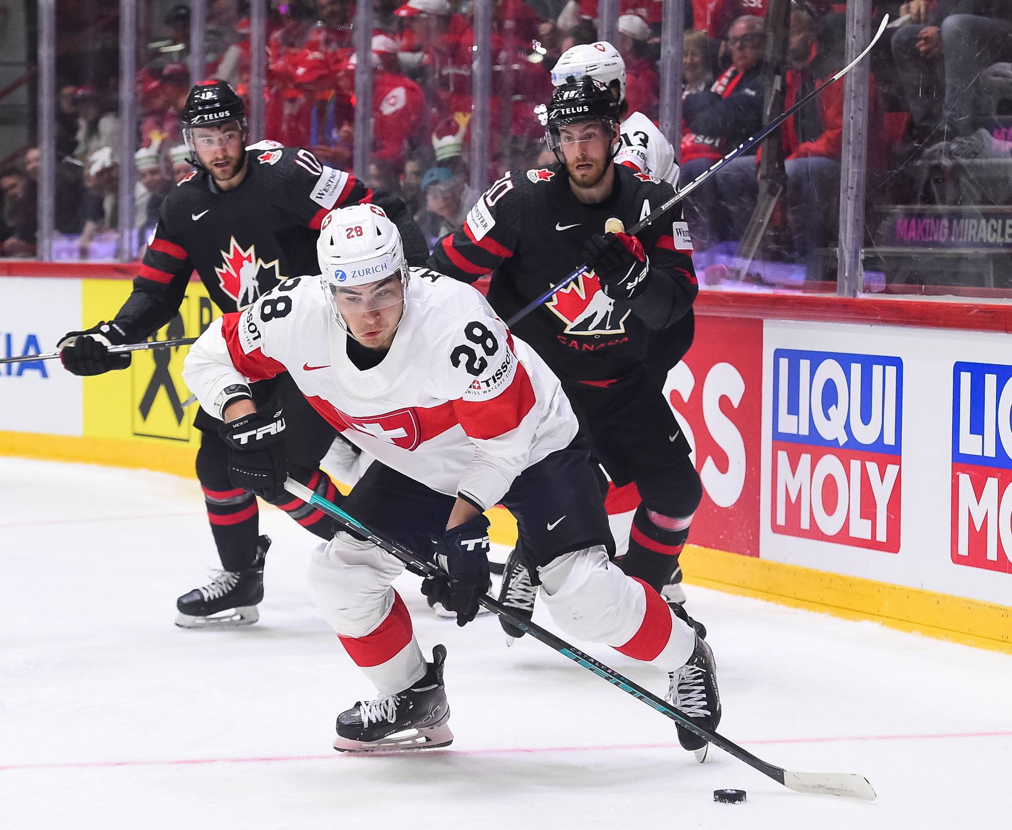 Kanadalle tarjoutui mahdollisuus kaventaa kahden ylivoiman aikana, mutta Sveitsi onnistui alivoimassaan erinomaisesti. Meier viimeisteli loppulukemat 3-6 ajassa 58:01.