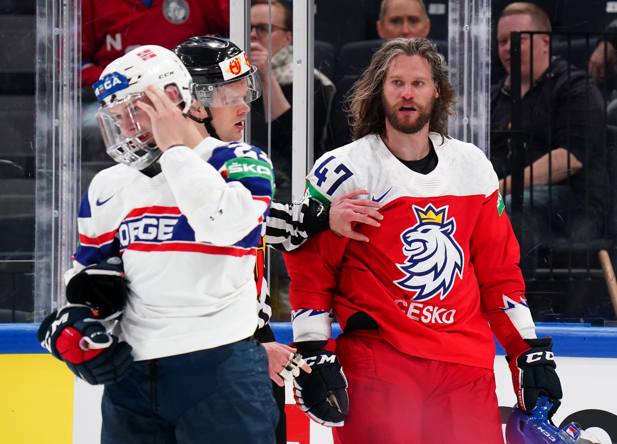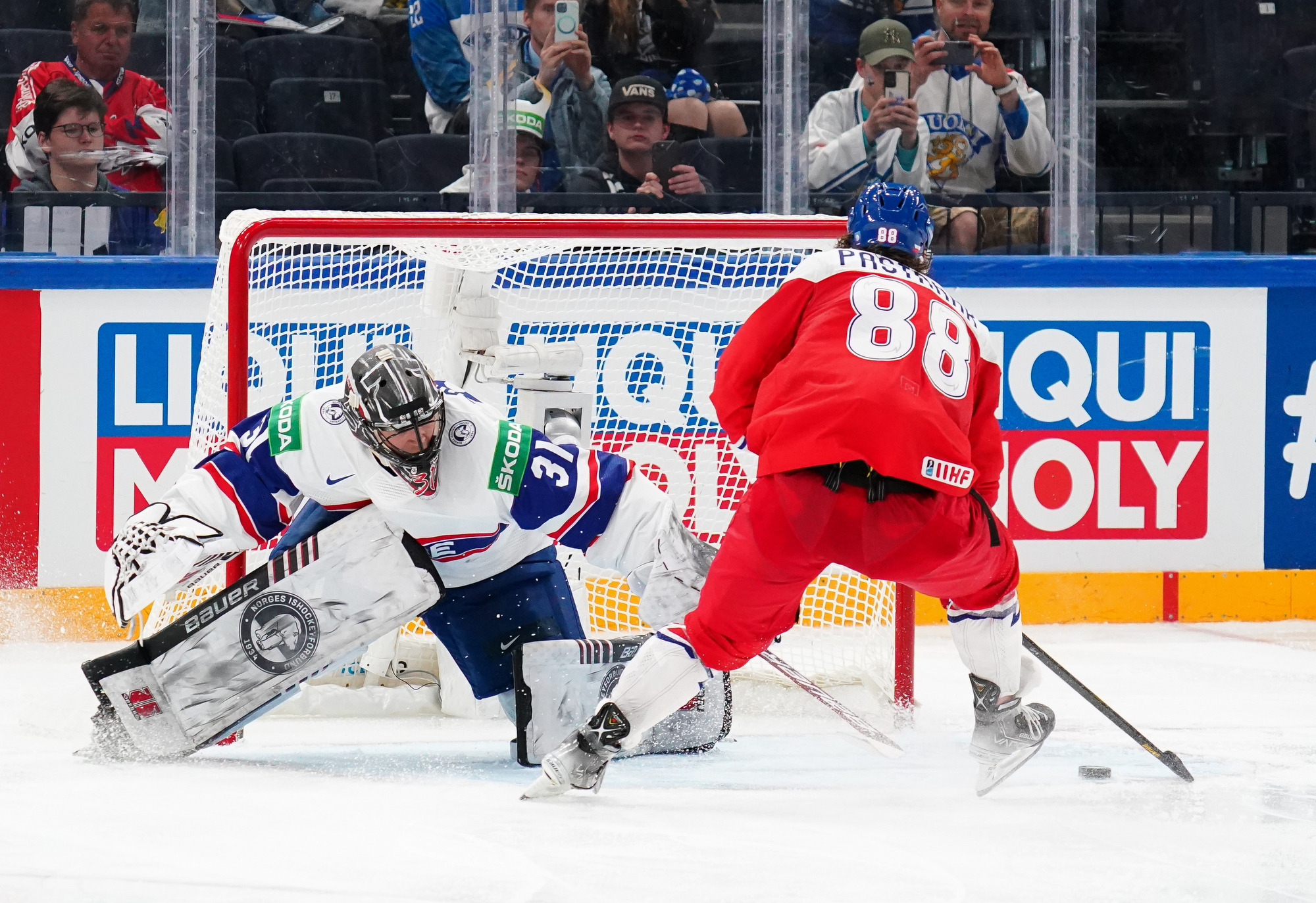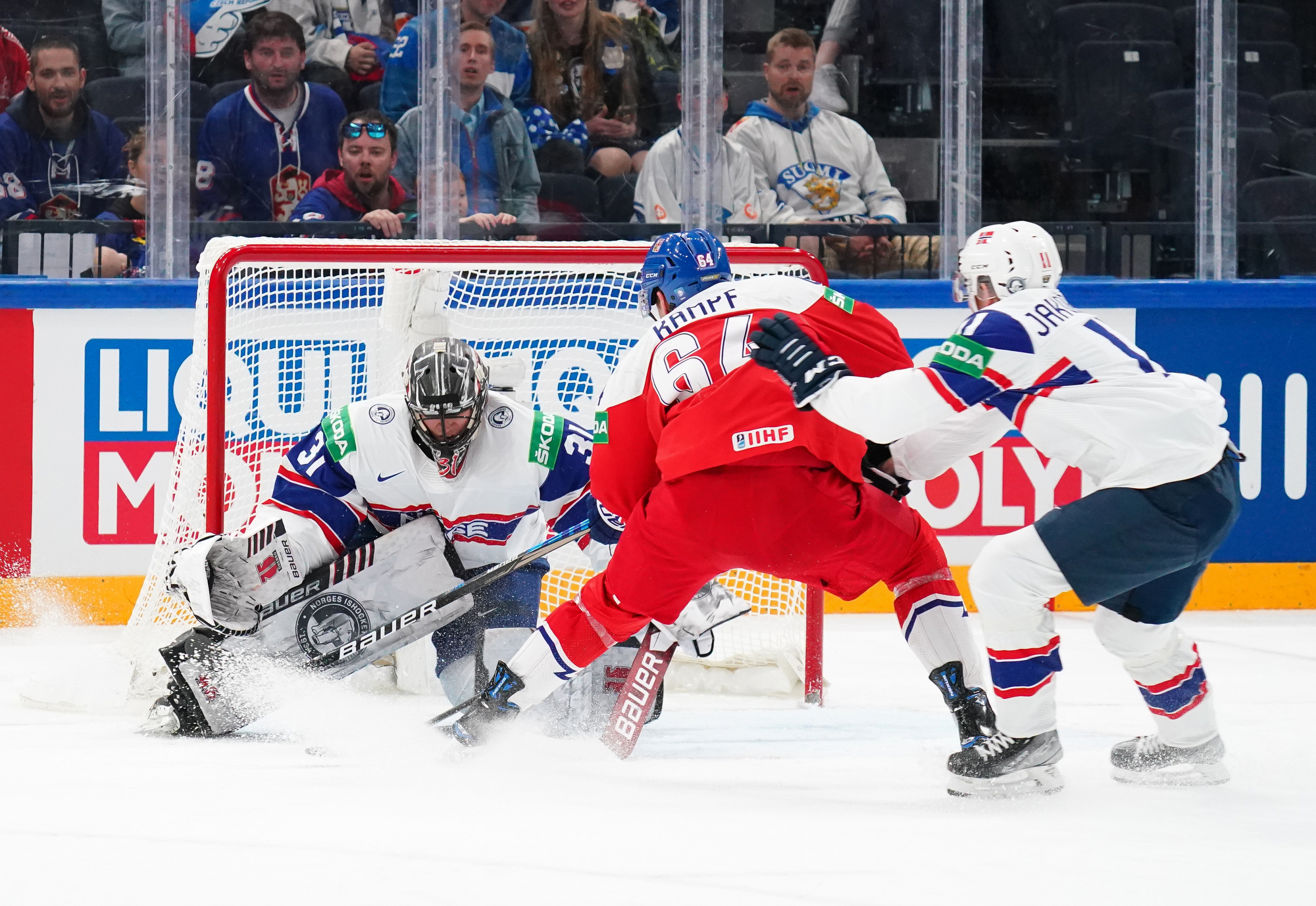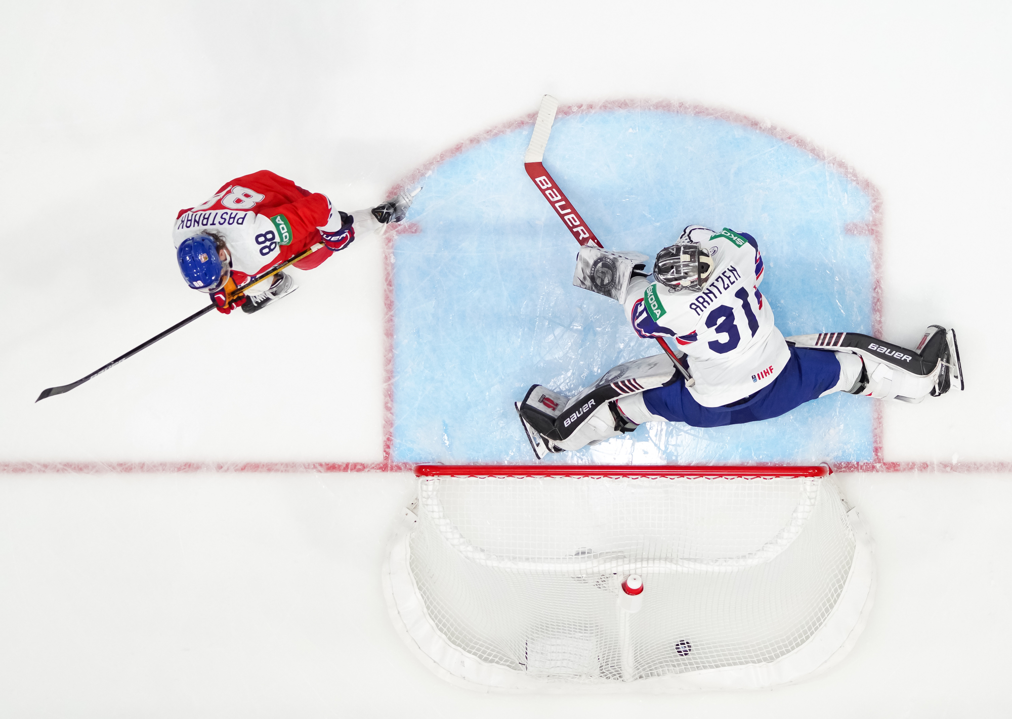 David Pastrnak teki kaksi maalia; ensimmäisessä erässä ylivoimalla ja kolmannessa erässä rangaistuslaukauksesta ja johdatti Tshekin 4-1 voittoon Norjasta 2022 Jääkiekon MM-kisojen B-”lohkossa.