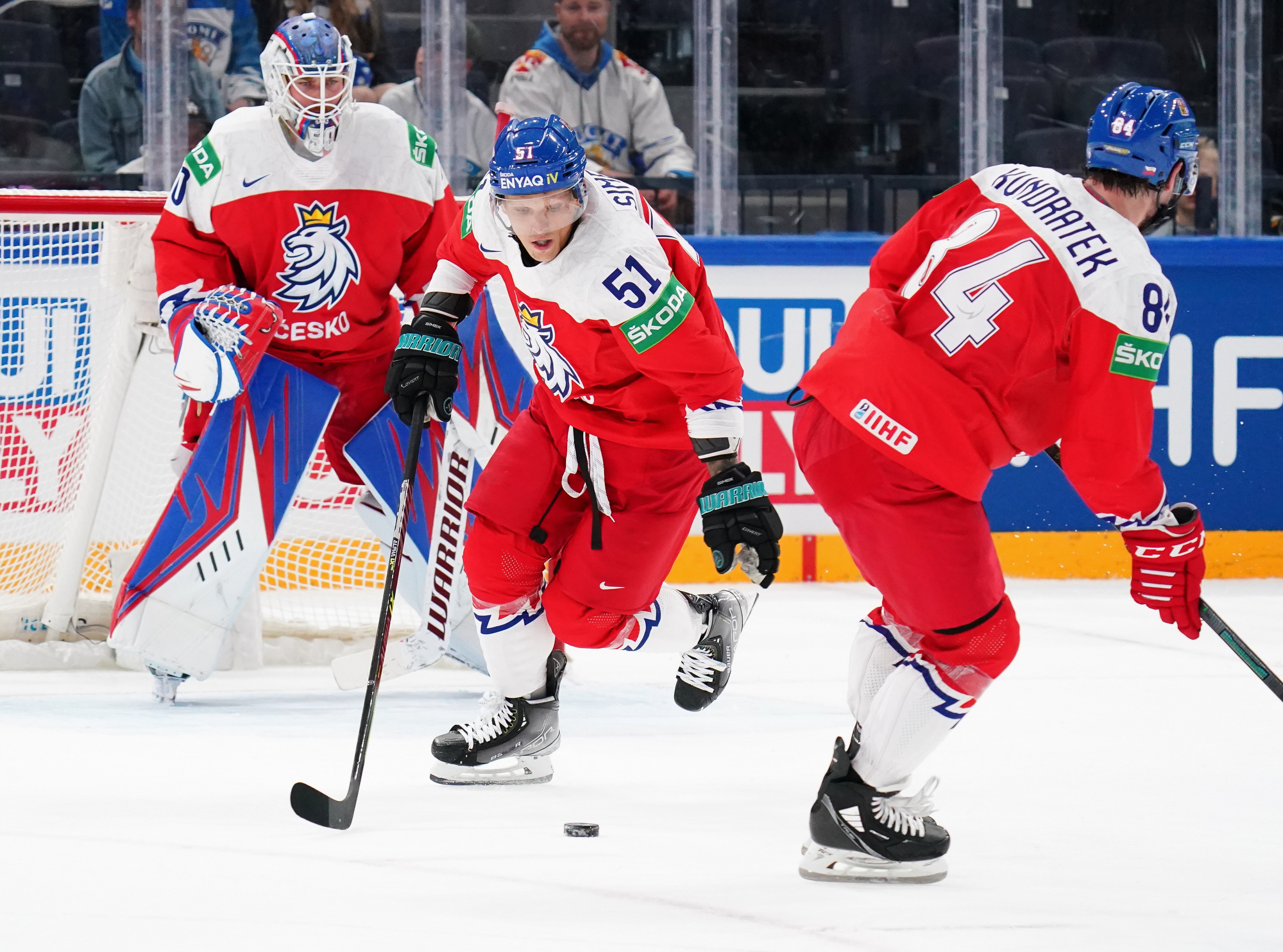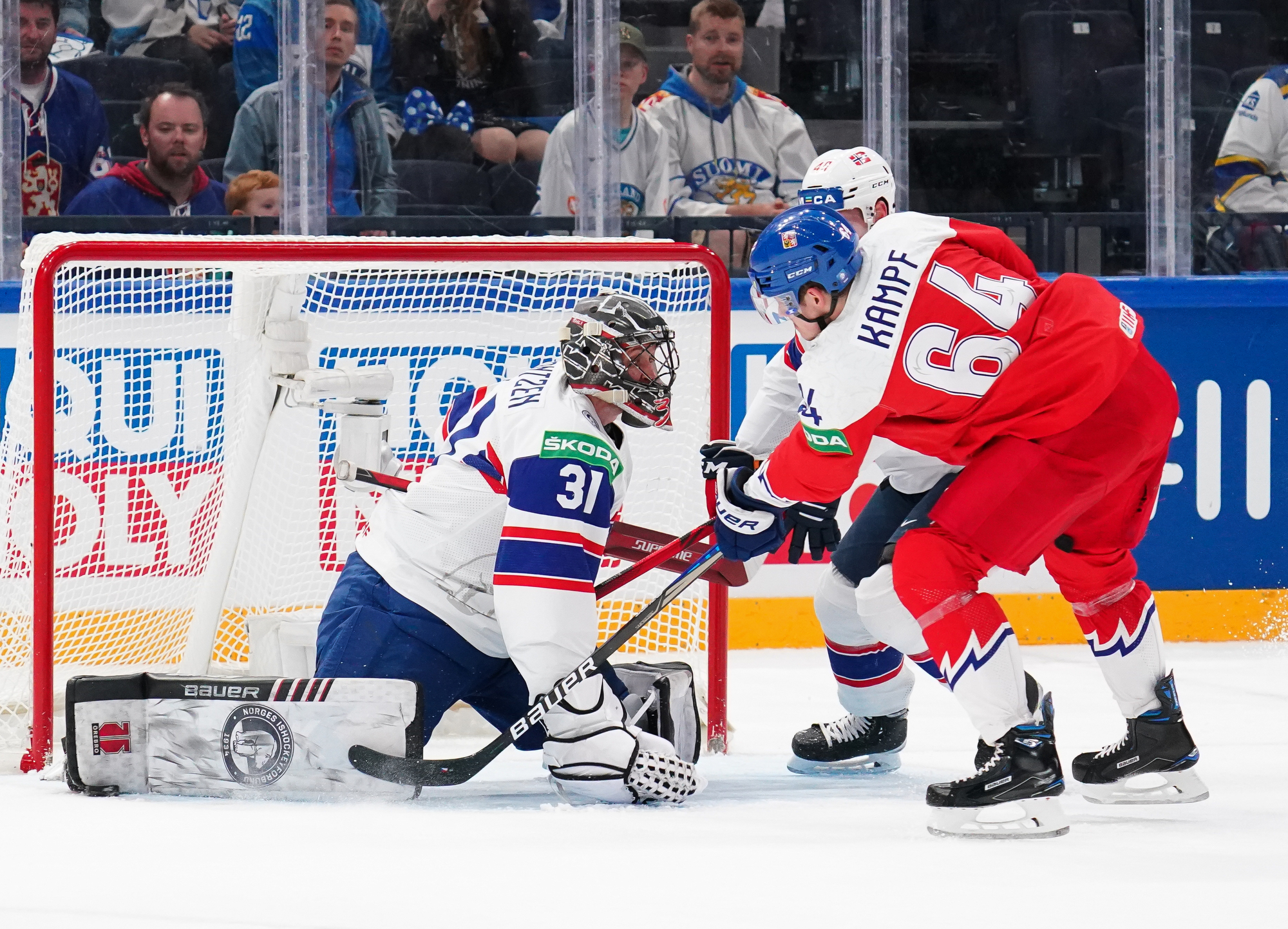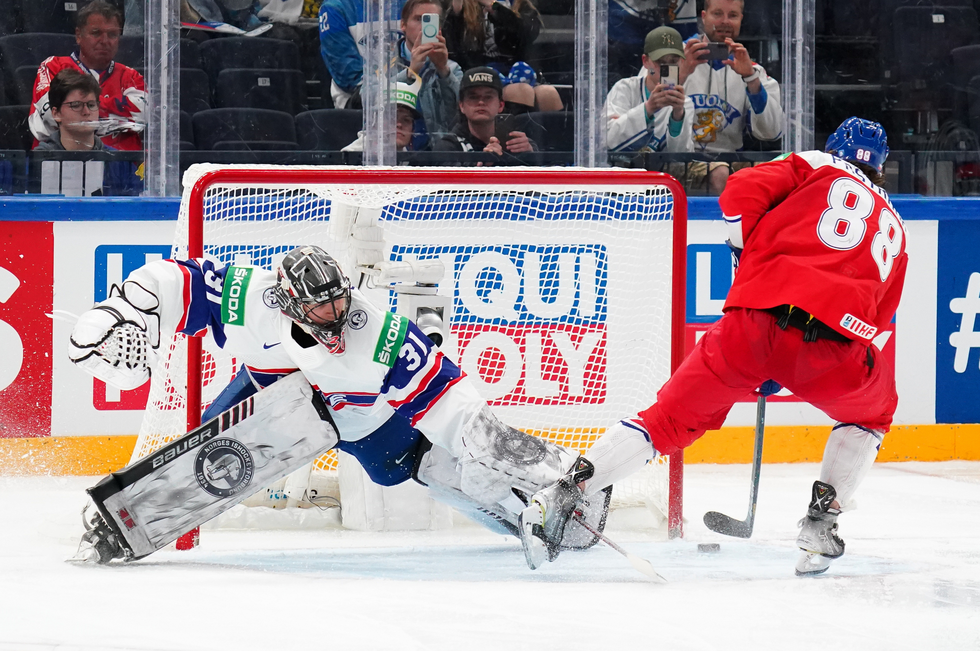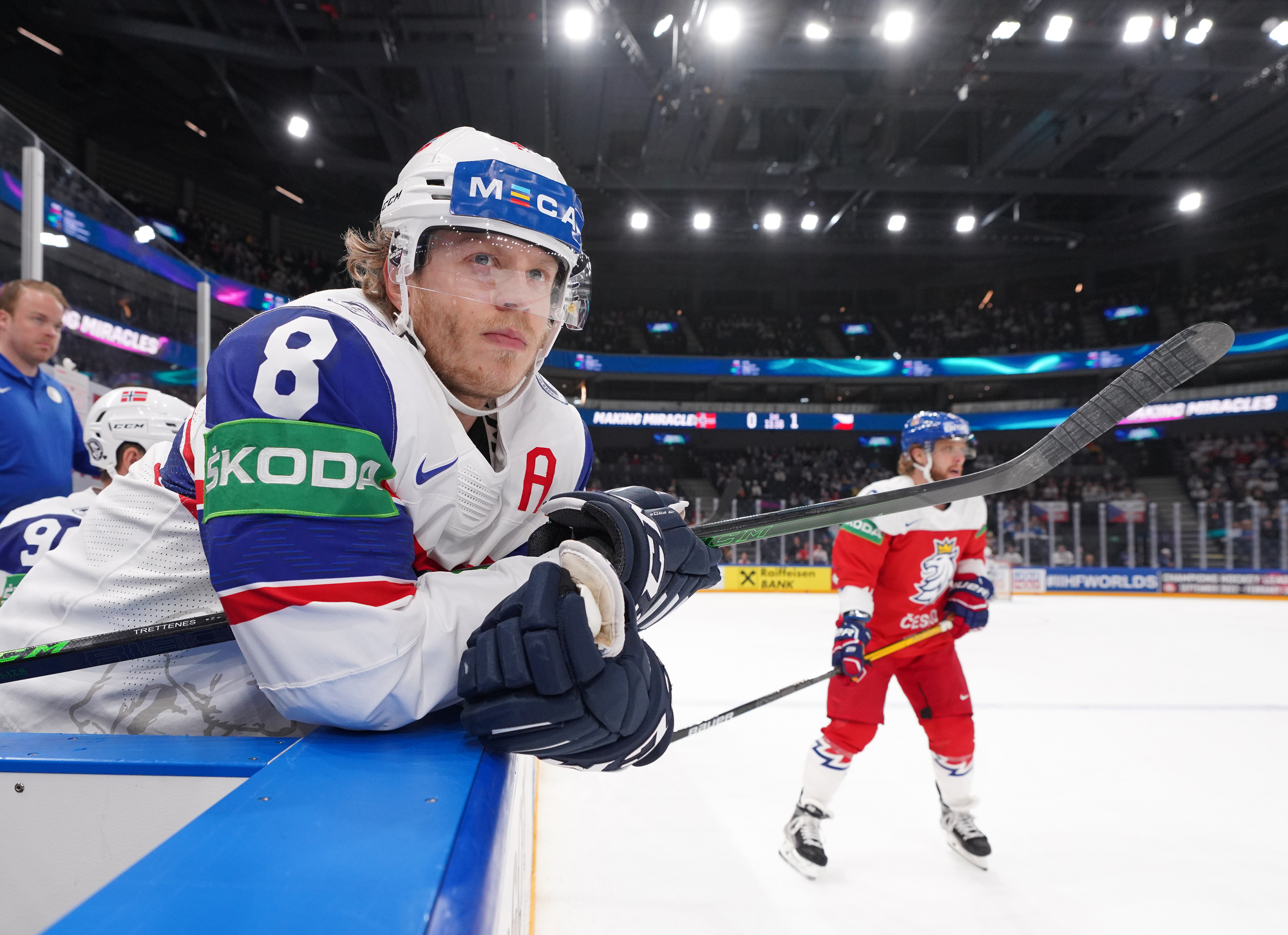David Pastrnak teki kaksi maalia; ensimmäisessä erässä ylivoimalla ja kolmannessa erässä rangaistuslaukauksesta ja johdatti Tshekin 4-1 voittoon Norjasta 2022 Jääkiekon MM-kisojen B-”lohkossa.