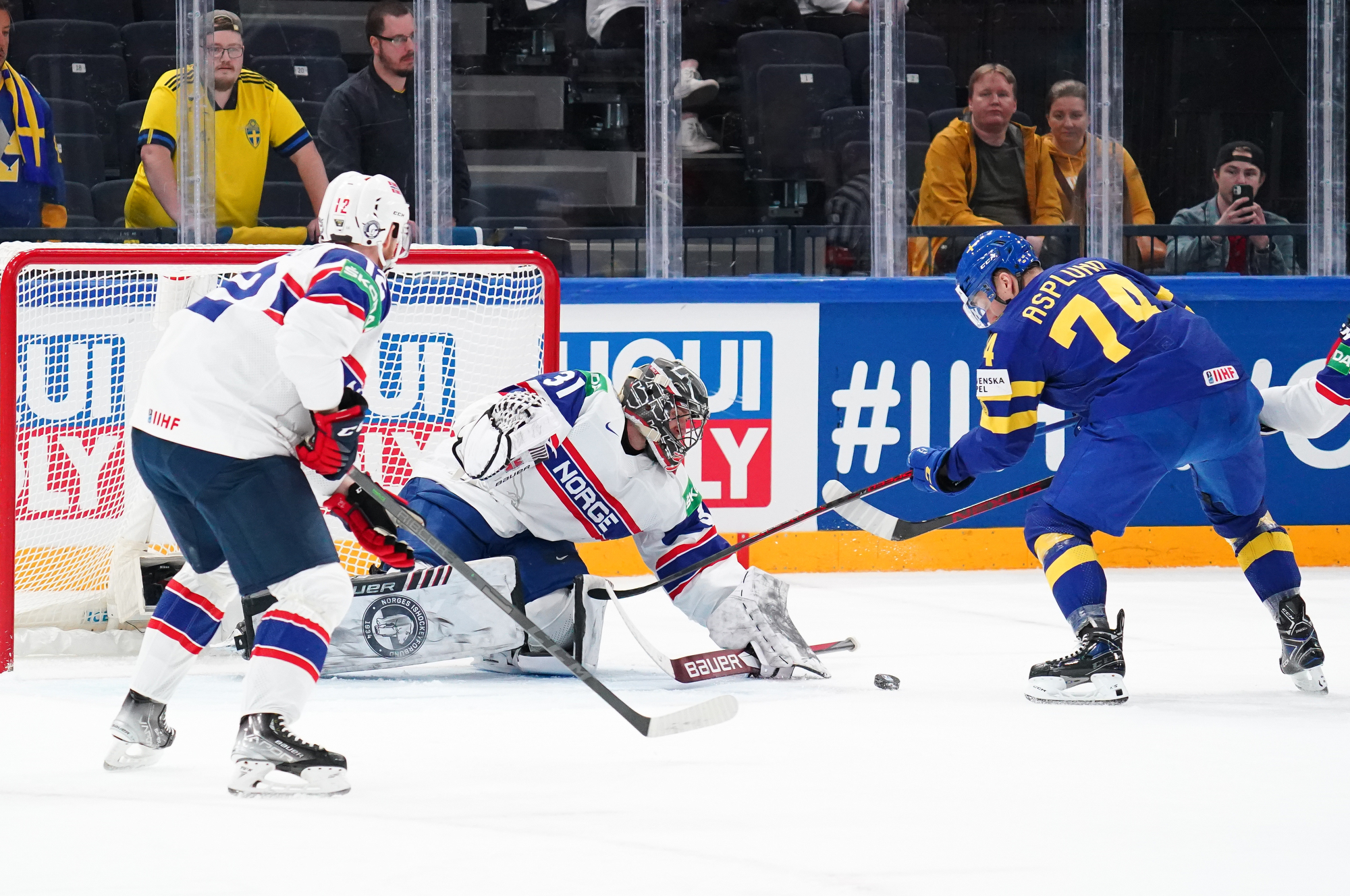 Kaksi maalia 64 sekunnissa laittoi Norjan ikävään tilanteeseen. Seuraava tilanne syntyi vain muutamaa minuuttia myöhemmin, kun Rasmus Asplund vei Ruotsin 4-0 johtoon ottelun toisessa erässä ajassa 31.30.
