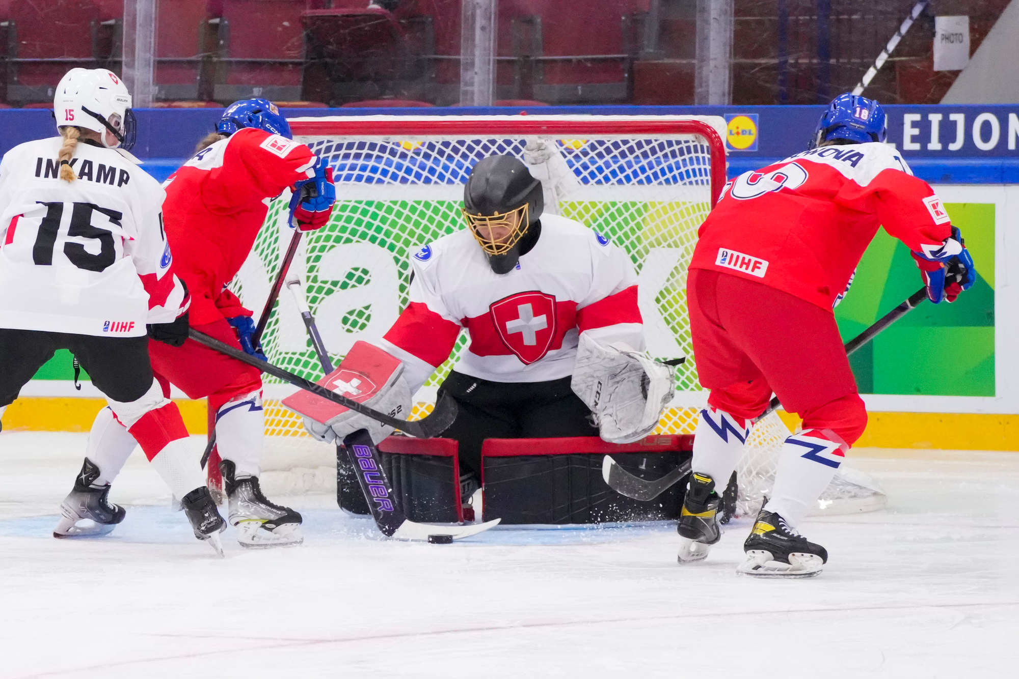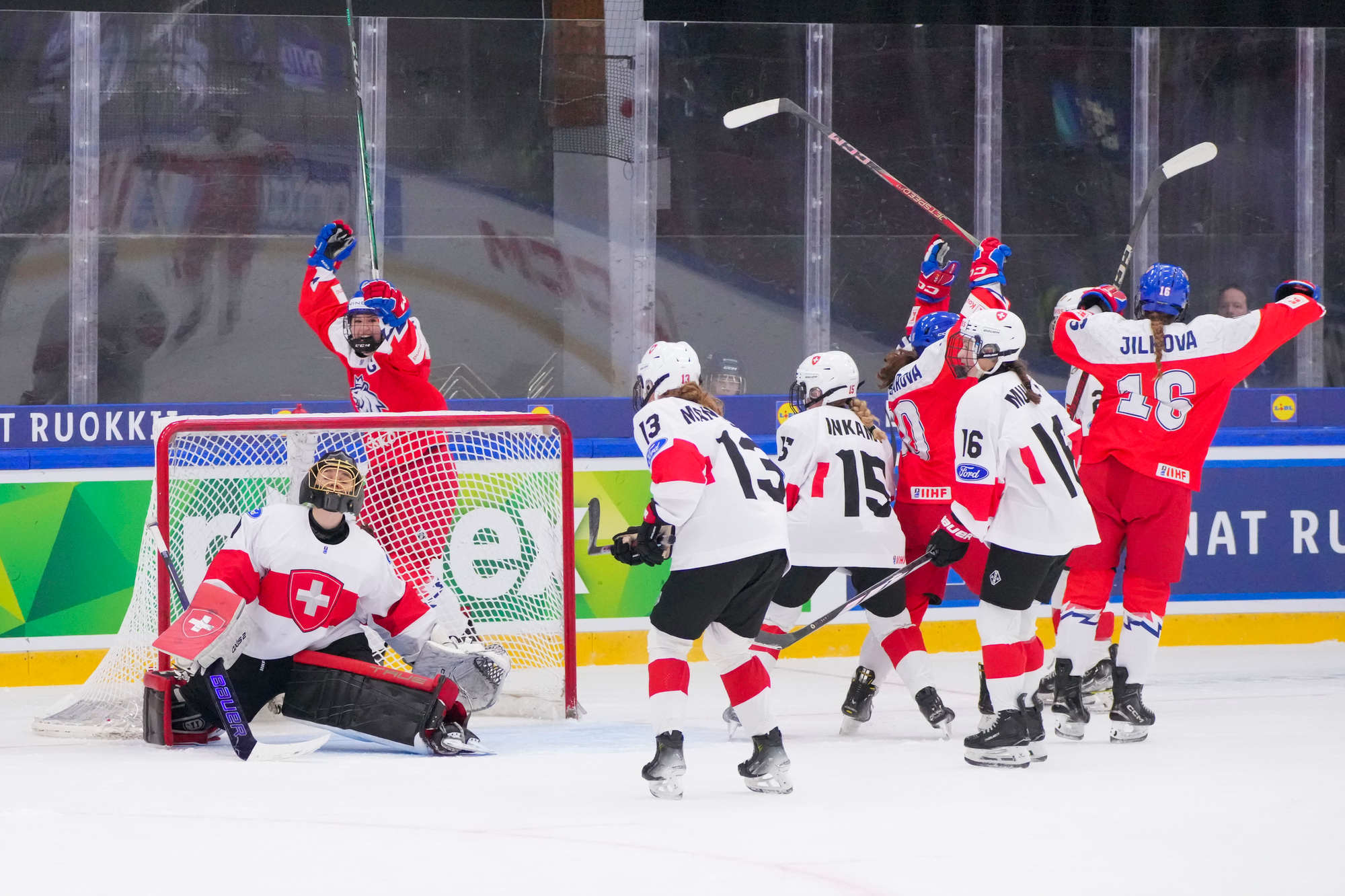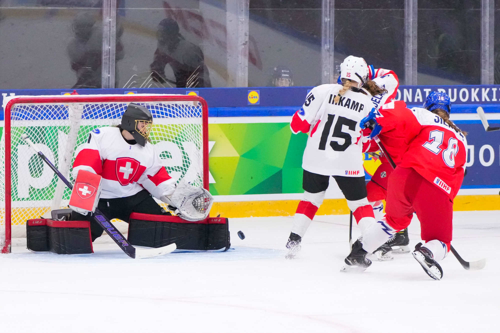 Sonja Inkamp vastasi Sveitsin maalista, Viktoria Jelkova Tshekin. Suurin sankari oli Tshekin Julie Jebouskova, joka teki jatkoajan voittomaalin Adela Pankovan esityöstä.