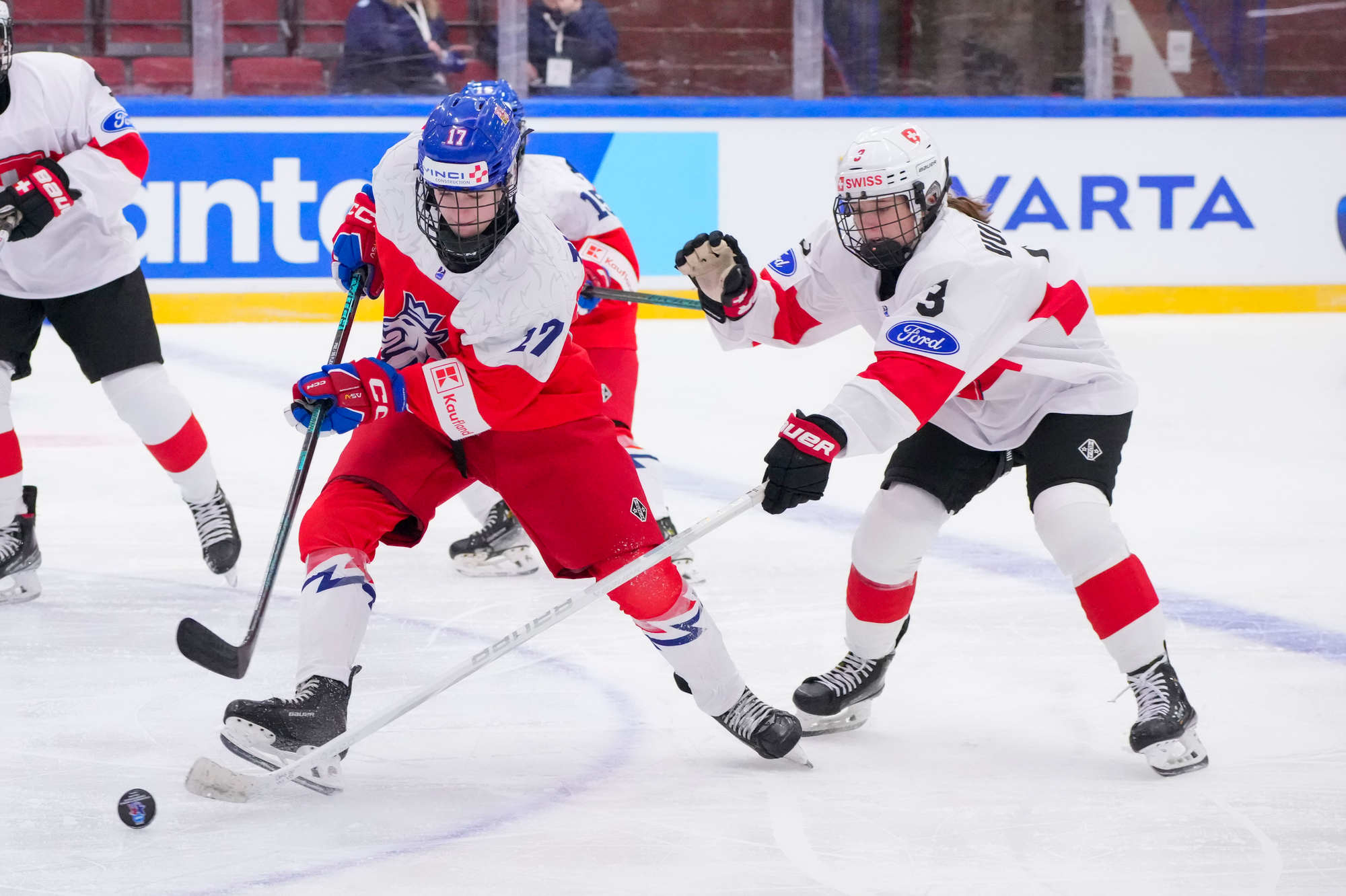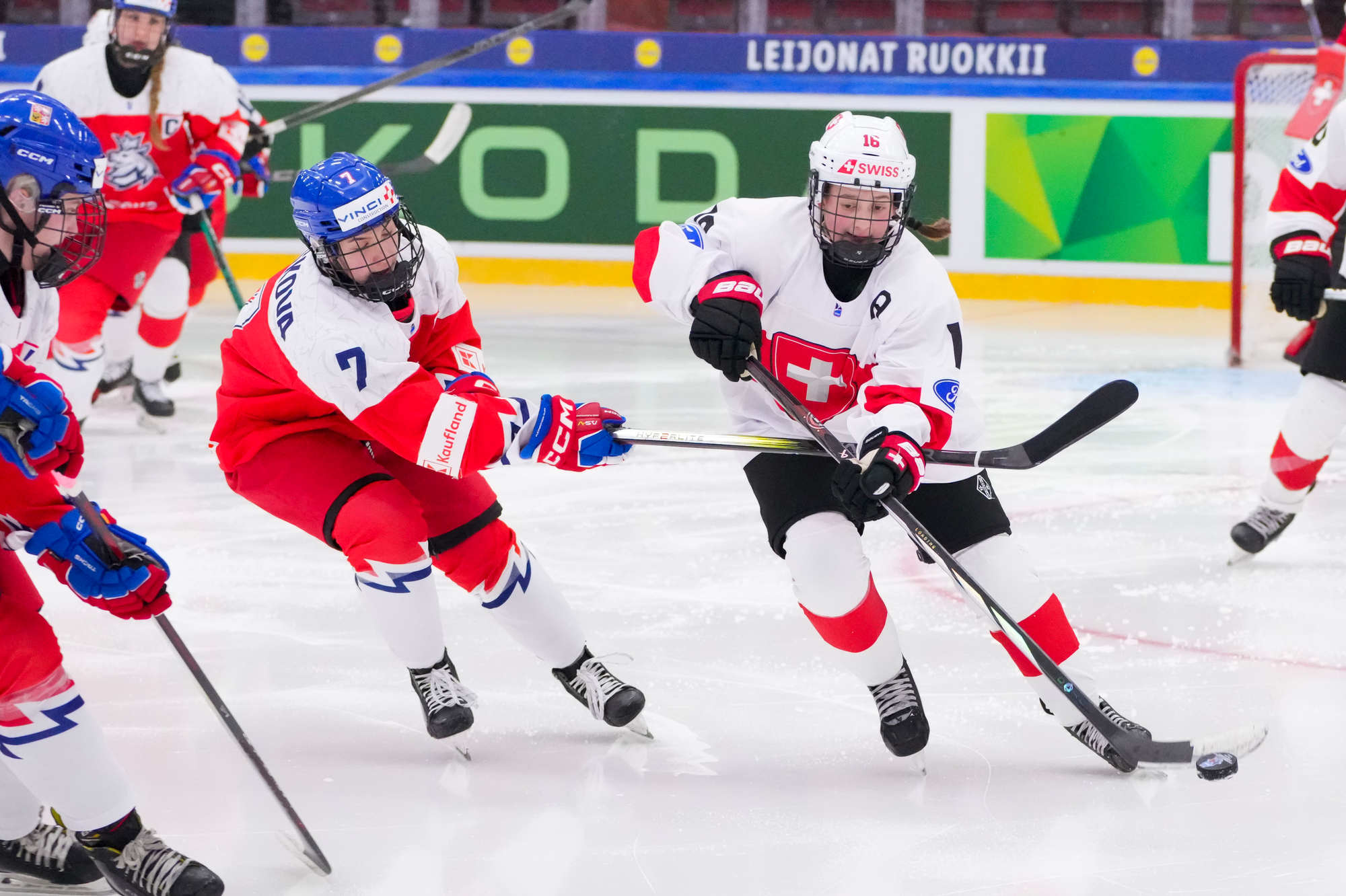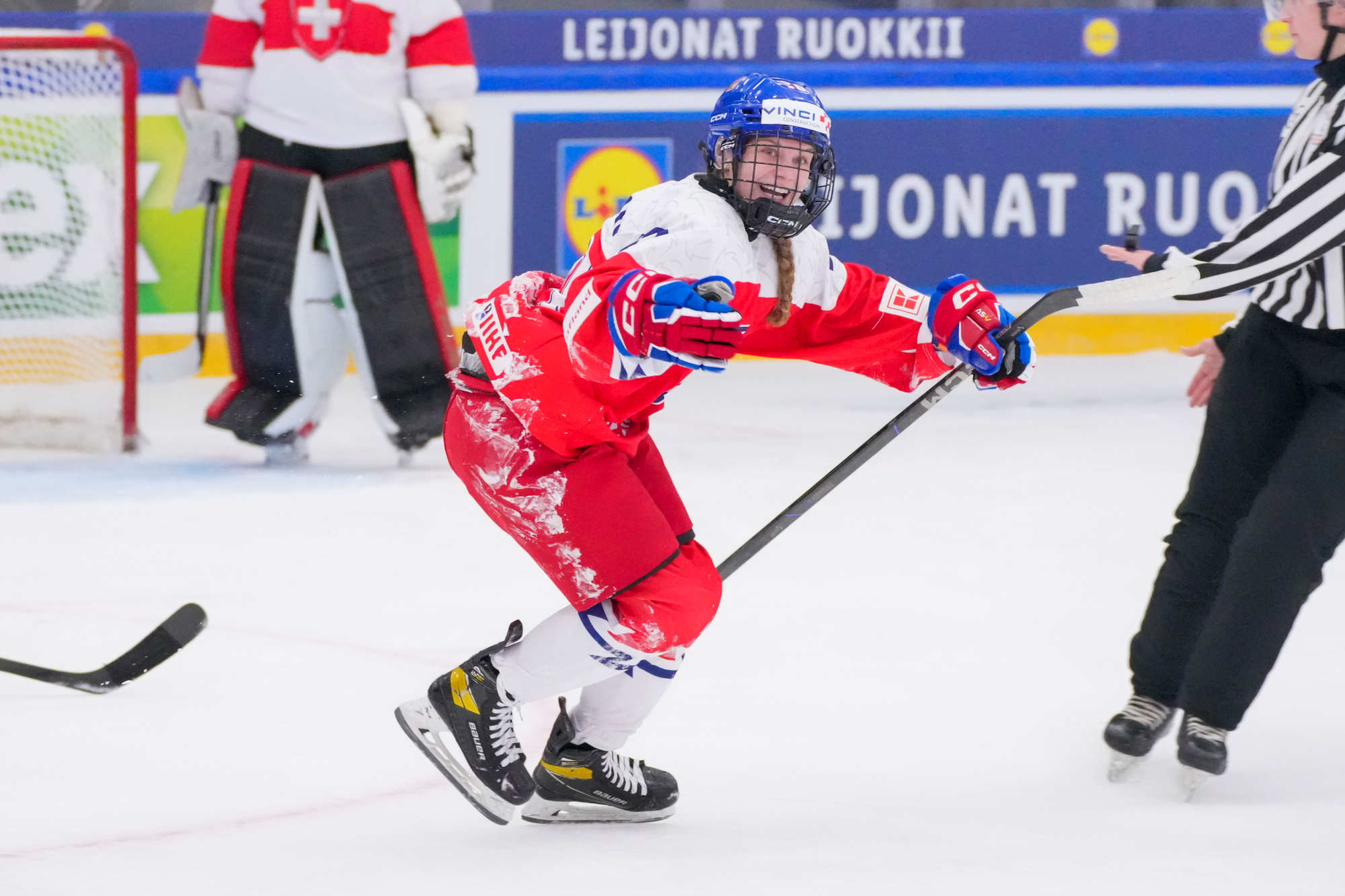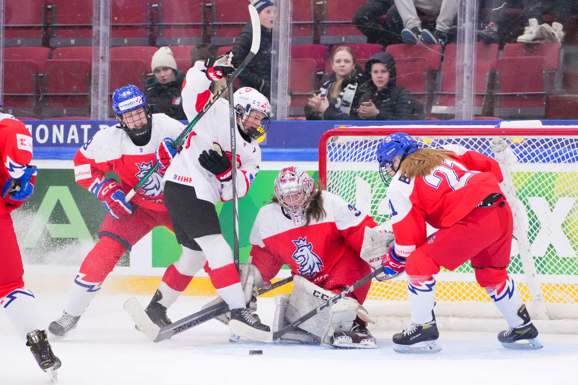 Sonja Inkamp vastasi Sveitsin maalista, Viktoria Jelkova Tshekin. Suurin sankari oli Tshekin Julie Jebouskova, joka teki jatkoajan voittomaalin Adela Pankovan esityöstä.