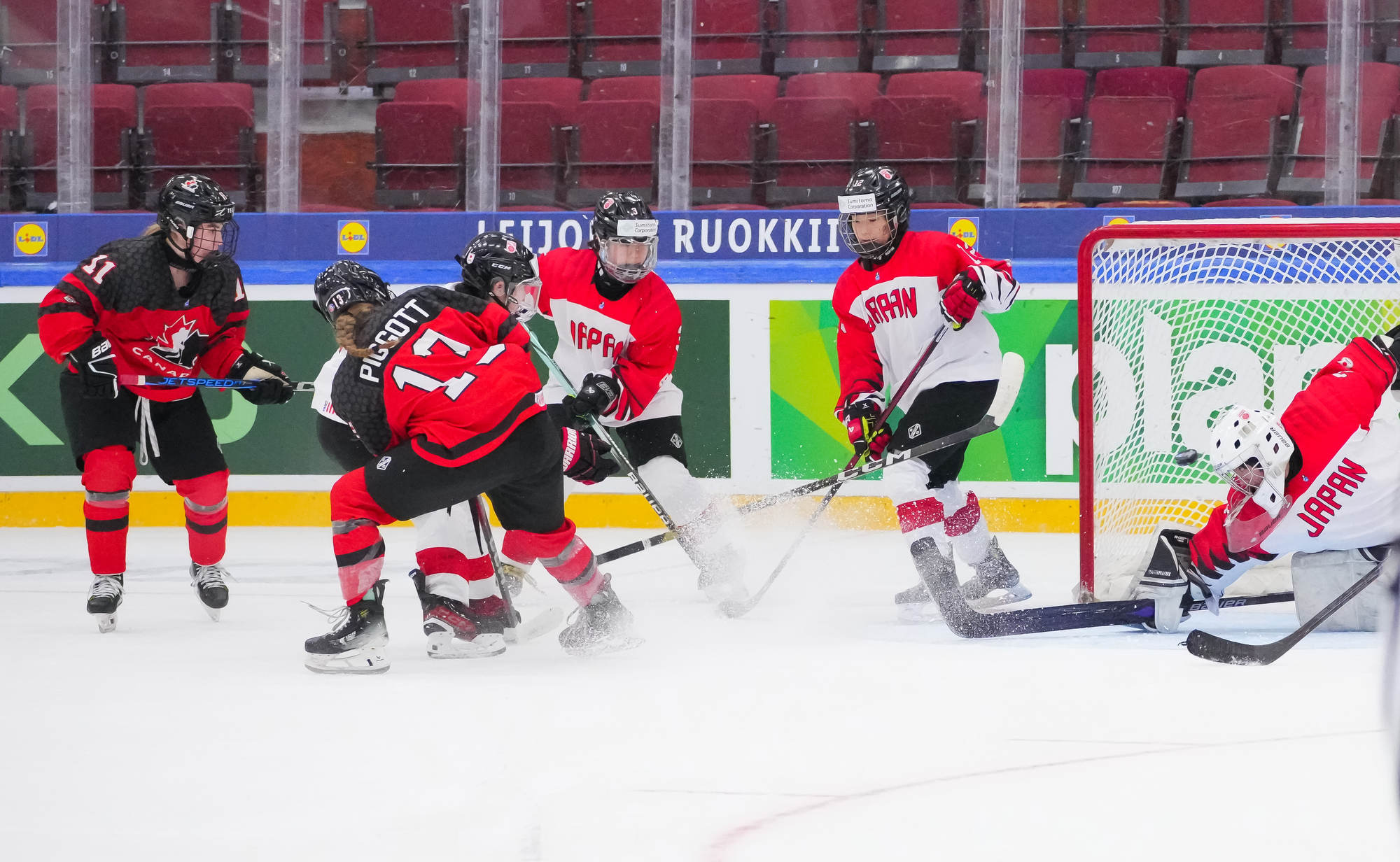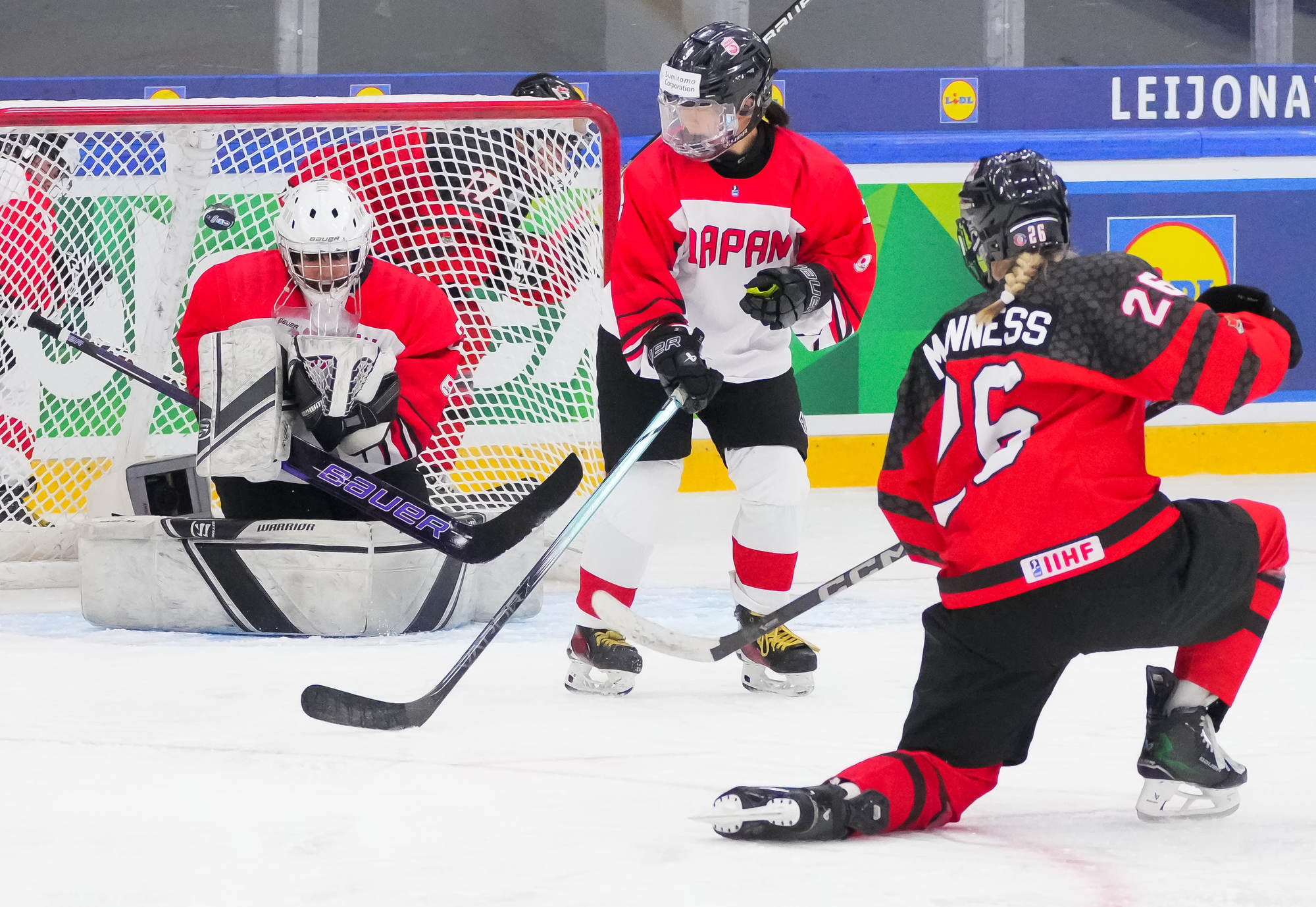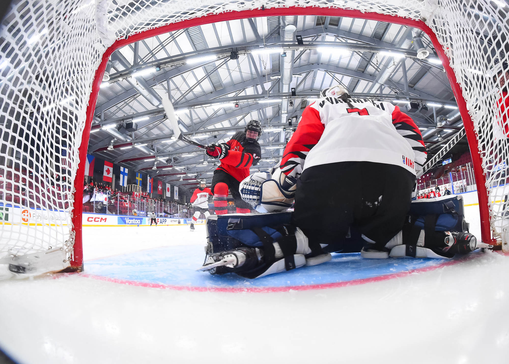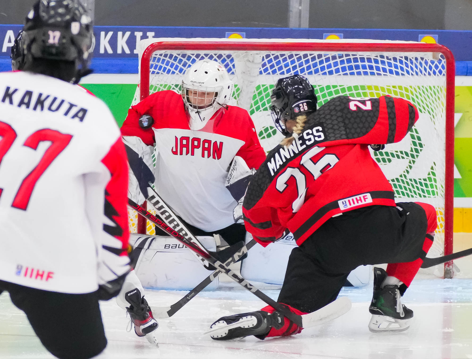 Kaksi minuuttia myöhemmin Sara Manness murtautui Japanin puolustuksen läpi ja laukoi kiekon tolpan kautta maaliin. Tiller teki toisen maalinsa ylivoimalla ajassa 9:39, kun irtokiekko päätyi hänen jalkoihin maalinedustalla.