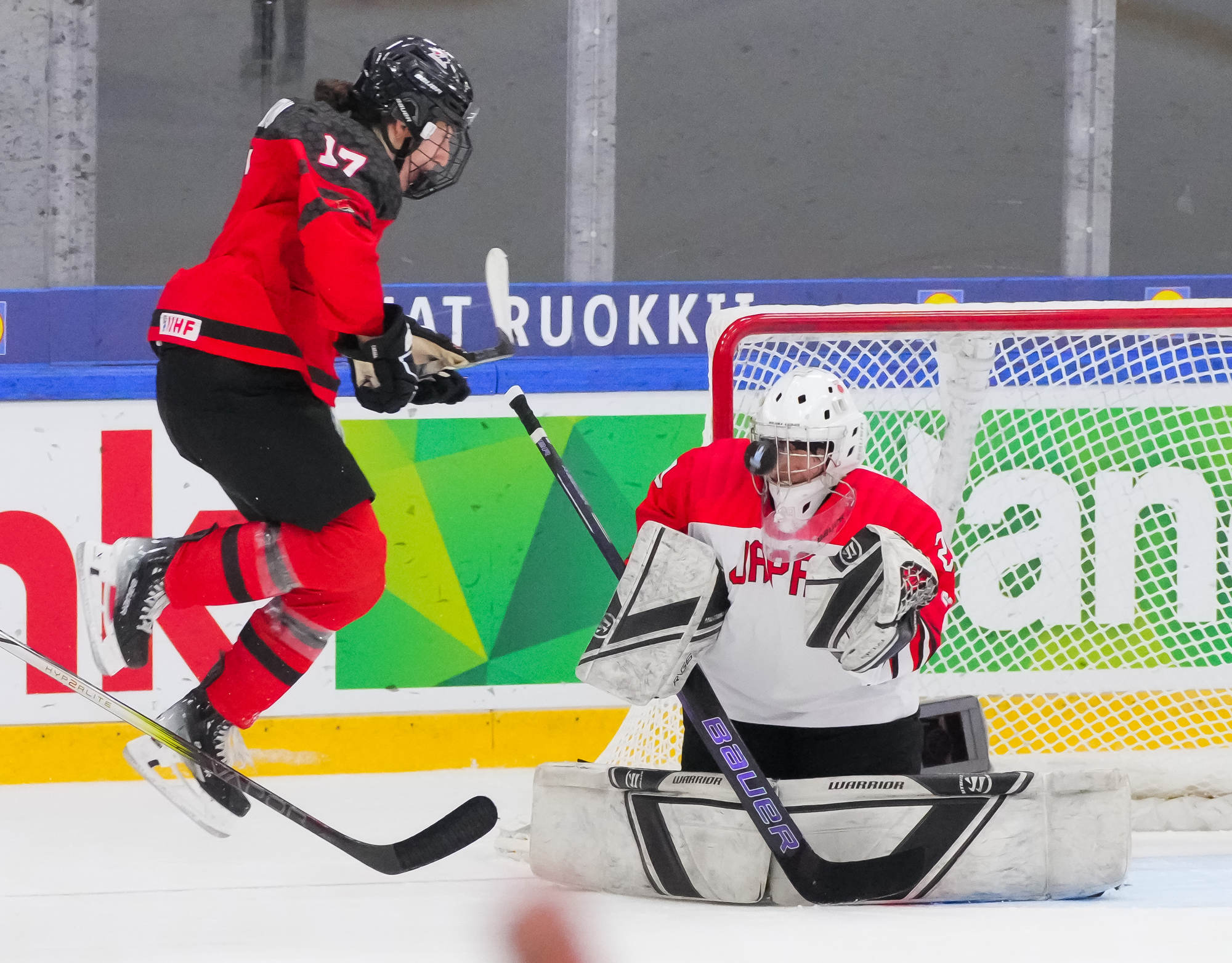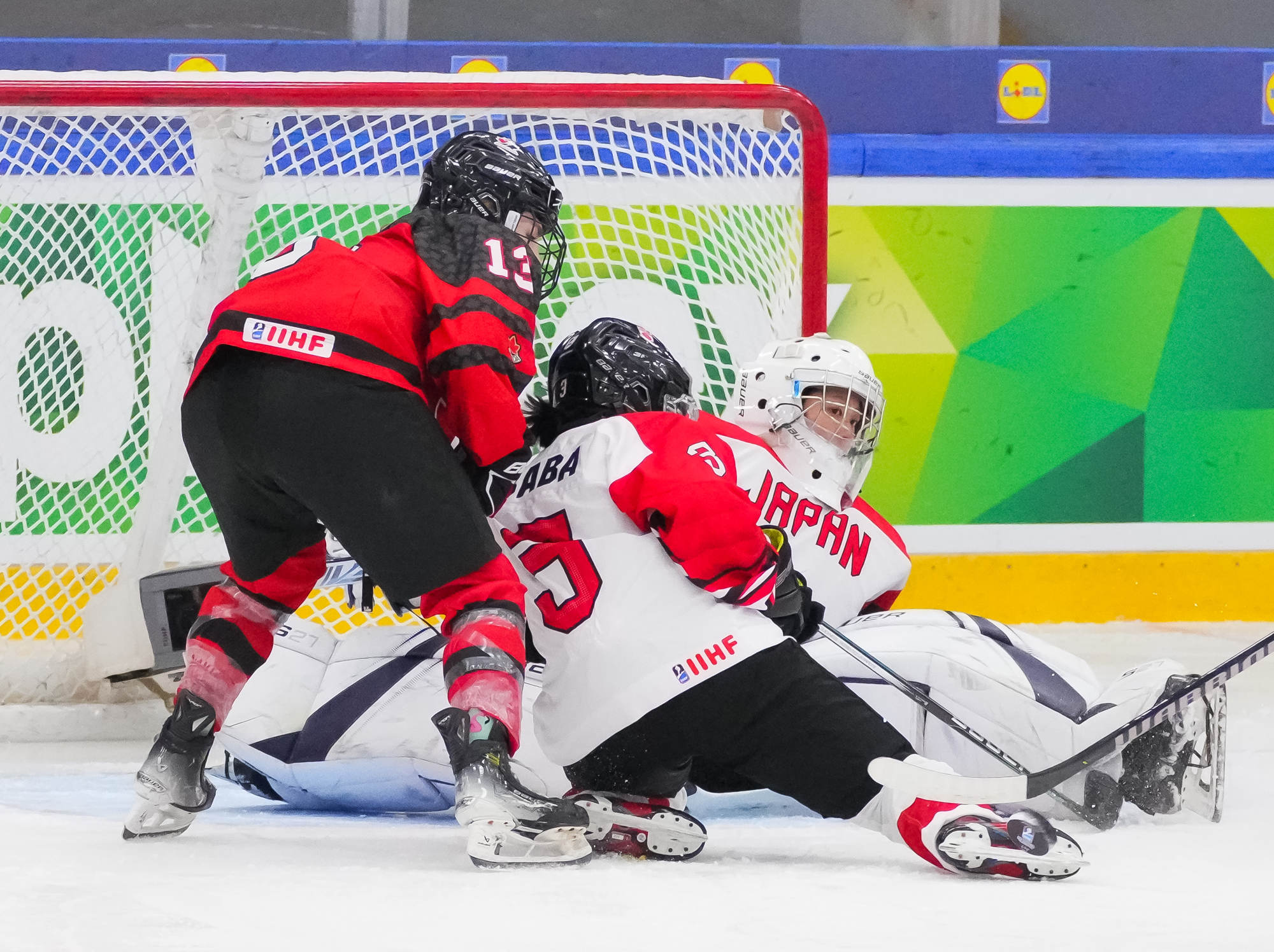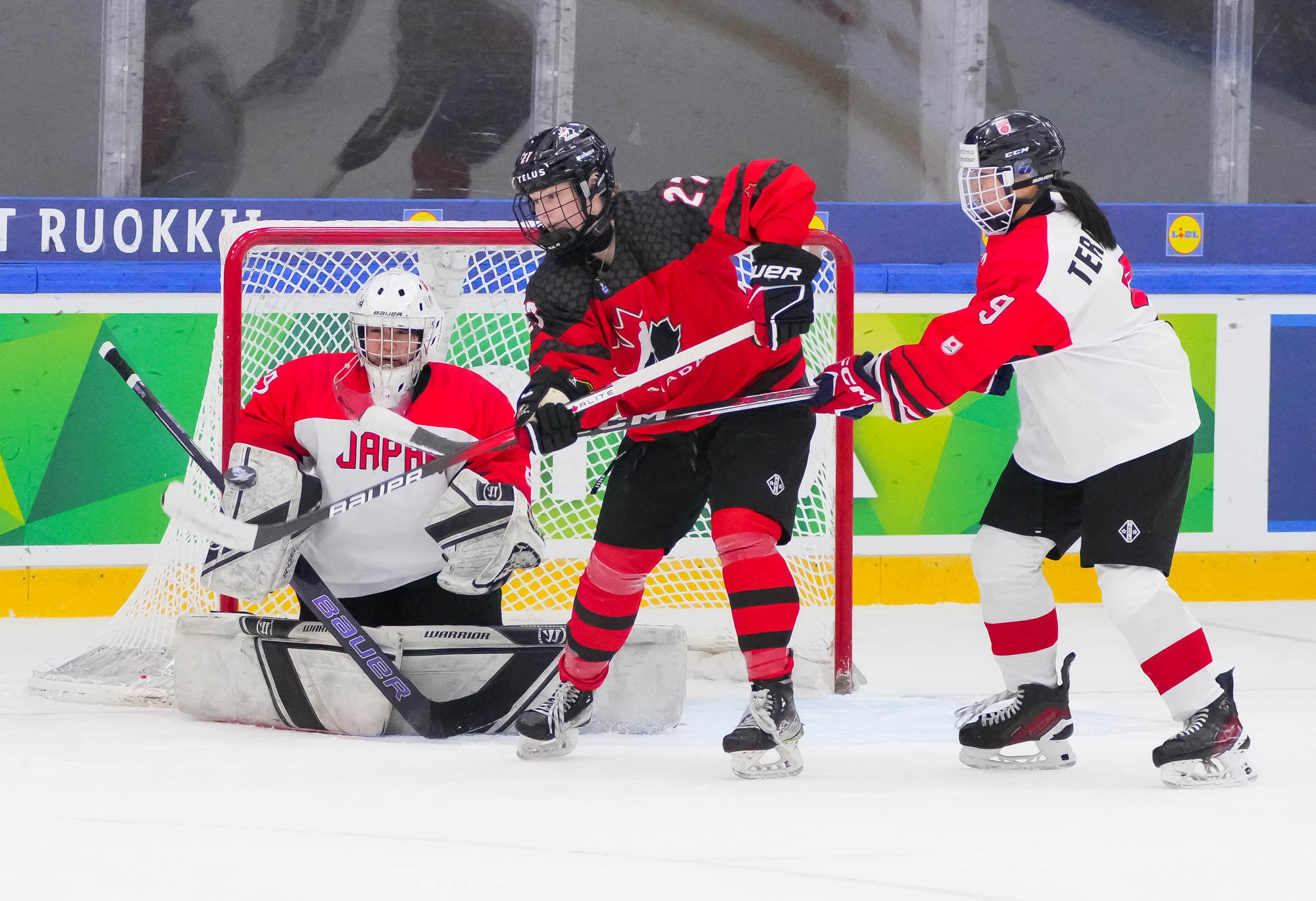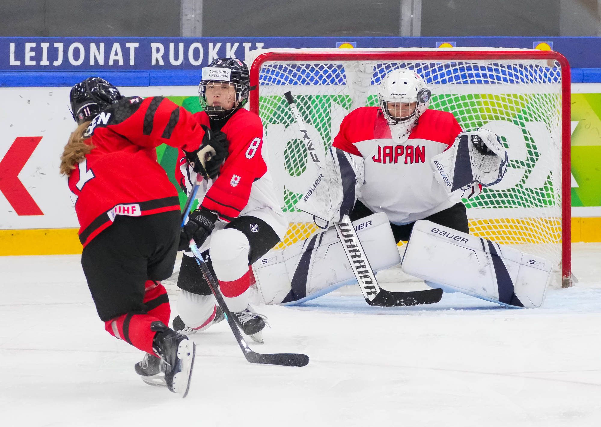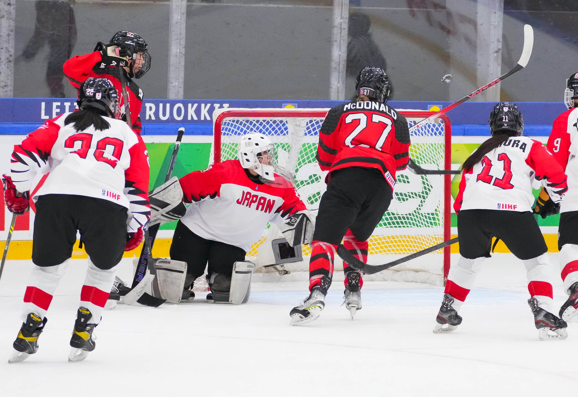 Kaksi minuuttia myöhemmin Sara Manness murtautui Japanin puolustuksen läpi ja laukoi kiekon tolpan kautta maaliin. Tiller teki toisen maalinsa ylivoimalla ajassa 9:39, kun irtokiekko päätyi hänen jalkoihin maalinedustalla.