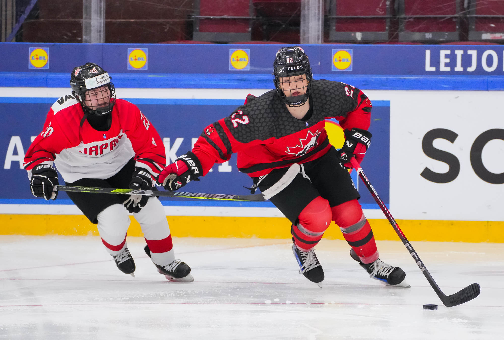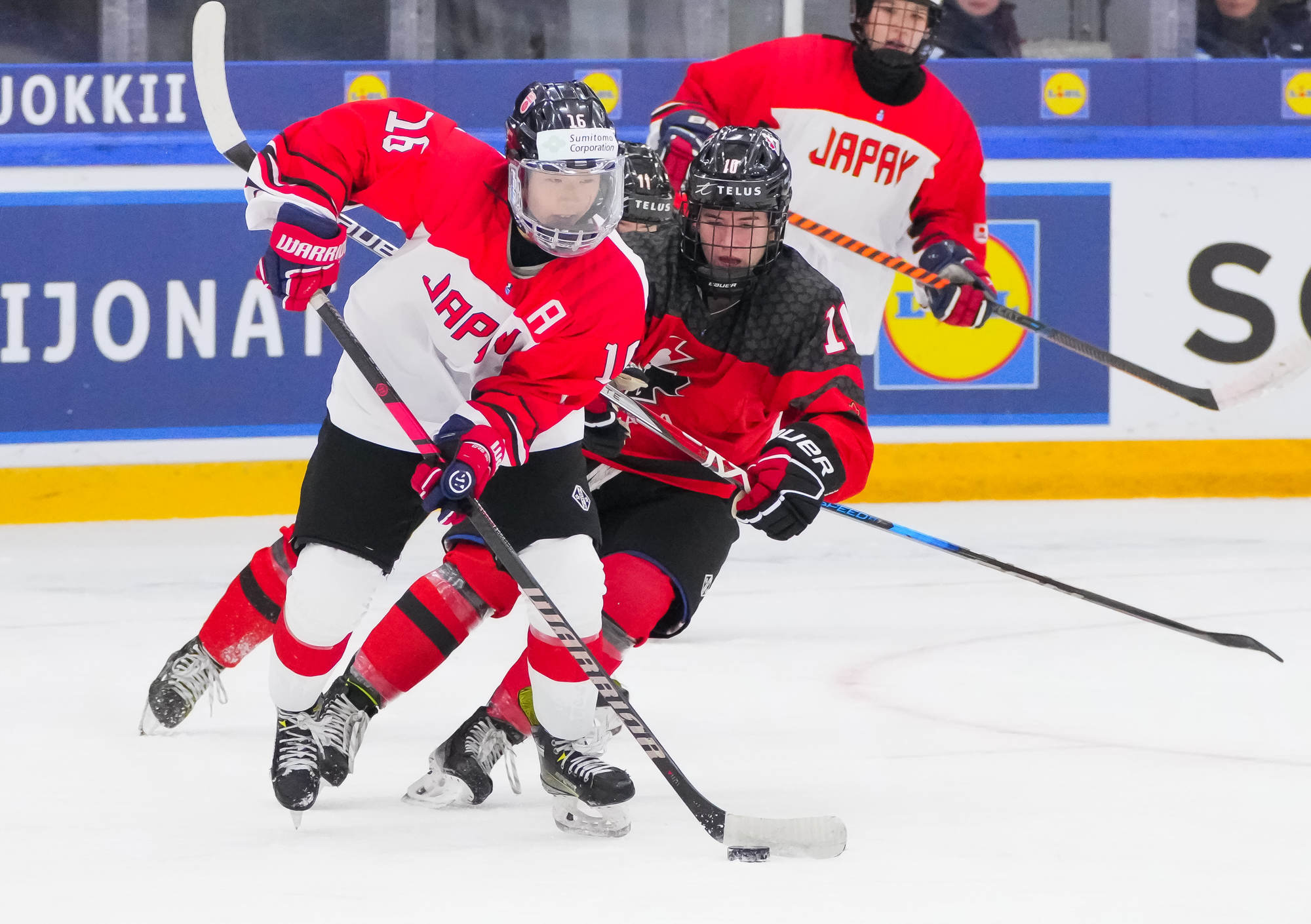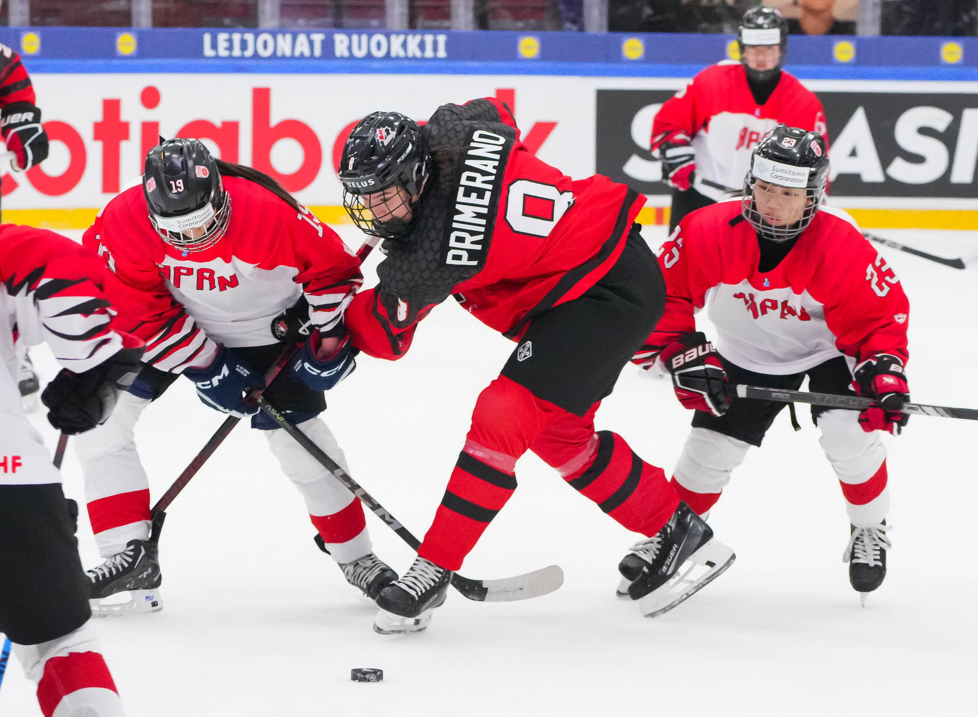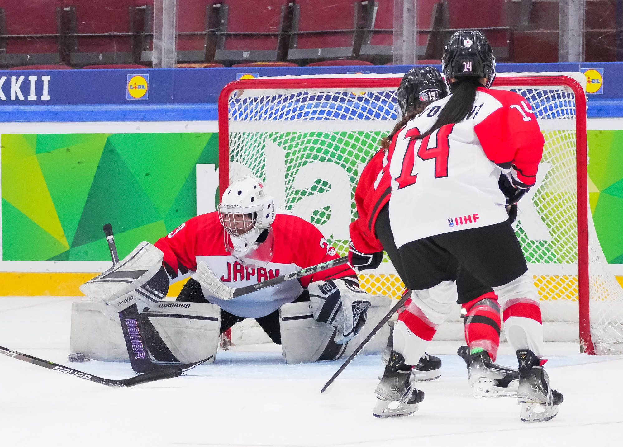 Kaksi minuuttia myöhemmin Sara Manness murtautui Japanin puolustuksen läpi ja laukoi kiekon tolpan kautta maaliin. Tiller teki toisen maalinsa ylivoimalla ajassa 9:39, kun irtokiekko päätyi hänen jalkoihin maalinedustalla.