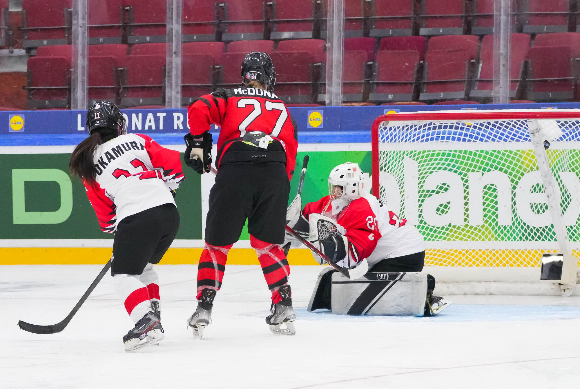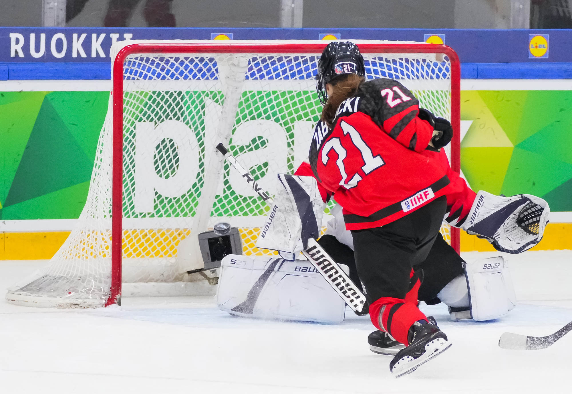Cimoroni teki toisen hattutempun laukomalla kiekon oikealta laidalta verkkoon ajassa 11:57. Hayley McDonald viimeisteli loppulukemat ajassa 2:52.