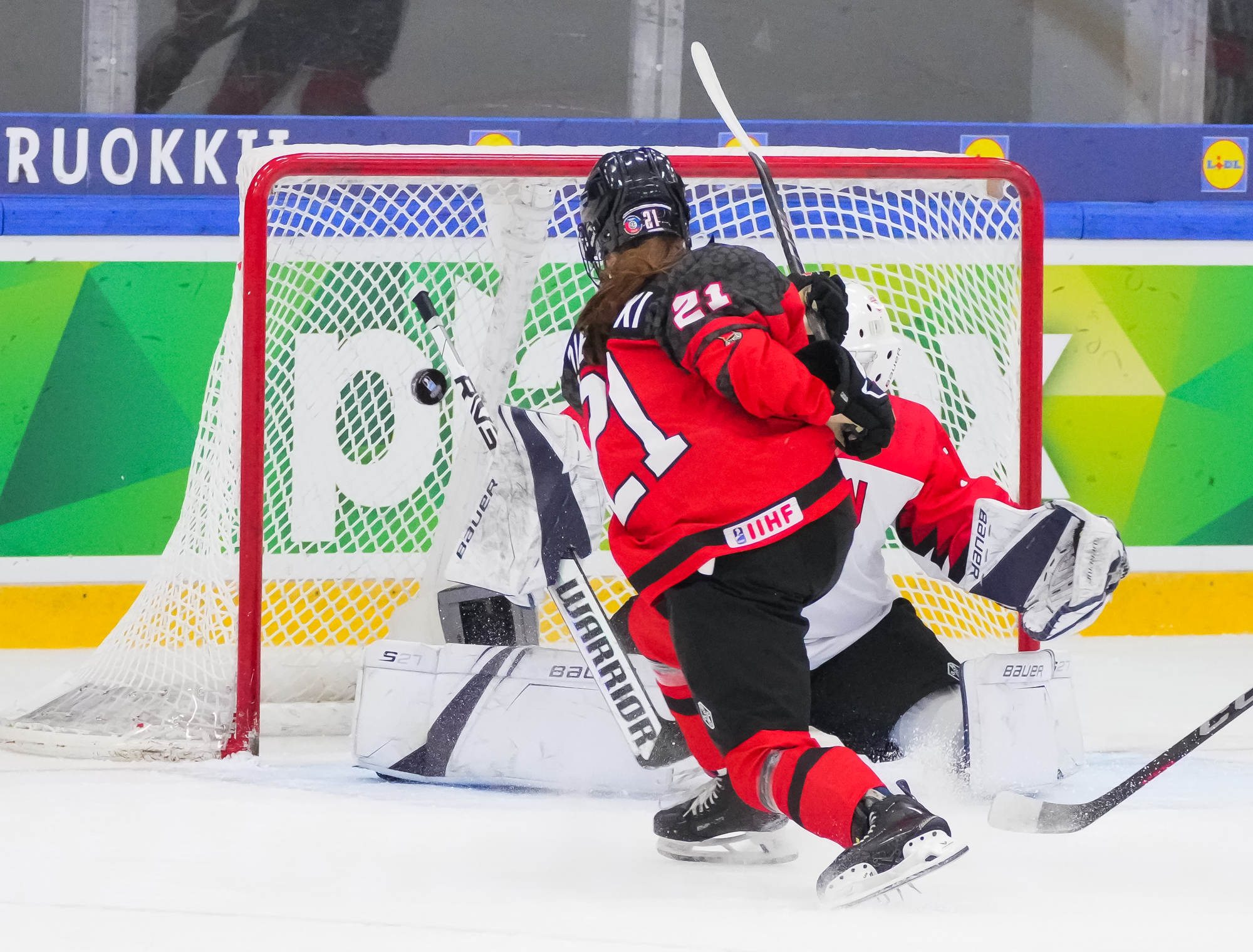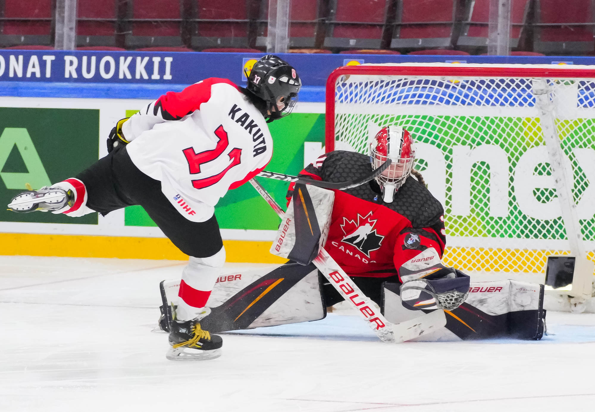 Vain 34 sekuntia myöhemmin kiekko oli jälleen Kuromarun takana, kun Caileigh Tiller iski Stryker Zablockin paluukiekon maalin edestä sisään.