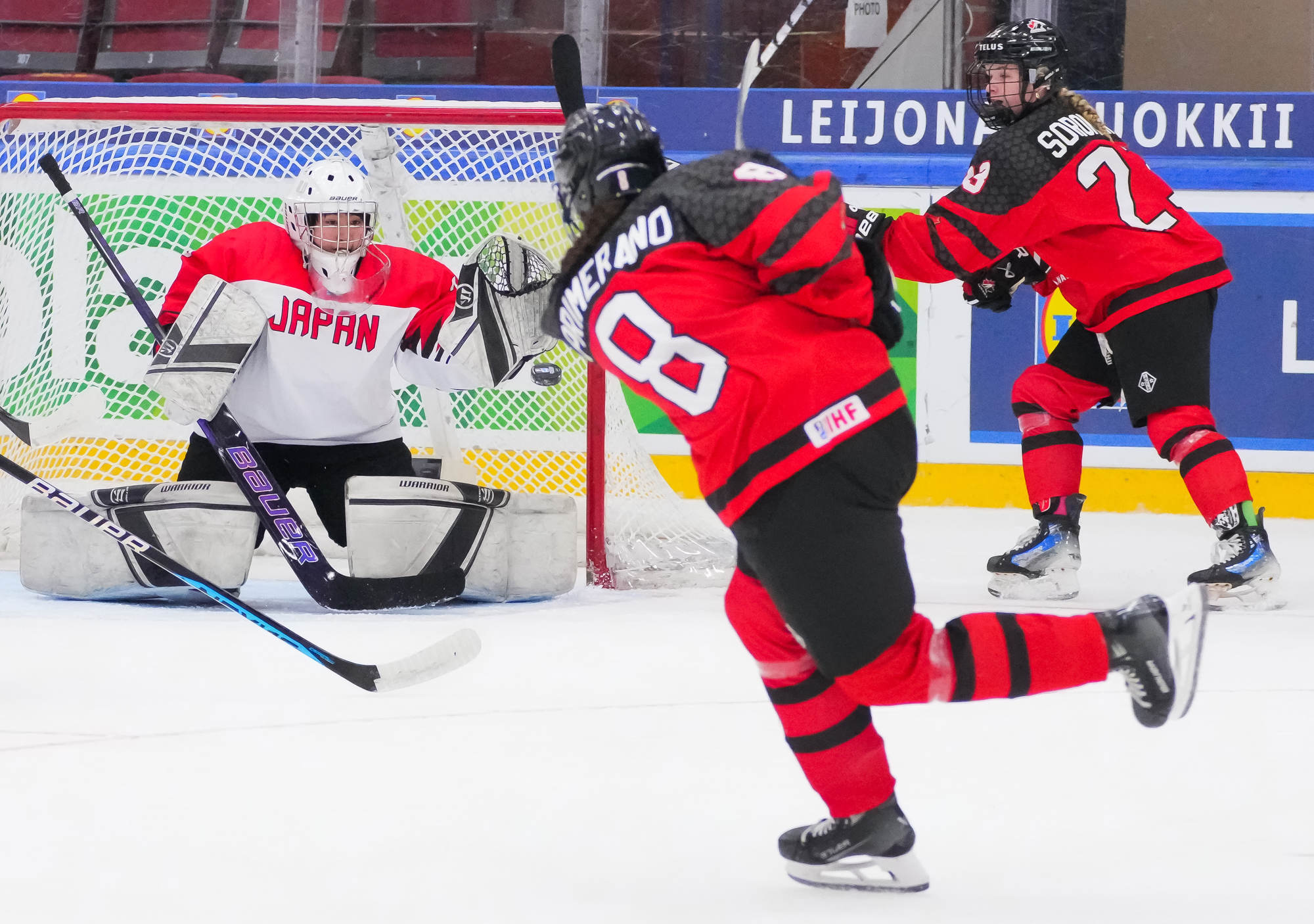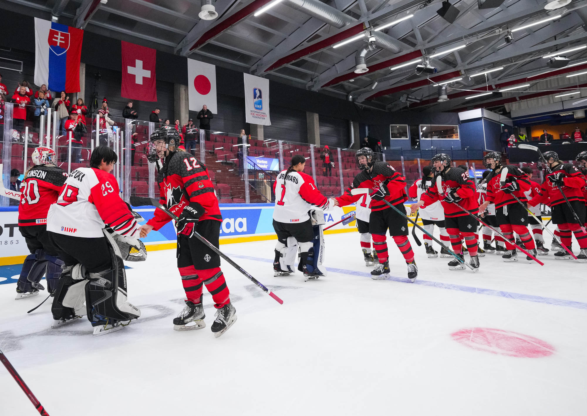 "Hyvät tapamme ja yksityiskohdat ovat tehneet meidät menestyviksi, ja pelaajat onnistuivat tässä tänään todella hyvin. He eivät yrittäneet tehdä asioita vain siksi, että pystyivät," Kanadan päävalmentaja Vicky Sunohara sanoi.