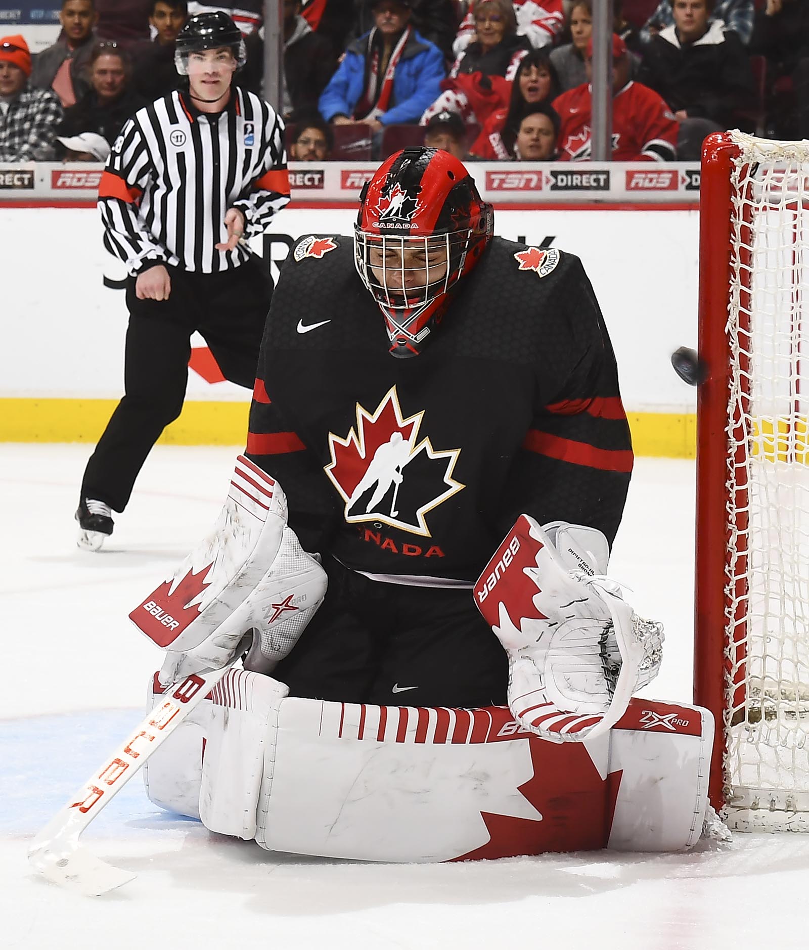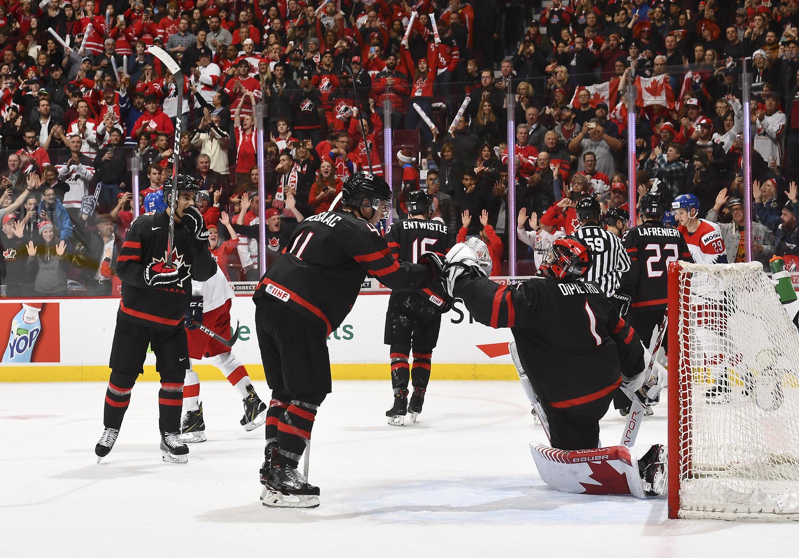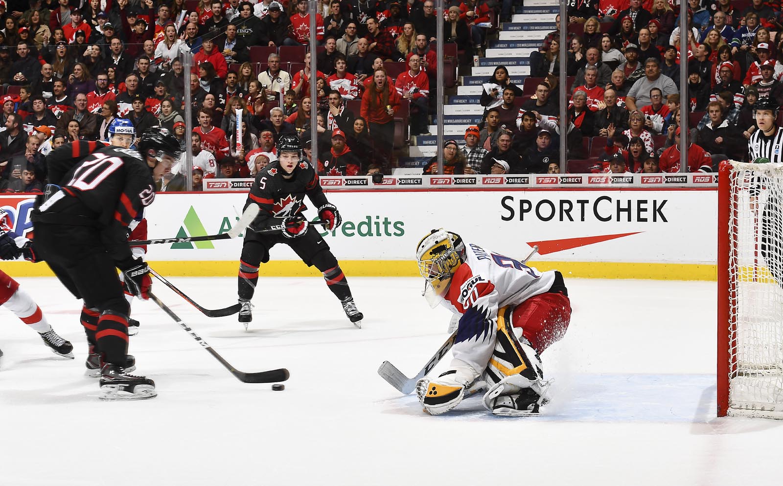 Michael DiPietro (Amherstburg, Ont./Ottawa, OHL) s’est montré solide entre les poteaux, réalisant 23 arrêts afin d’aider le Canada à remporter sa troisième victoire consécutive devant 17 012 partisans vêtus de rouge et de blanc au Rogers Arena.