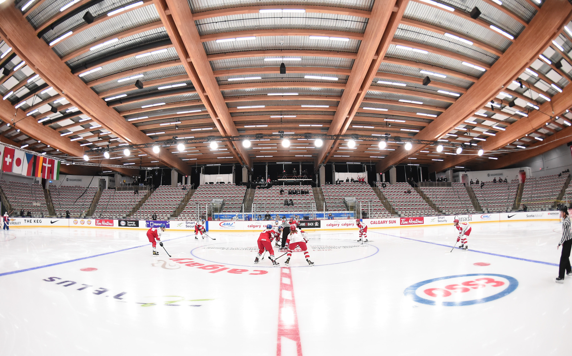 Le match s'est déroulé au WinSport Arena de Calgary en l'absence de spectateurs dans les gradins, conformément au cadre d’environnement protégé qui a été adopté dans le contexte de la pandémie.