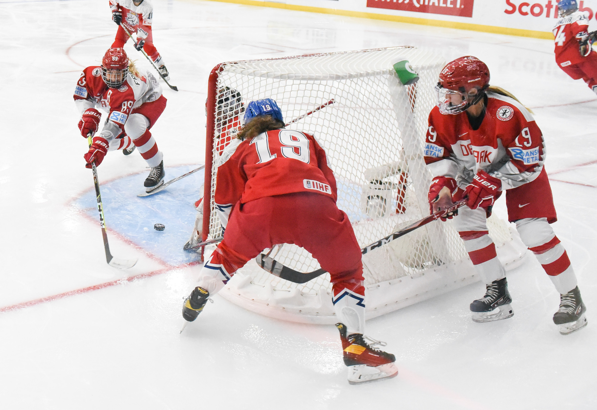 Les Danoises semblaient commencer à ressentir un peu de fatigue quand Kristyna Patkova s'est emparée d'une rondelle libre dans l'enclave et battu Jensen entre les jambières pour une avance de 5-1 à 4:00. Mills a complété son tour du chapeau à 17:16 d'un tir sec dans le haut du filet qui a d'abord ricoché sur le poteau.