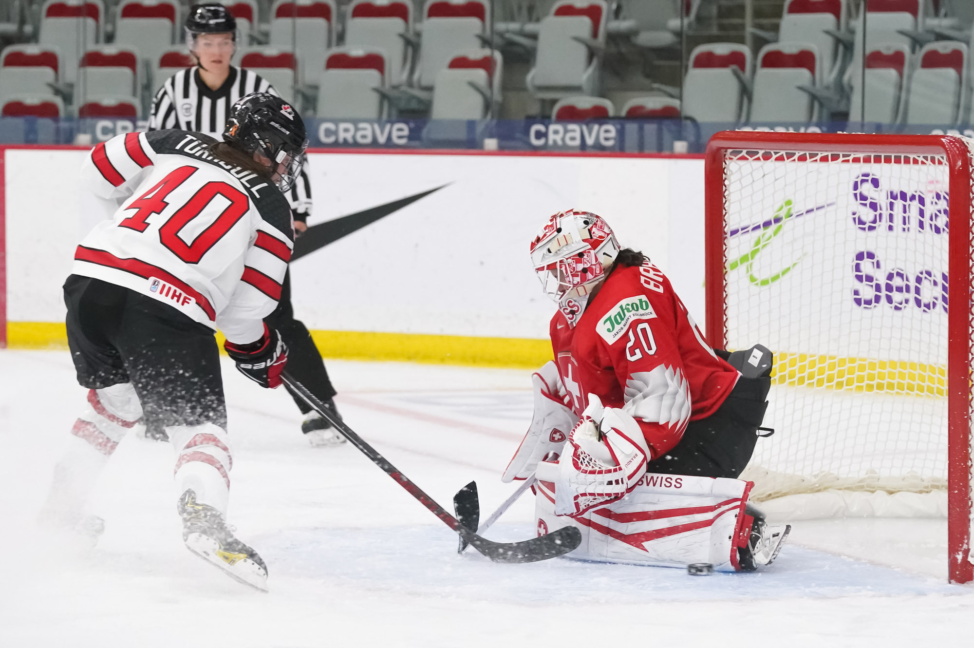 Les Canadiennes ont dirigé pas moins de 63 tirs vers le filet de la Suisse pour signer un troisième gain en autant de matchs de la ronde préliminaire. Du côté du Canada, la gardienne Emerance Maschmeyer (Bruderheim, Alb./PWHPA) a repoussé les 12 tirs de la Suisse pour obtenir un jeu blanc à son premier départ du Mondial.