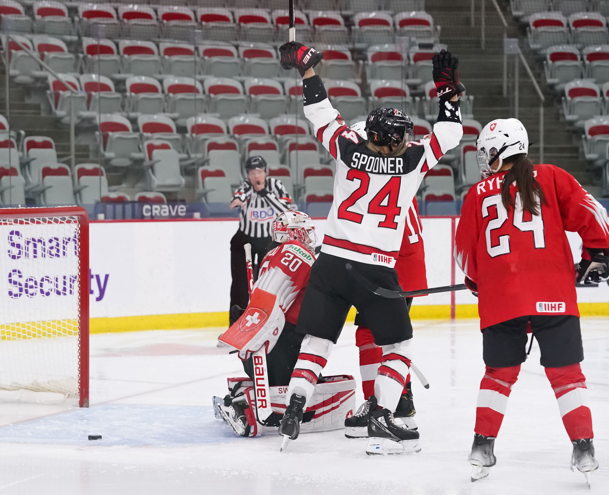 L’équipe nationale féminine du Canada a été en mesure de conserver sa fiche parfaite au Championnat mondial féminin 2021 de l’IIHF grâce à une victoire à sens unique de 5-0 contre la Suisse mardi soir.