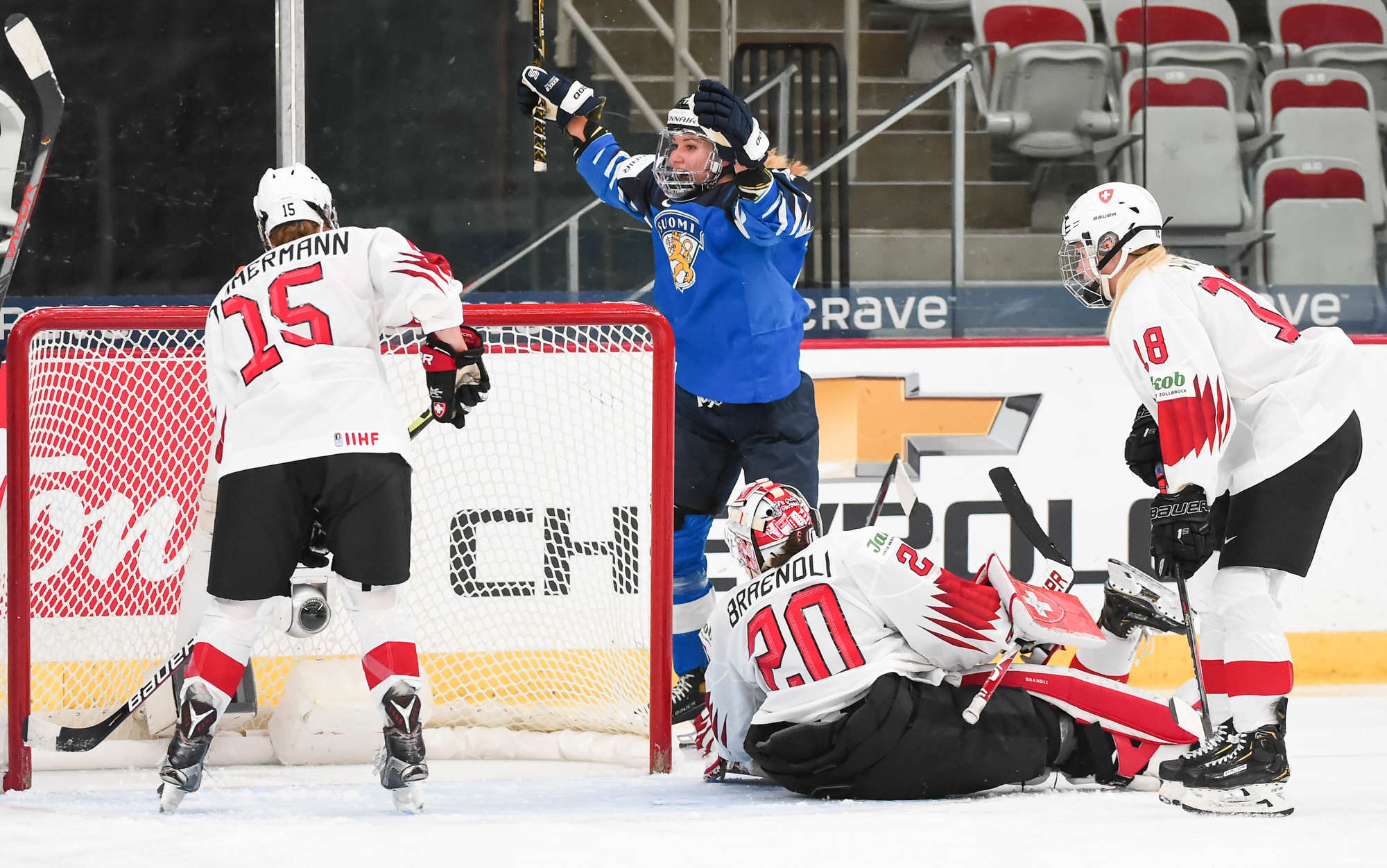 Braendli a été remplacée par la gardienne substitut Saskia Maurer devant le filet suisse au début de la troisième période, mais ça n'a guère changé le cours des choses. Vainikka a fait mouche sur le premier tir de la Finlande en troisième, à 1:26, pour une avance de 6-0.