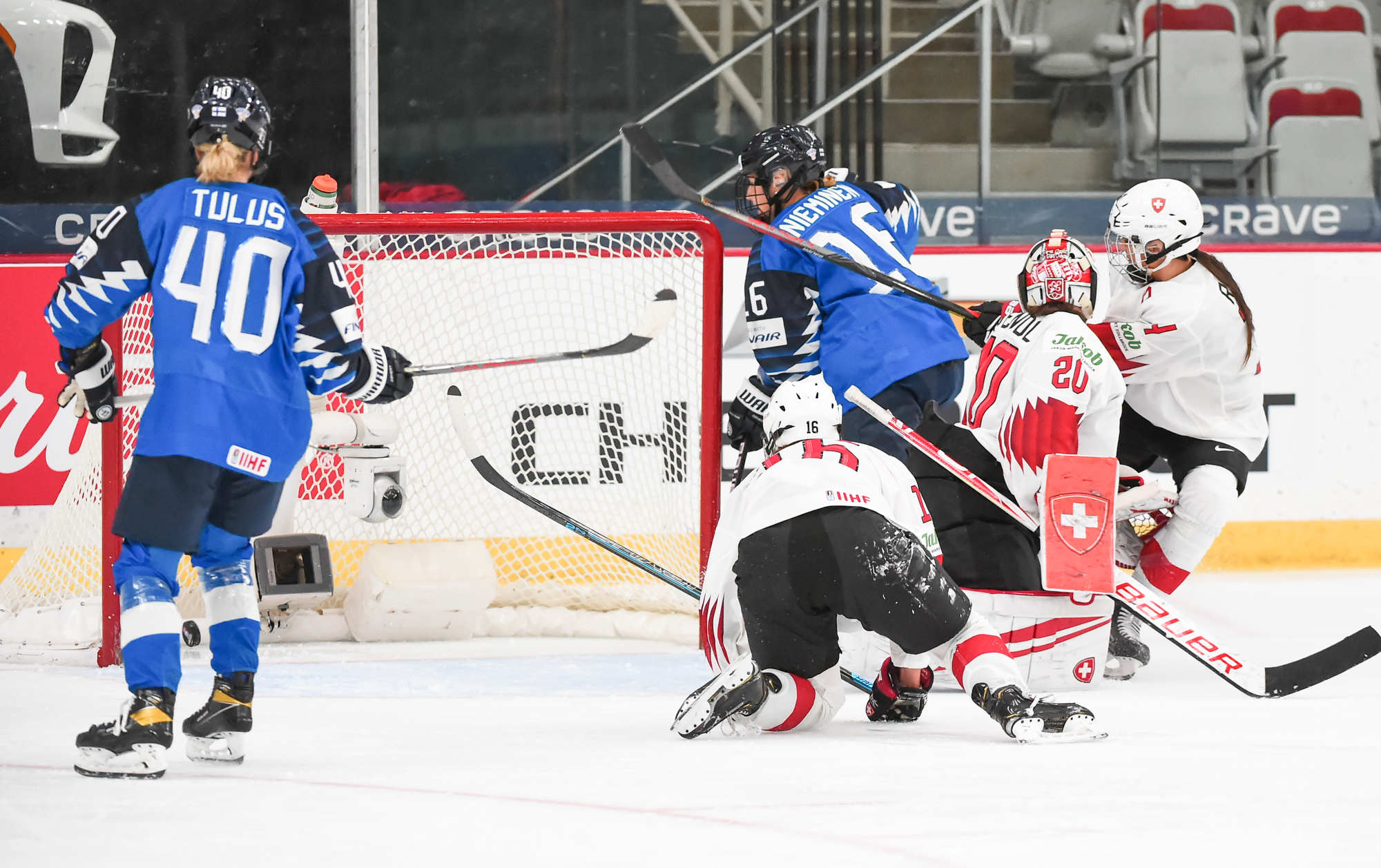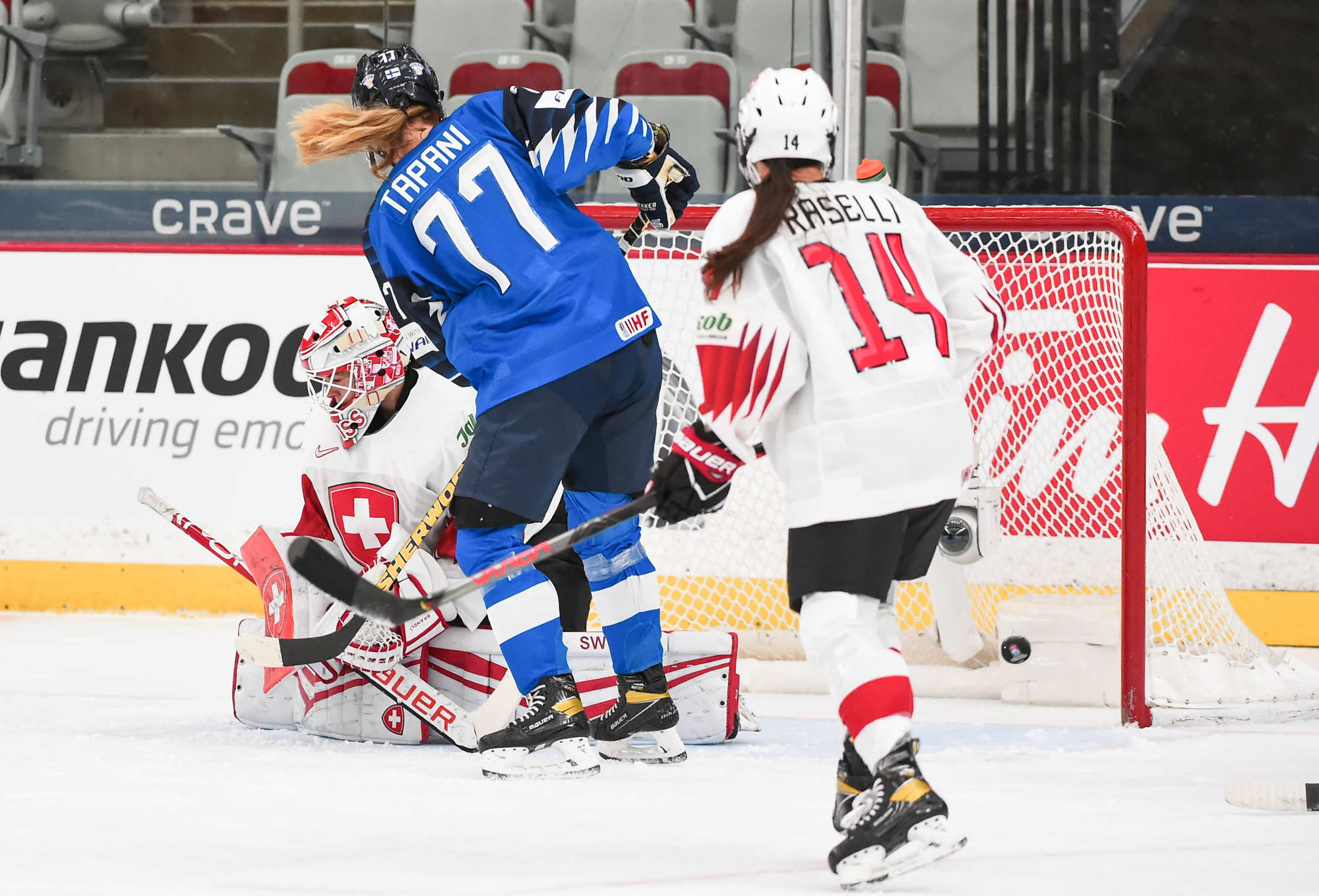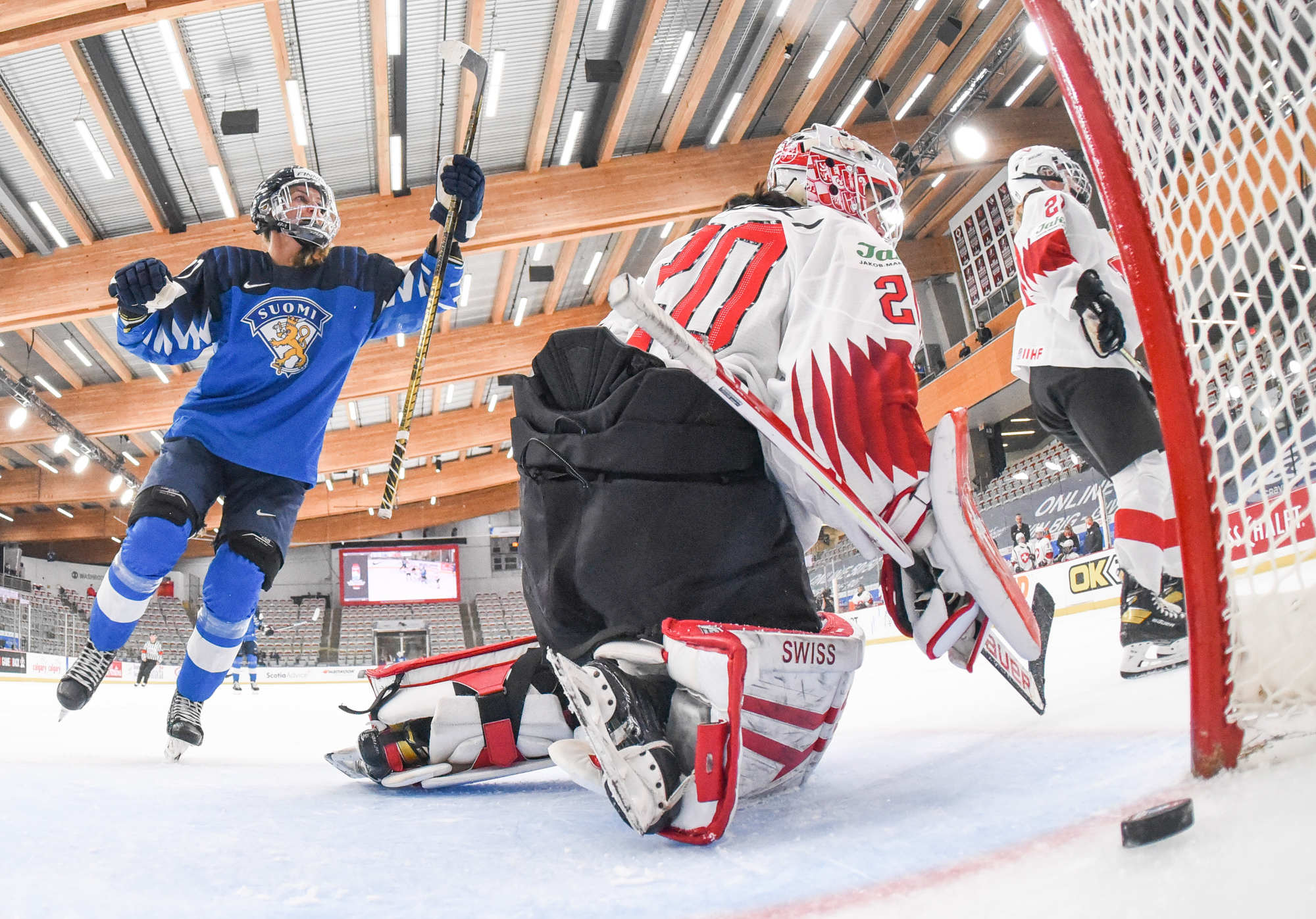Raisanen, qui avait réalisé 36 arrêts à sa sortie précédente contre les États-Unis, s'est illustrée quand Sinja Leeman a soutenu une poussée à l'attaque et a redirigé une rondelle que Noemi Rhyner lui a relayée. Les Suisses ont eu quelques belles occasions d'éviter le jeu blanc, mais elles ont manqué de finition.
