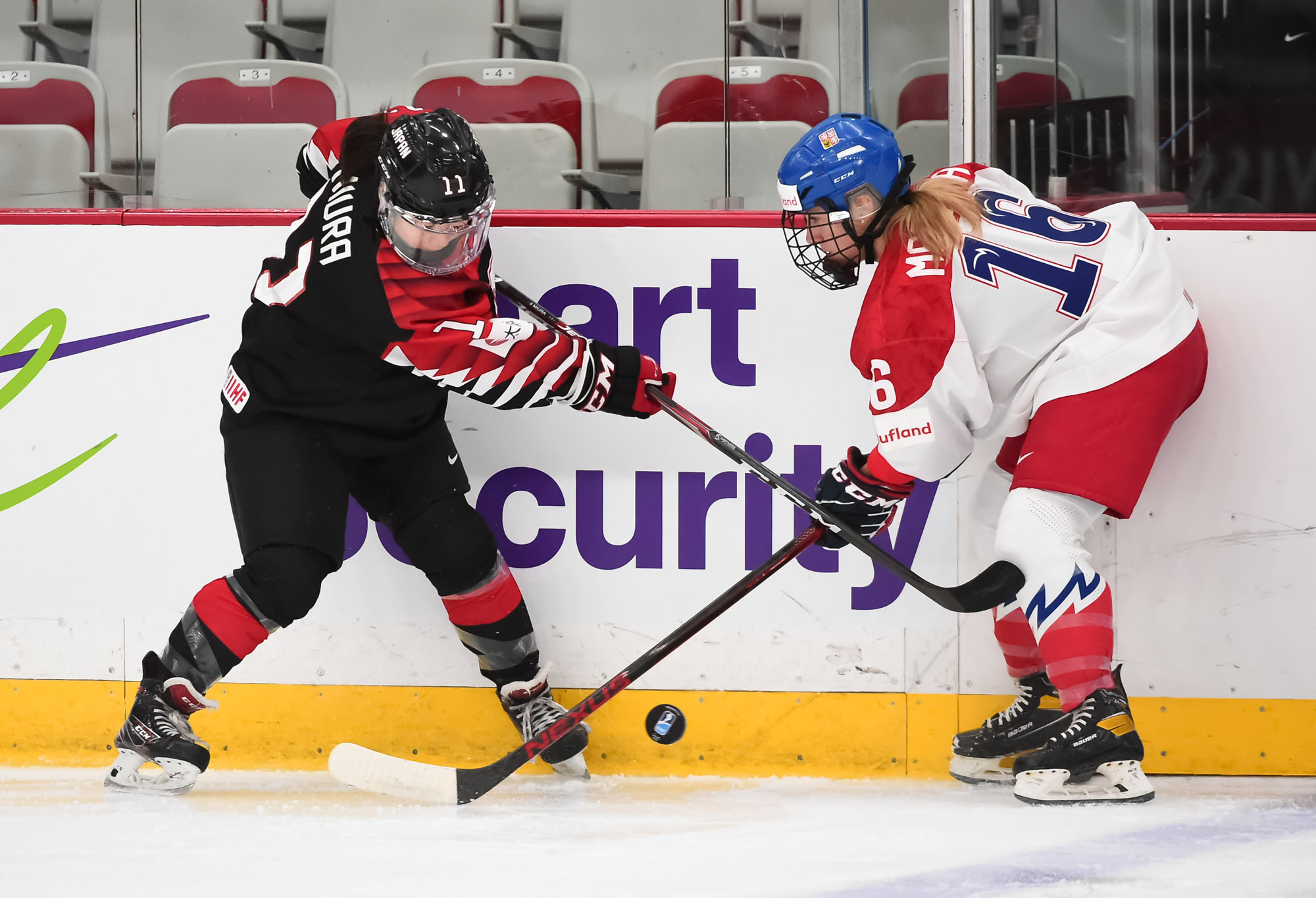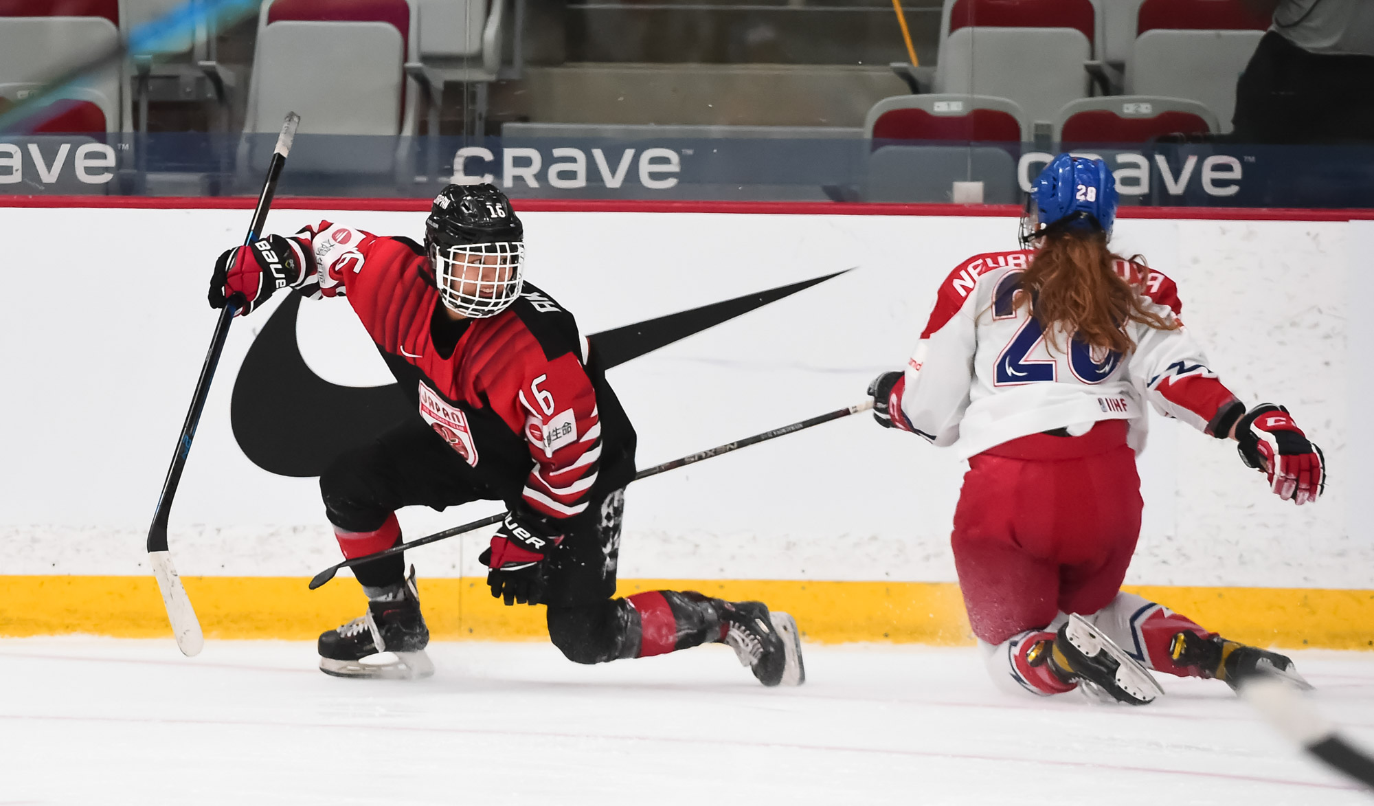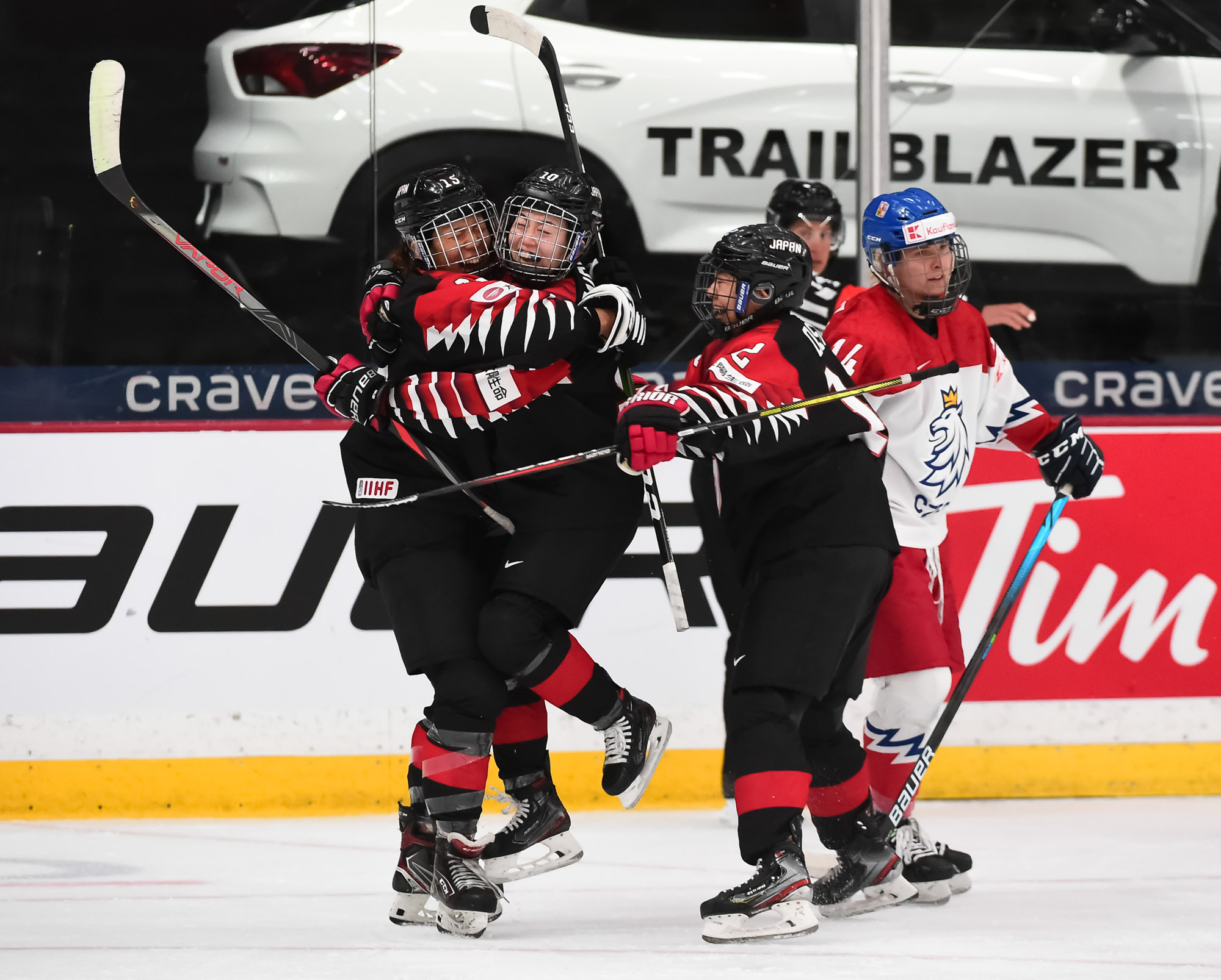 Au début d'un jeu de puissance japonais en fin de deuxième période, la Tchèque Klara Hymlarova a chuté à la suite d'une mise en jeu et s'est tordue la jambe. Le jeu a été stoppé et l'attaquante de 22 ans de l'université St. Cloud State originaire d'Opava a eu besoin d'aide pour quitter la patinoire.