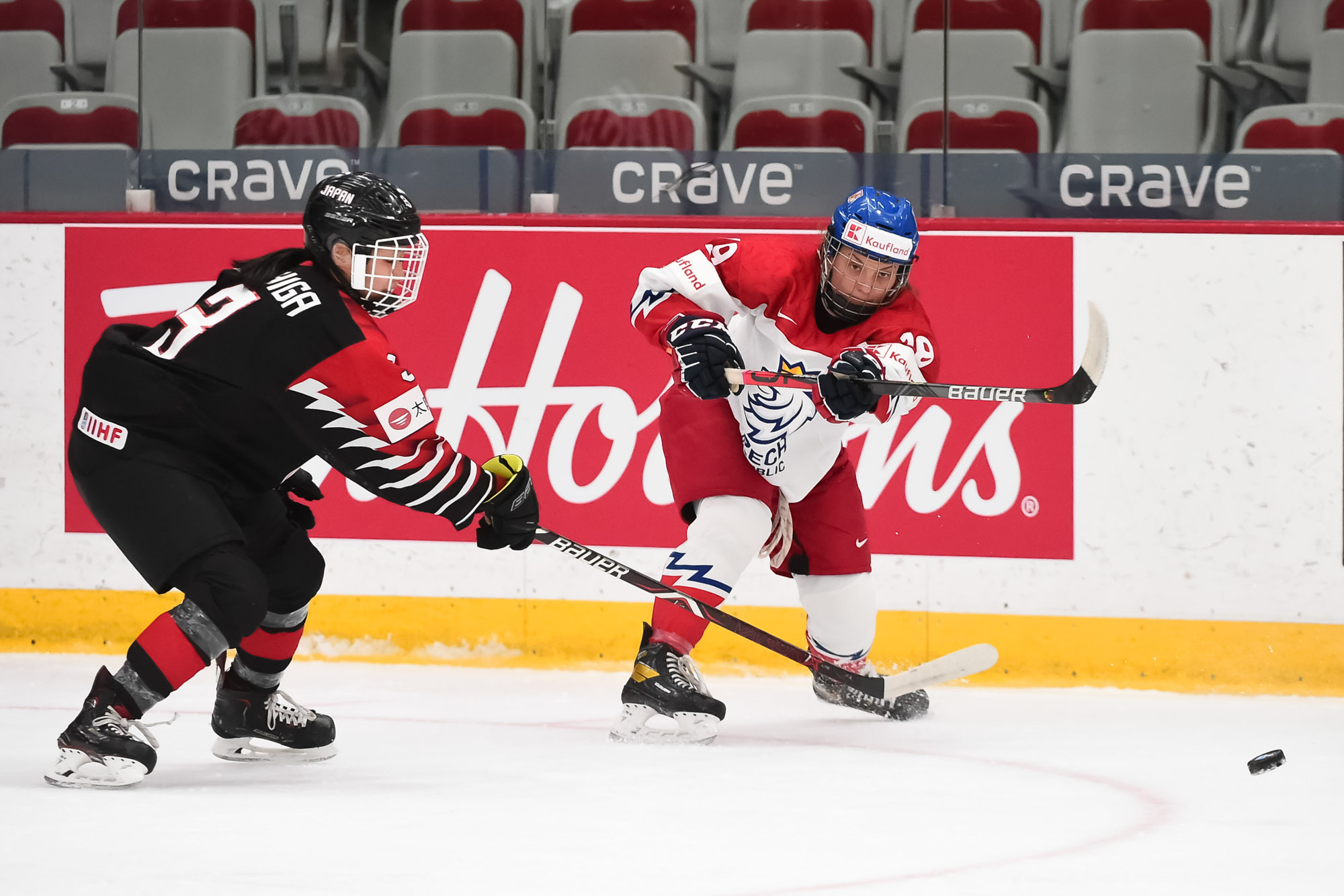 Deux minutes plus tard, Shiga a créé une autre occasion quand elle a filé à l'aile droite et réalisé une très belle feinte en ramenant le disque vers elle du patin pour ensuite bifurquer vers l'enclave. Les Japonaises ont continué de bourdonner en zone adverse et les Tchèques n'avaient d'autre choix que de chercher à tenir bon.
