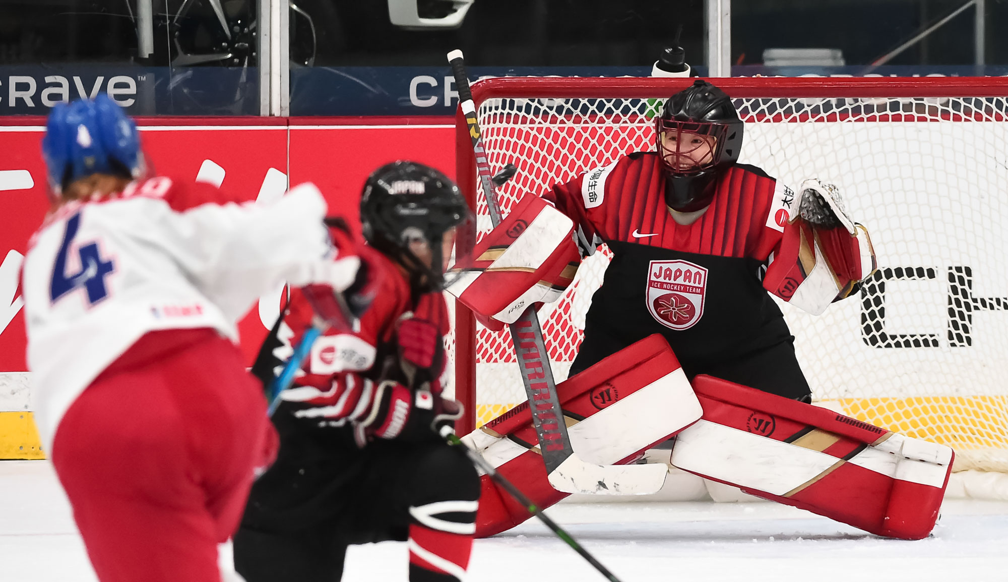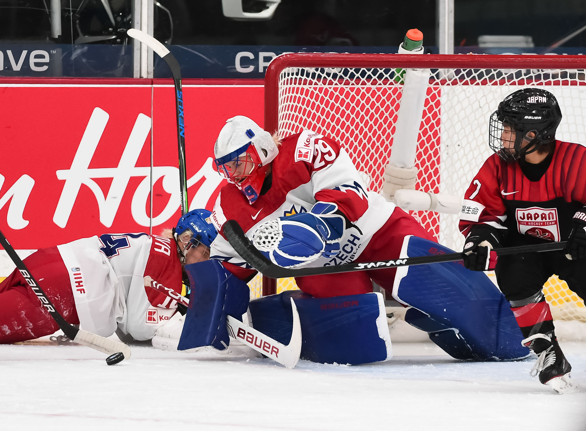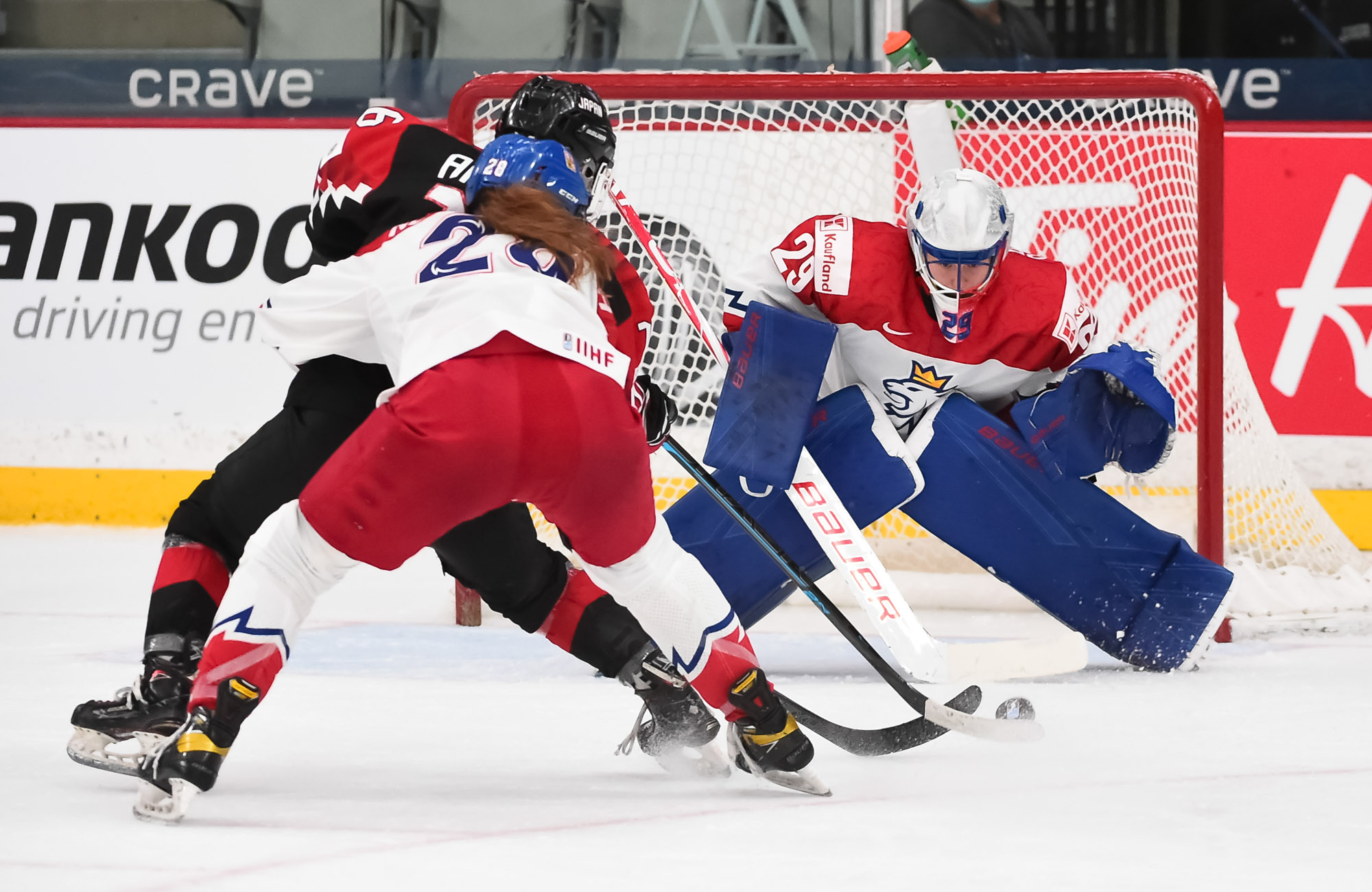 Après moins de deux minutes de jeu en troisième période, Peslarova a gardé son équipe dans le coup quand elle a bloqué le tir de Yoneyama à l'issue d'une feinte du revers sur une échappée. Les Japonaises ont continué de jouer à un rythme d'enfer pendant une pénalité de deux minutes imposée à l'attaquante Kristyna Patkova, mais les Tchèques ont répliqué à leur tour au cours de leur propre séquence à cinq contre quatre quand Mrazova et Laskova ont dirigé des tirs au filet.