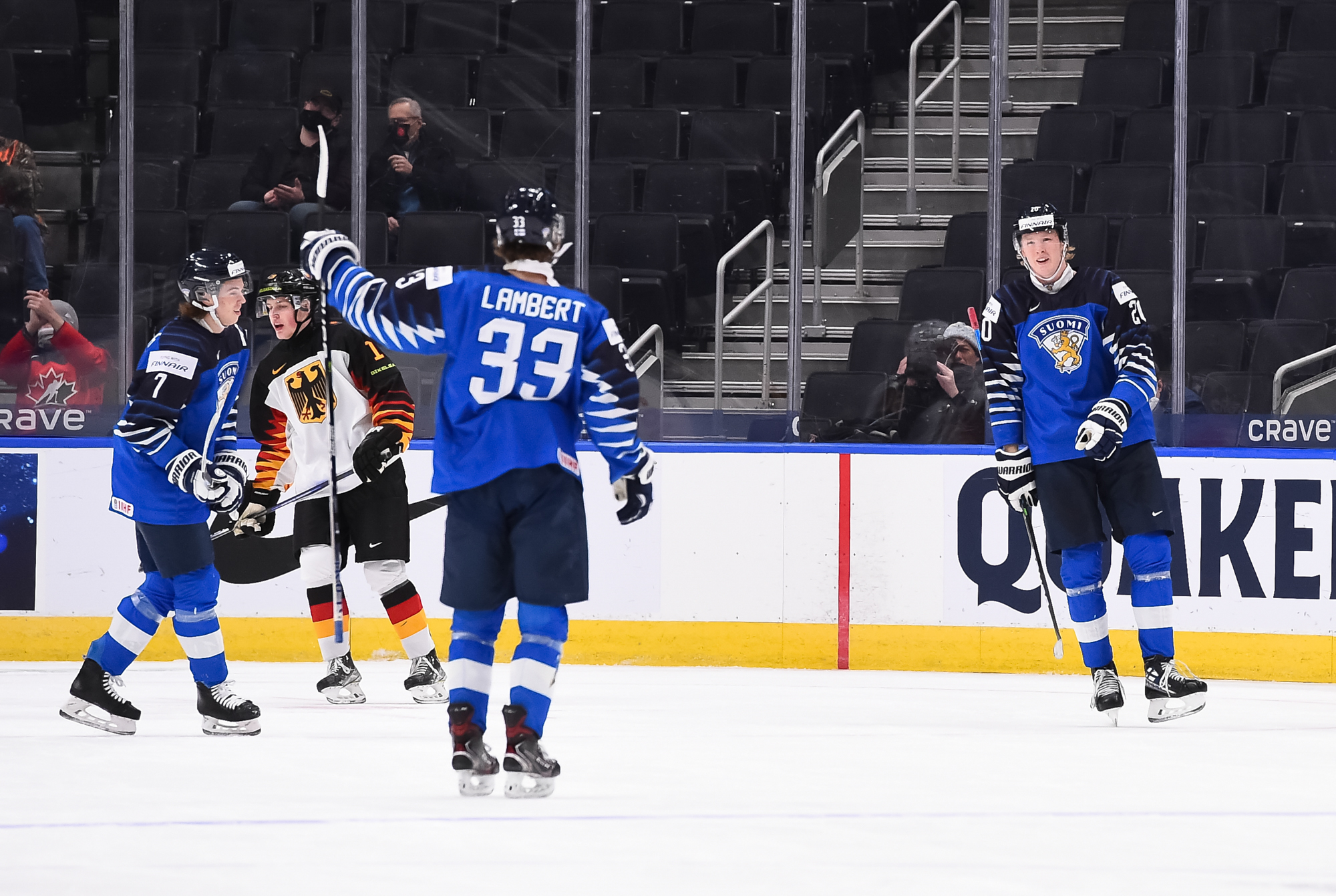 À 7:53 de la troisième période, Helenius a procuré un coussin de deux buts à la Finlande en fonçant au filet sur une montée pour conclure une magnifique passe de Lambert provenant de l’autre côté du territoire. Les Allemands ont retiré Quapp au profit d’un attaquant additionnel en fin de rencontre, mais sans toutefois parvenir à réduire l’écart.