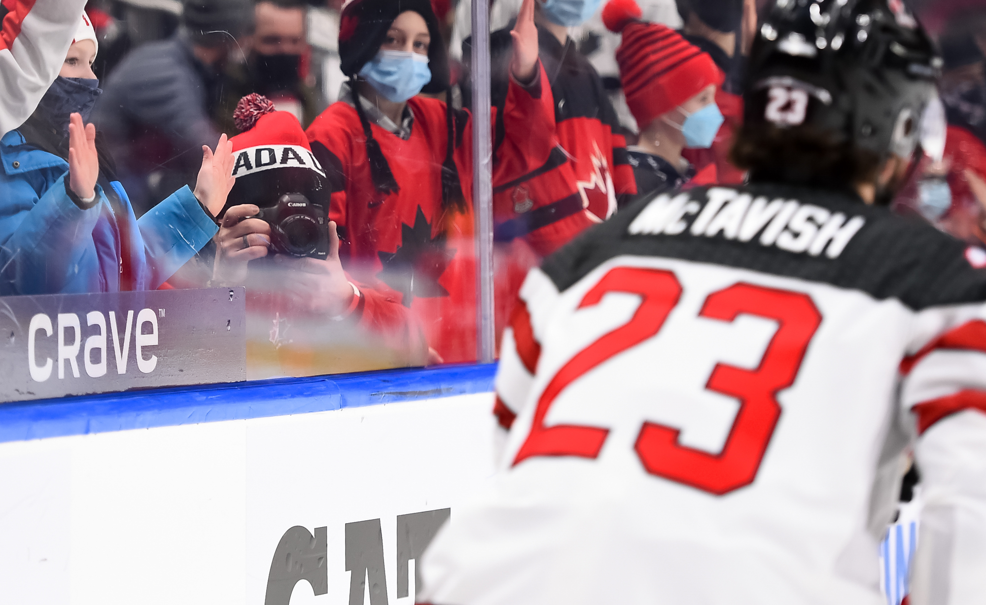 Après quatre minutes de jeu, McTavish a marqué le premier but de la soirée au profit du Canada. L’astucieux attaquant de 18 ans, qui a inscrit deux buts et une aide en neuf matchs avec les Ducks d’Anaheim cette saison, a foncé en périphérie dans la zone tchèque, feinté pour se retrouver derrière Novak dans le cercle des mises en jeu du côté droit et il a battu le gardien Jakub Malek d’un tir sec du côté du bâton. McTavish a aussi été capitaine de l’équipe canadienne qui a remporté l’or au Mondial des moins de 18 ans en avril au Texas.